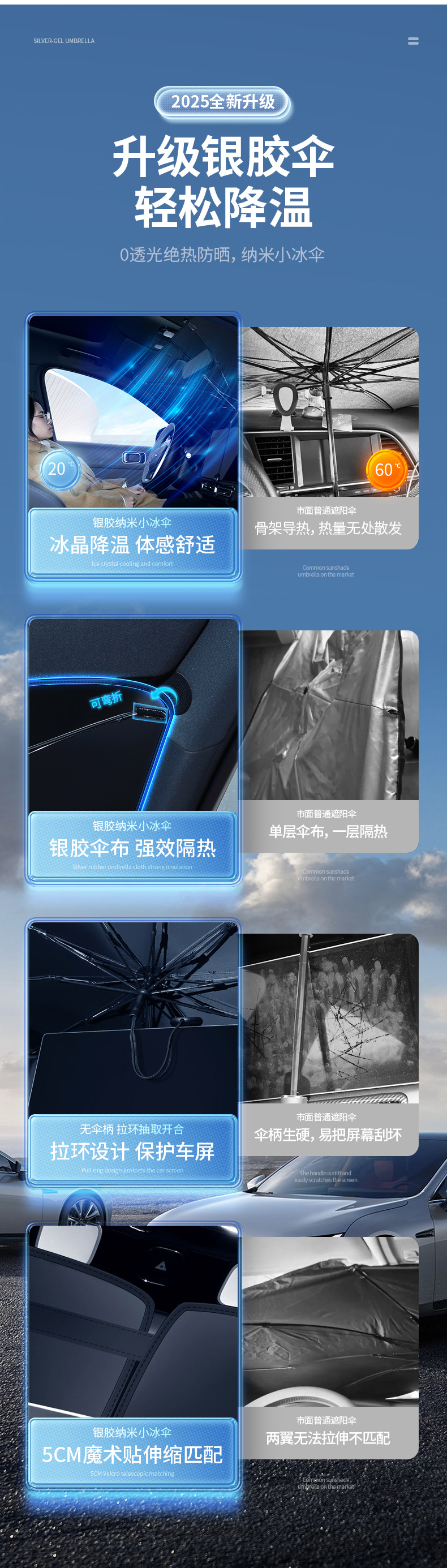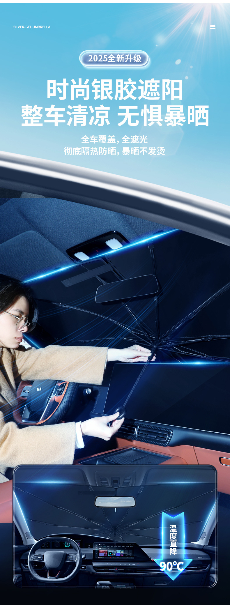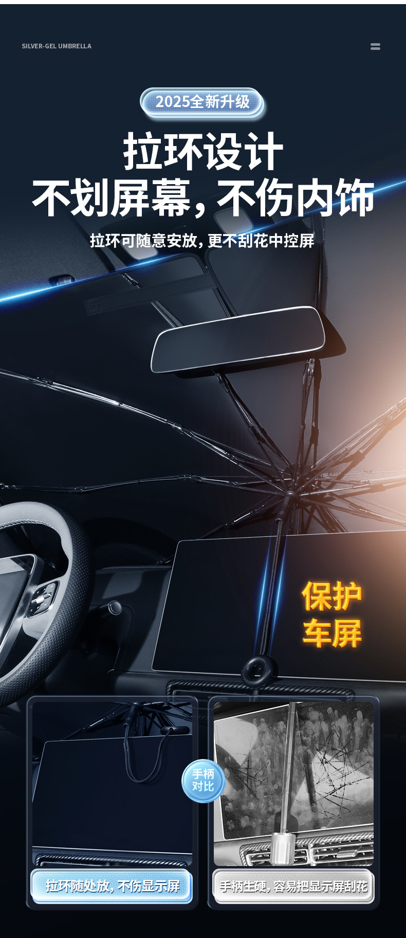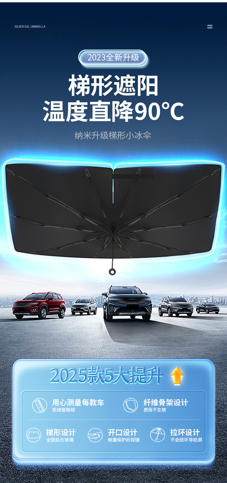拉环绳汽车遮阳伞弯杆新款升级前挡玻璃窗帘防晒隔热专用夏季用品