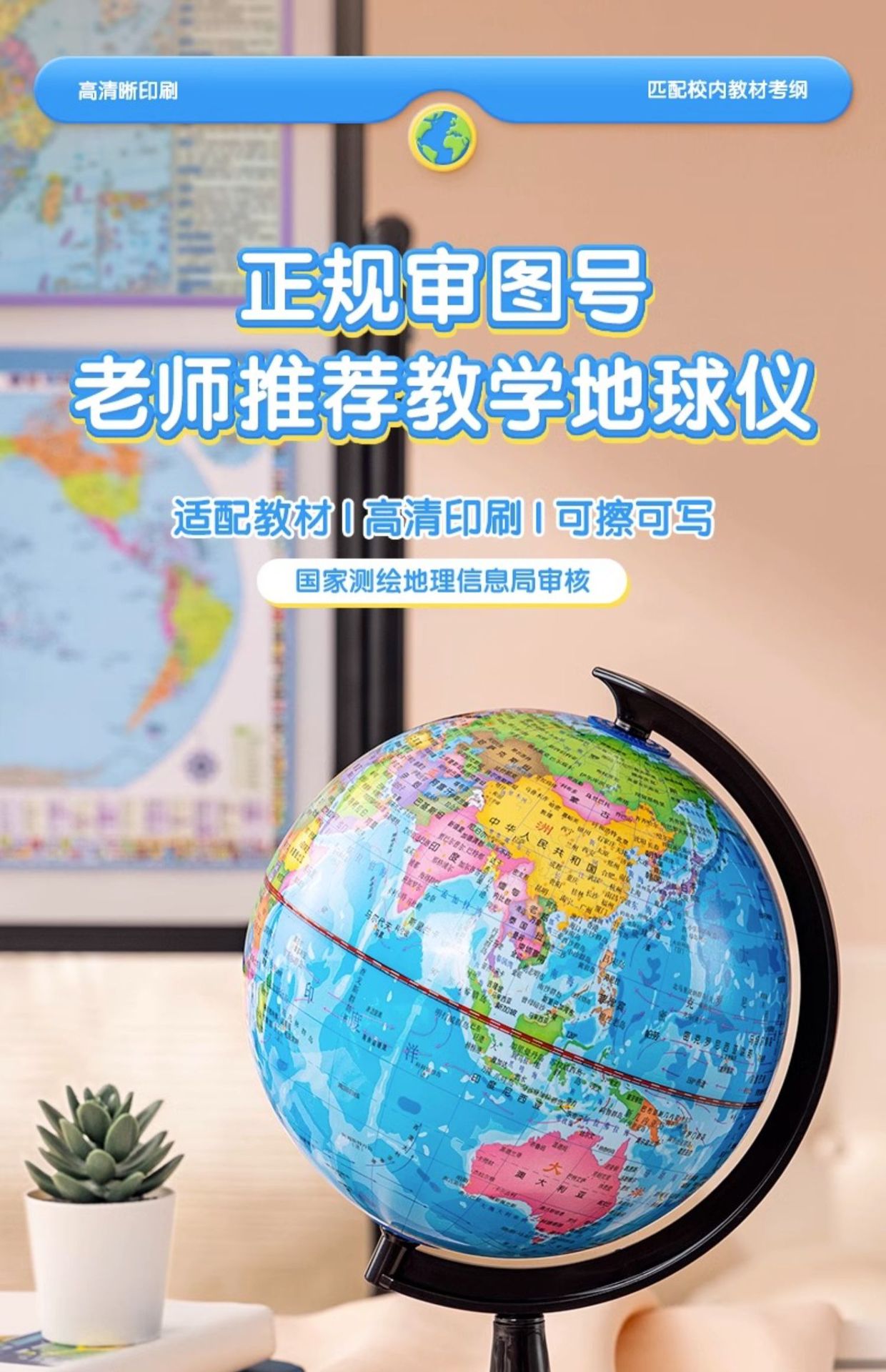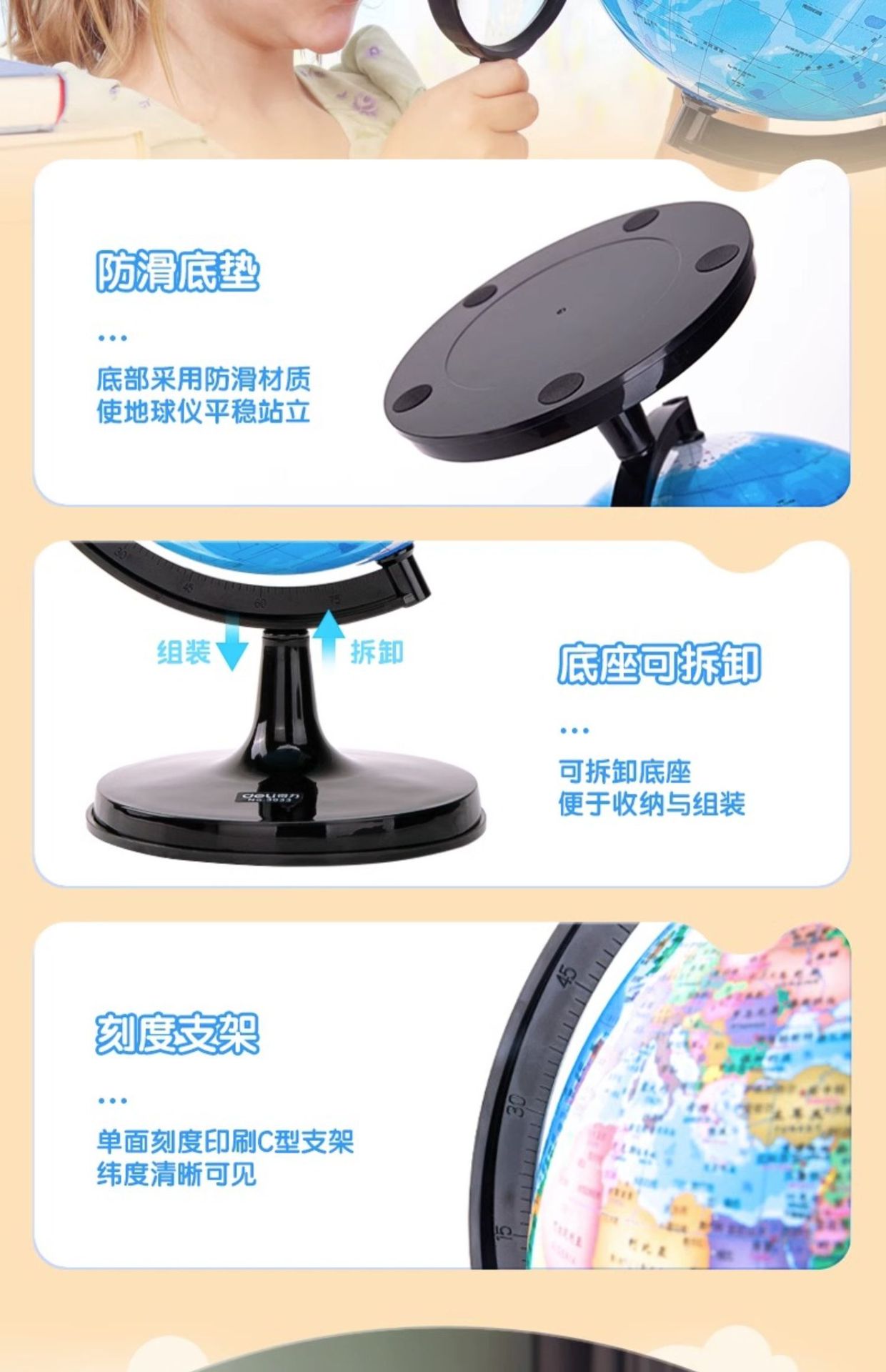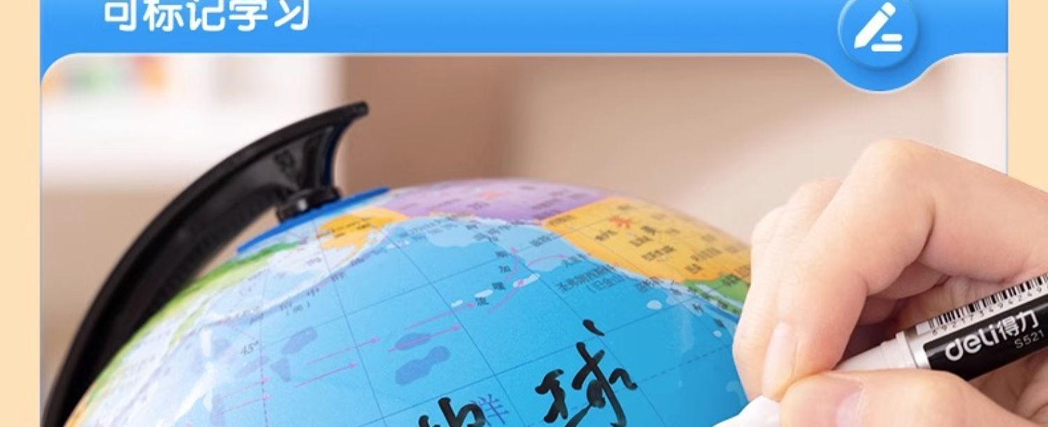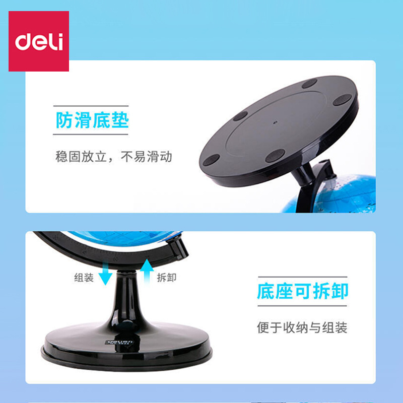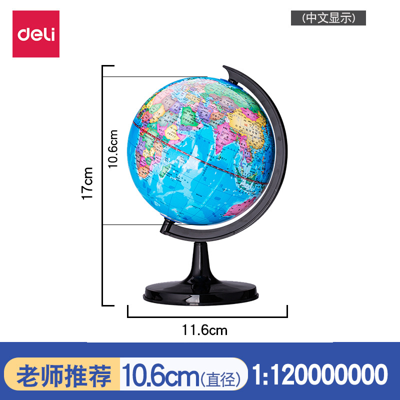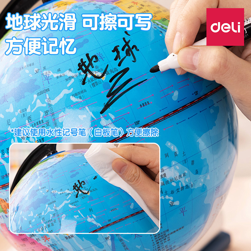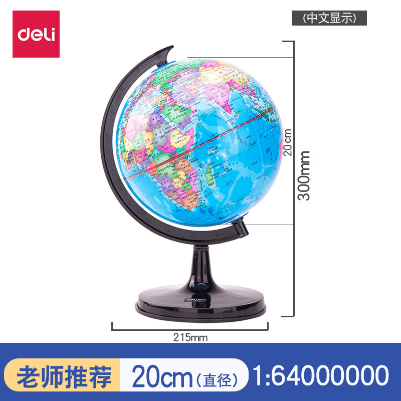 得力地球仪3033高清教学版20cm中号书房办公桌摆件中学生用地球仪