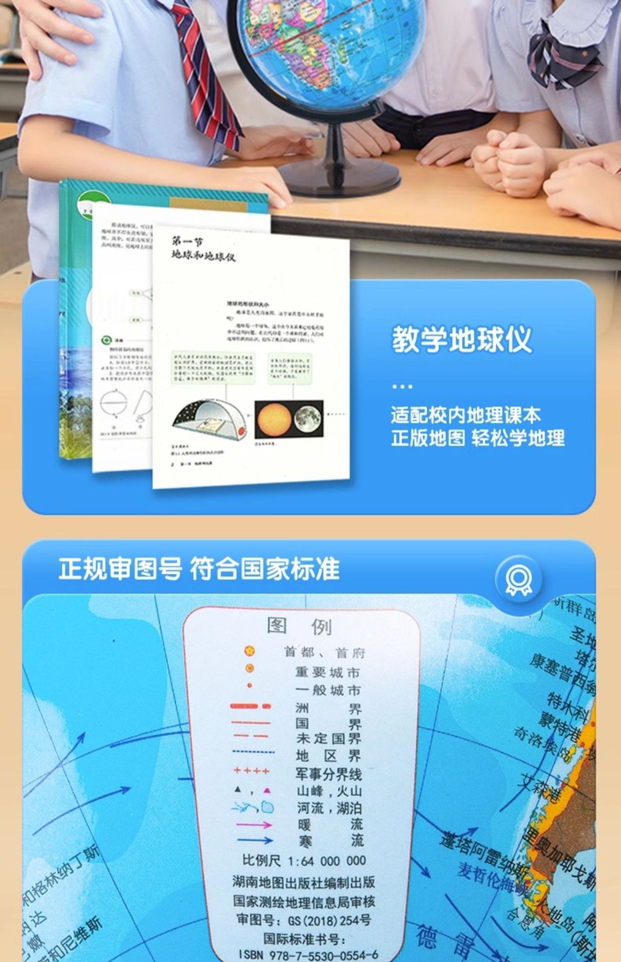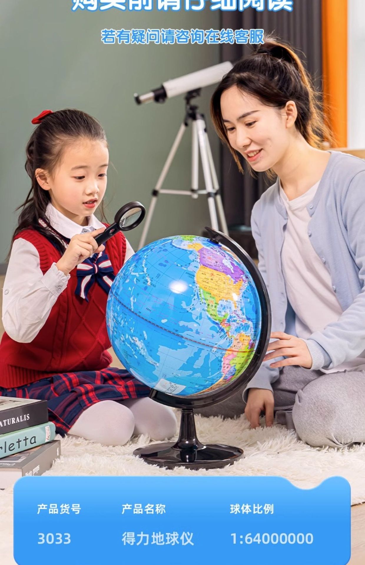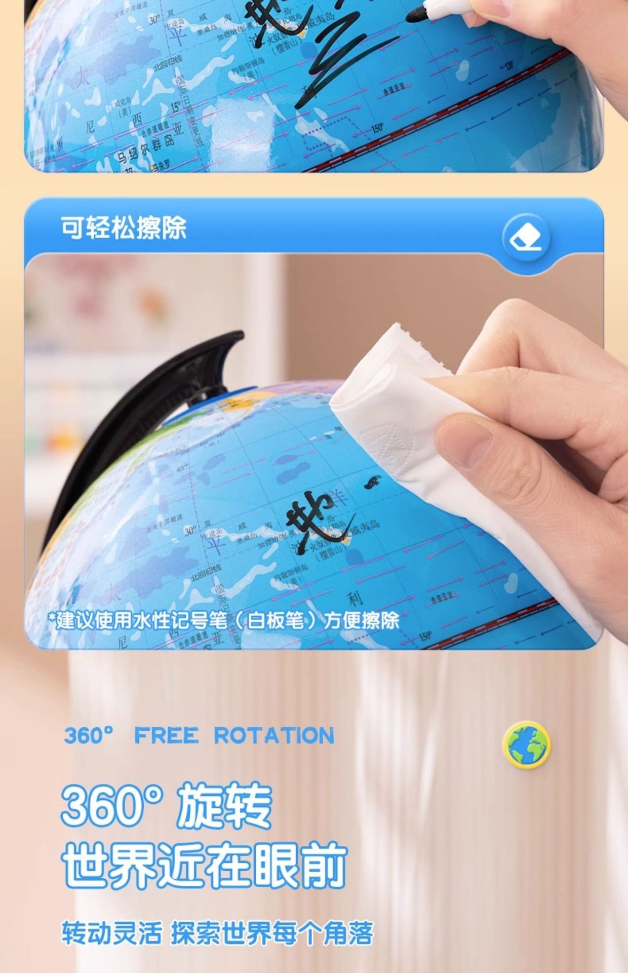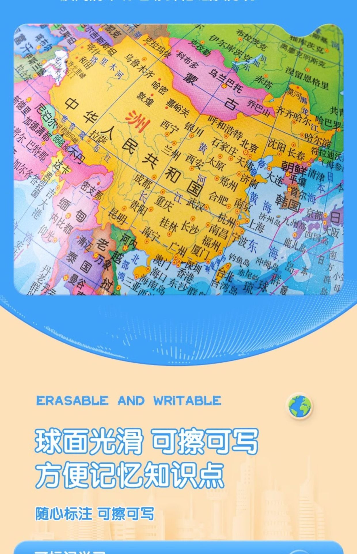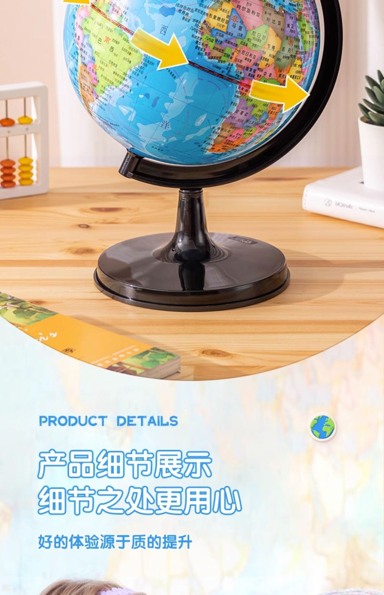 得力地球仪3033高清教学版20cm中号书房办公桌摆件中学生用地球仪