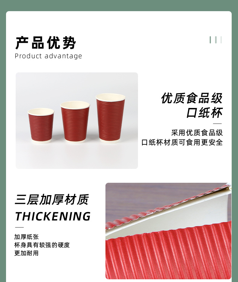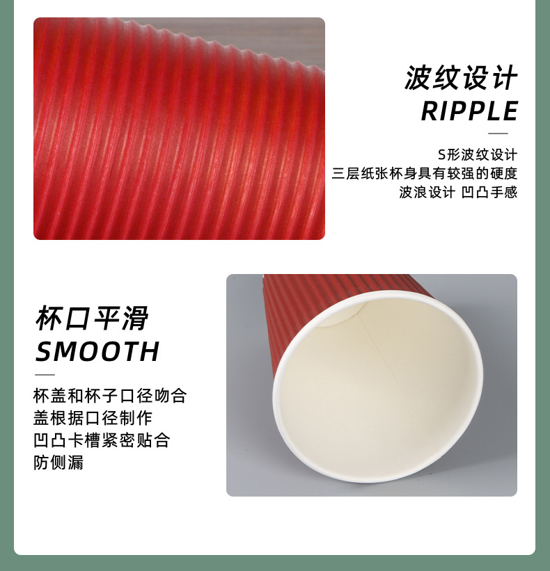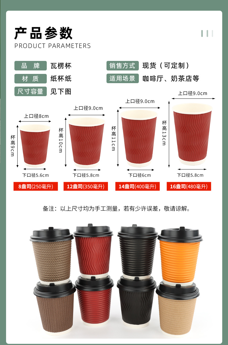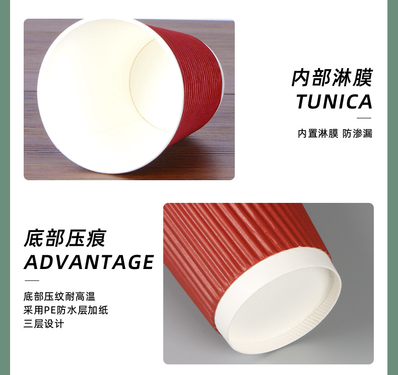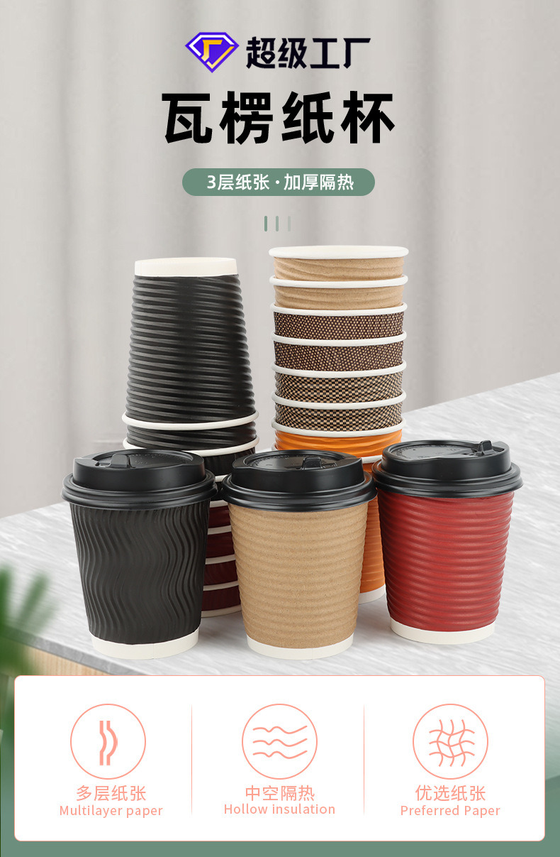 加厚一次性纸杯双层瓦楞杯咖啡奶茶热饮纸杯带盖外卖打包瓦楞纸杯