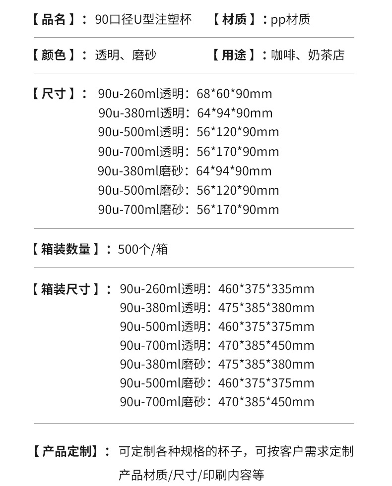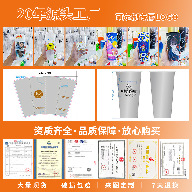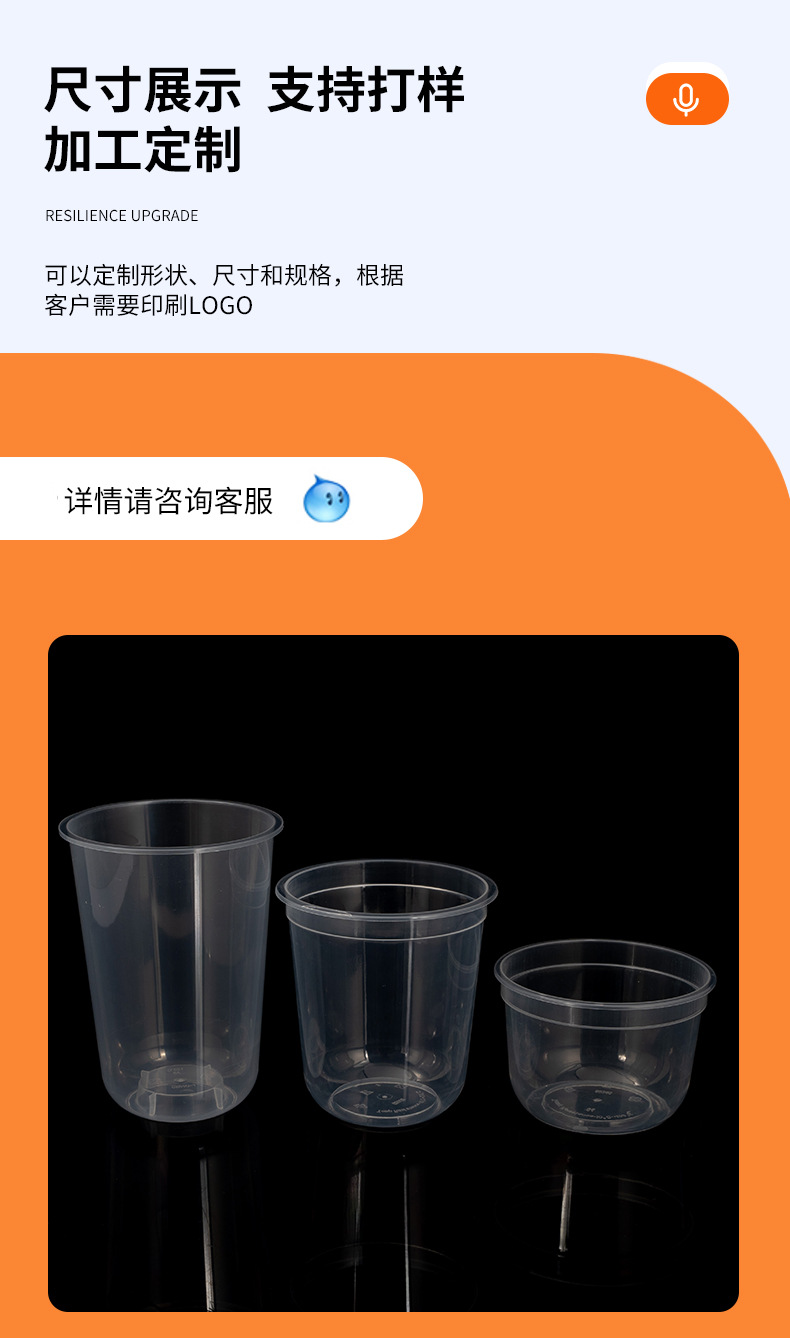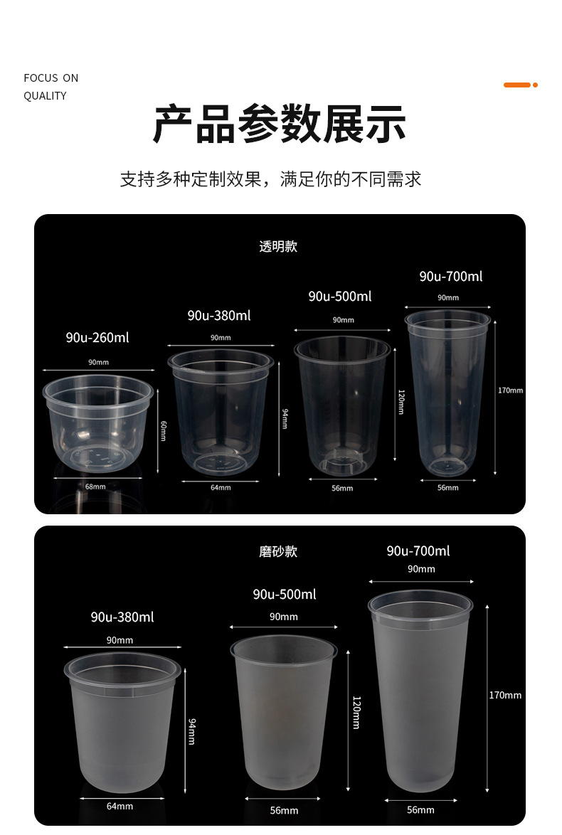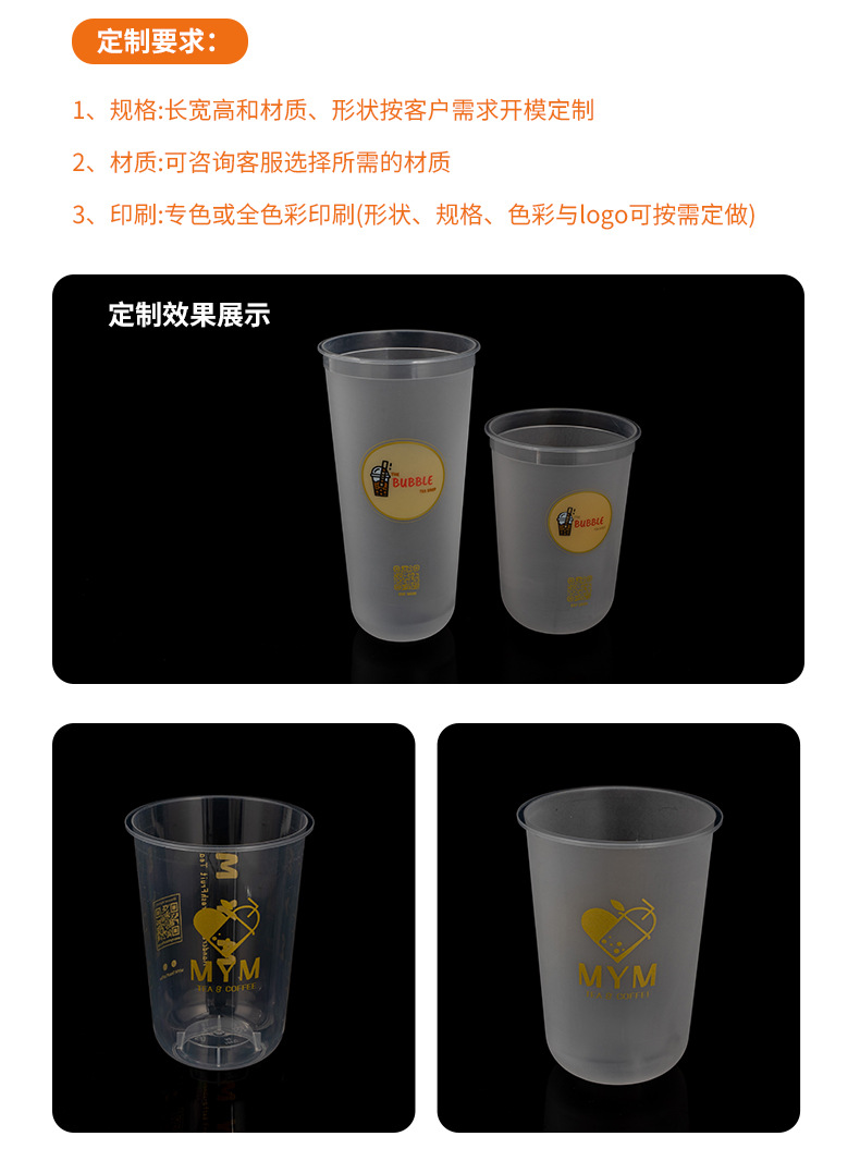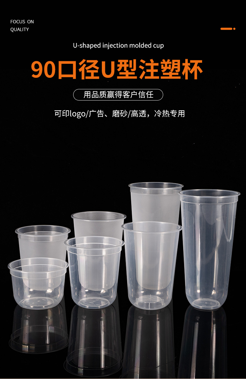 90口径一次性奶茶杯子咖啡U型网红透明冷饮热饮塑料杯胖胖杯打包