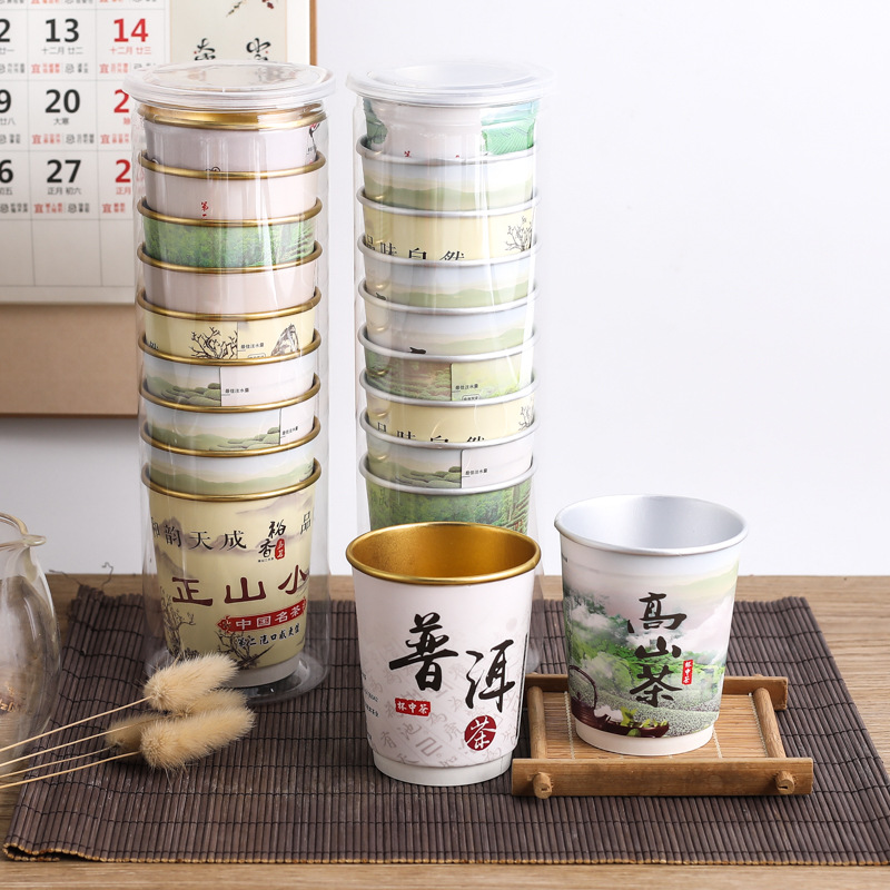 隐茶杯一次性双层自带茶叶纸杯定做杯中茶商务接待高端定制印LOGO