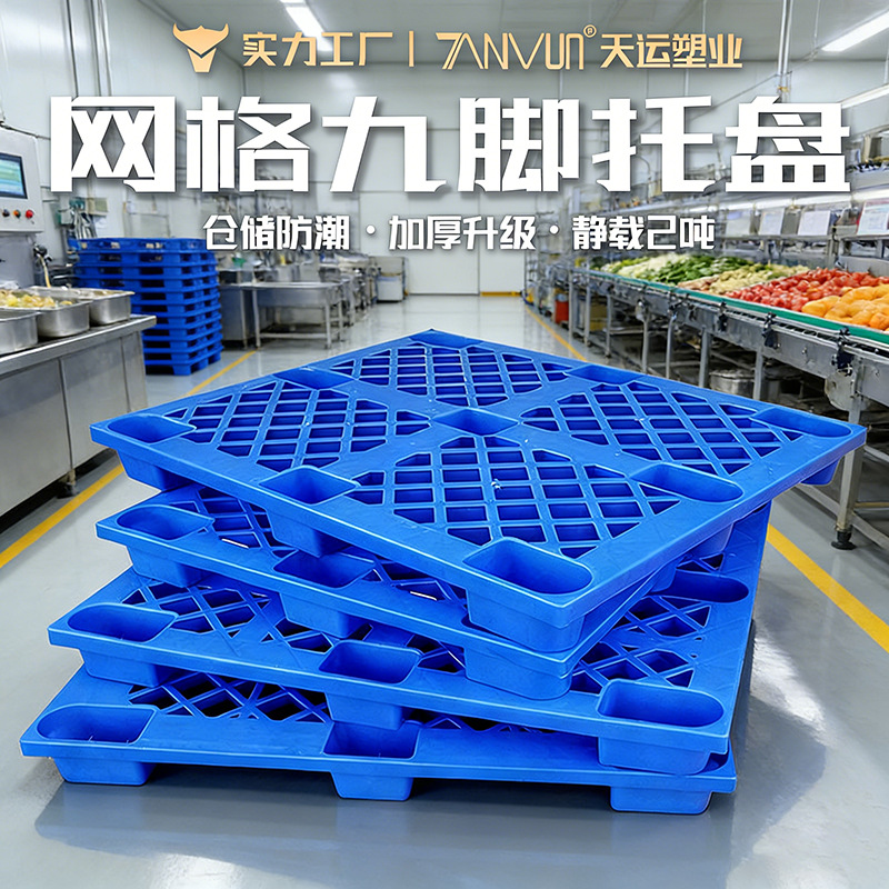 塑料卡板网格九脚卡板仓库防潮单面卡板物流货运加厚叉车塑料托盘