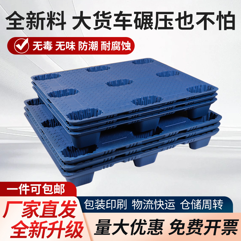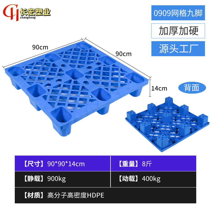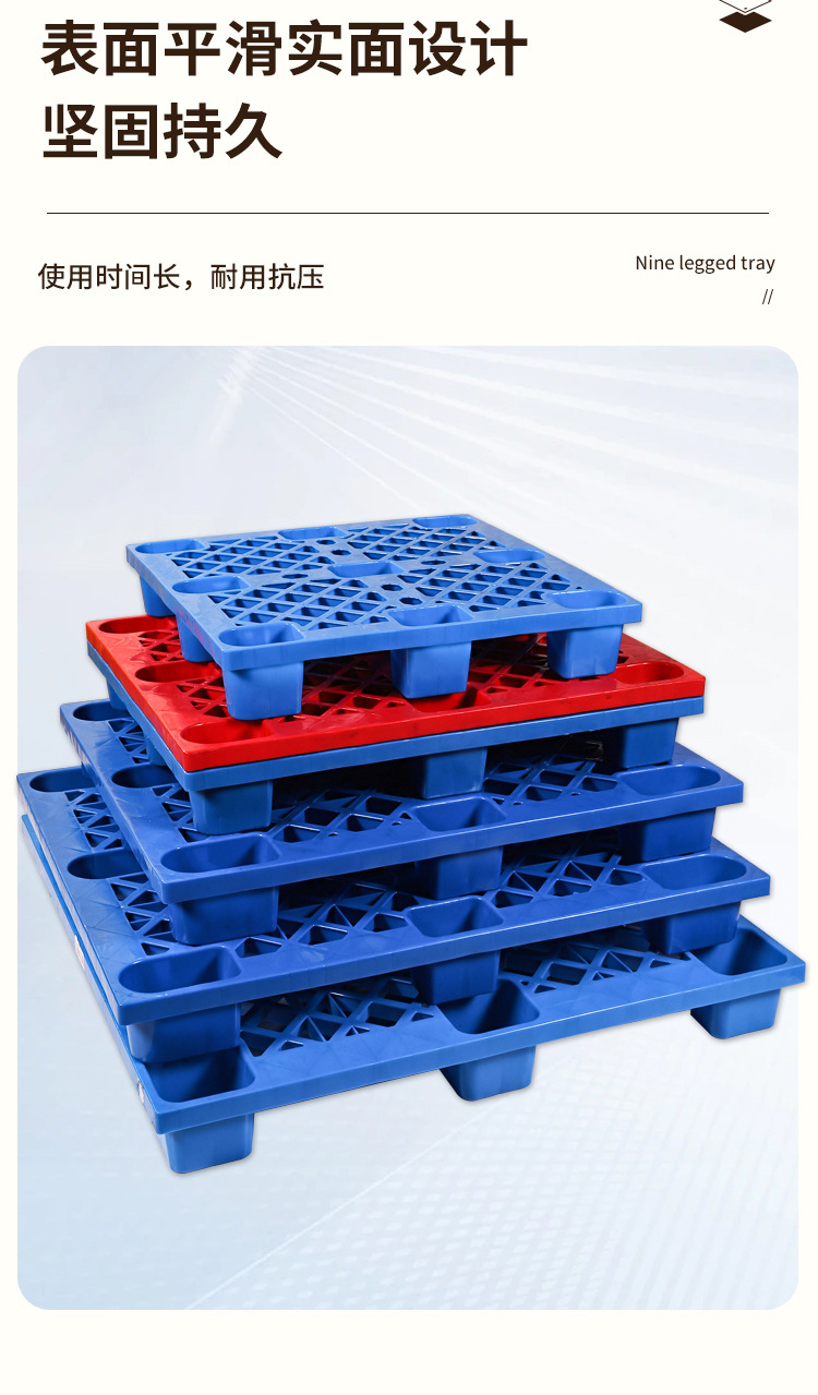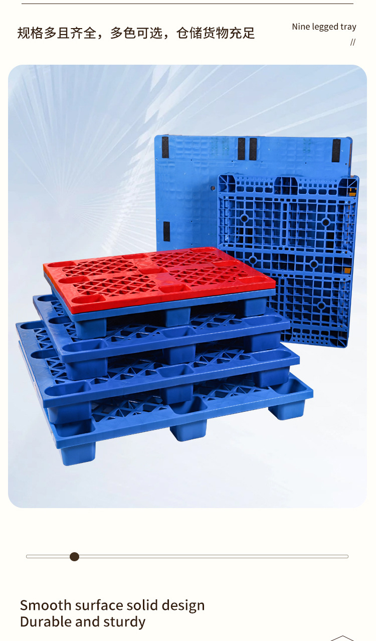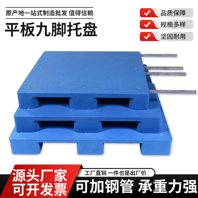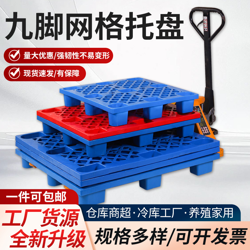 加厚网格九脚塑料托盘四面进叉平板托盘耐磨加厚吹塑九脚托盘批发