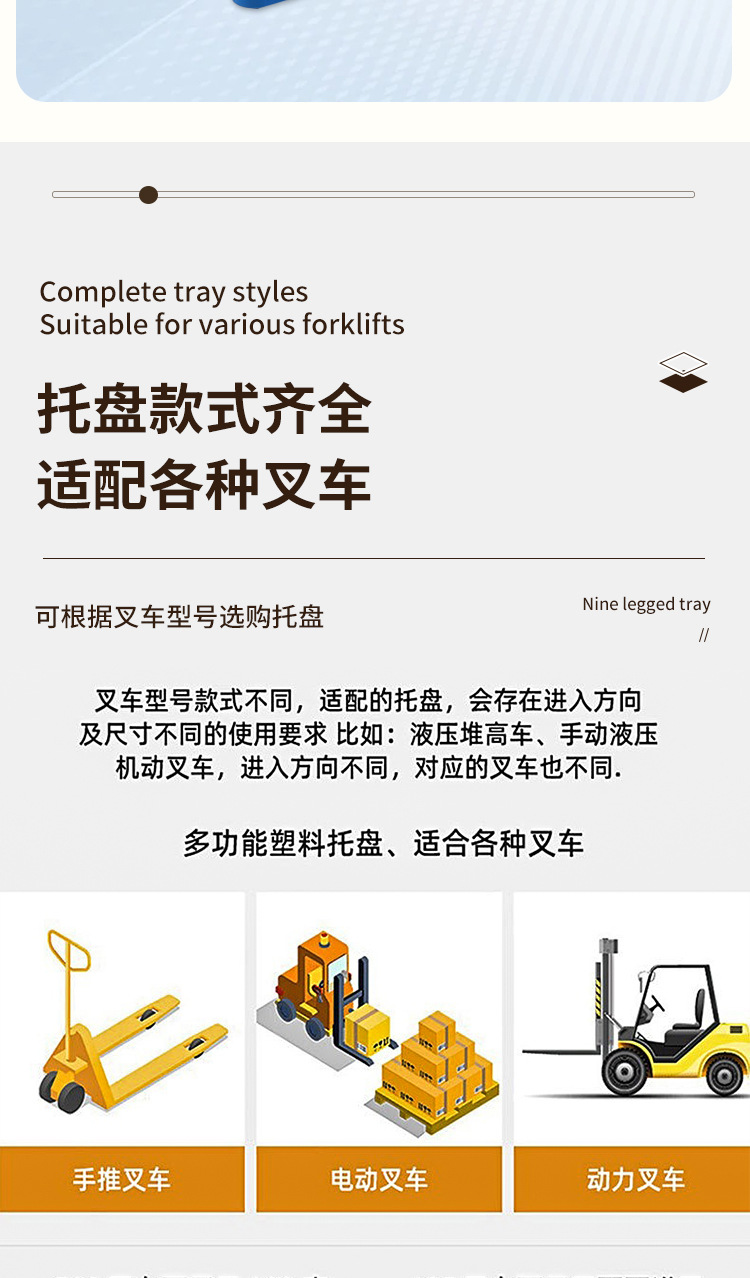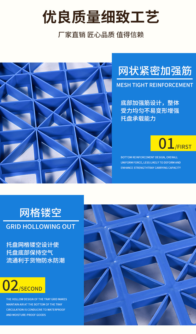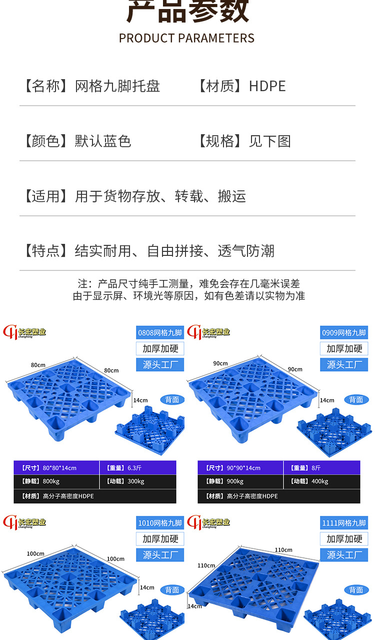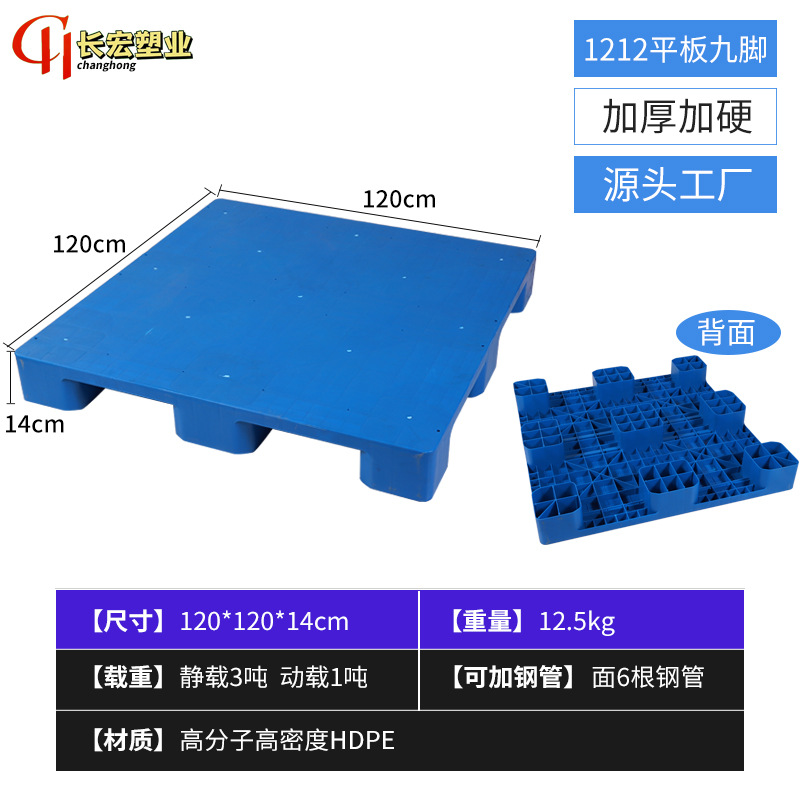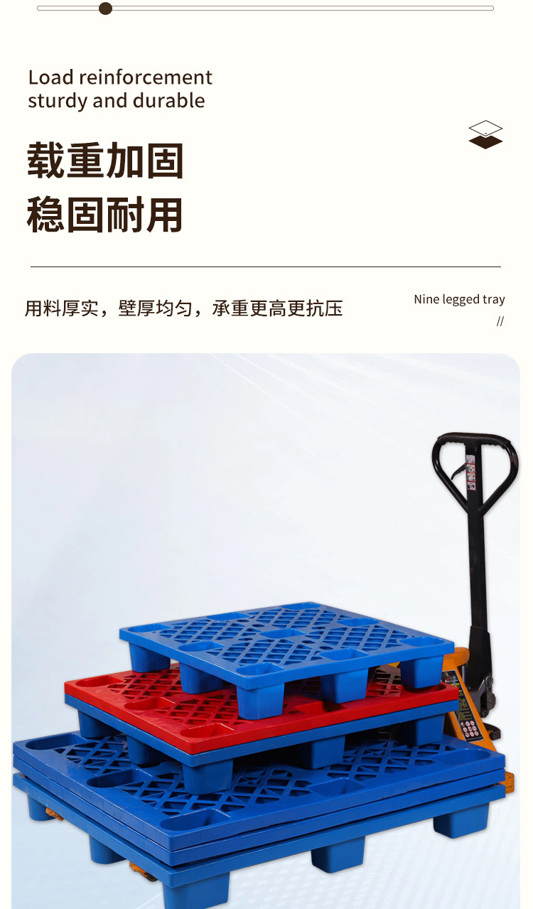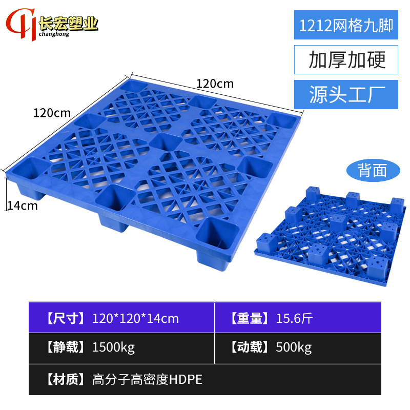 加厚网格九脚塑料托盘四面进叉平板托盘耐磨加厚吹塑九脚托盘批发