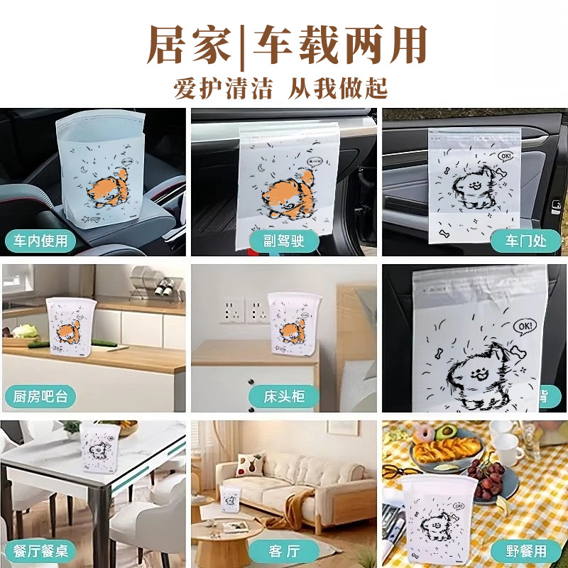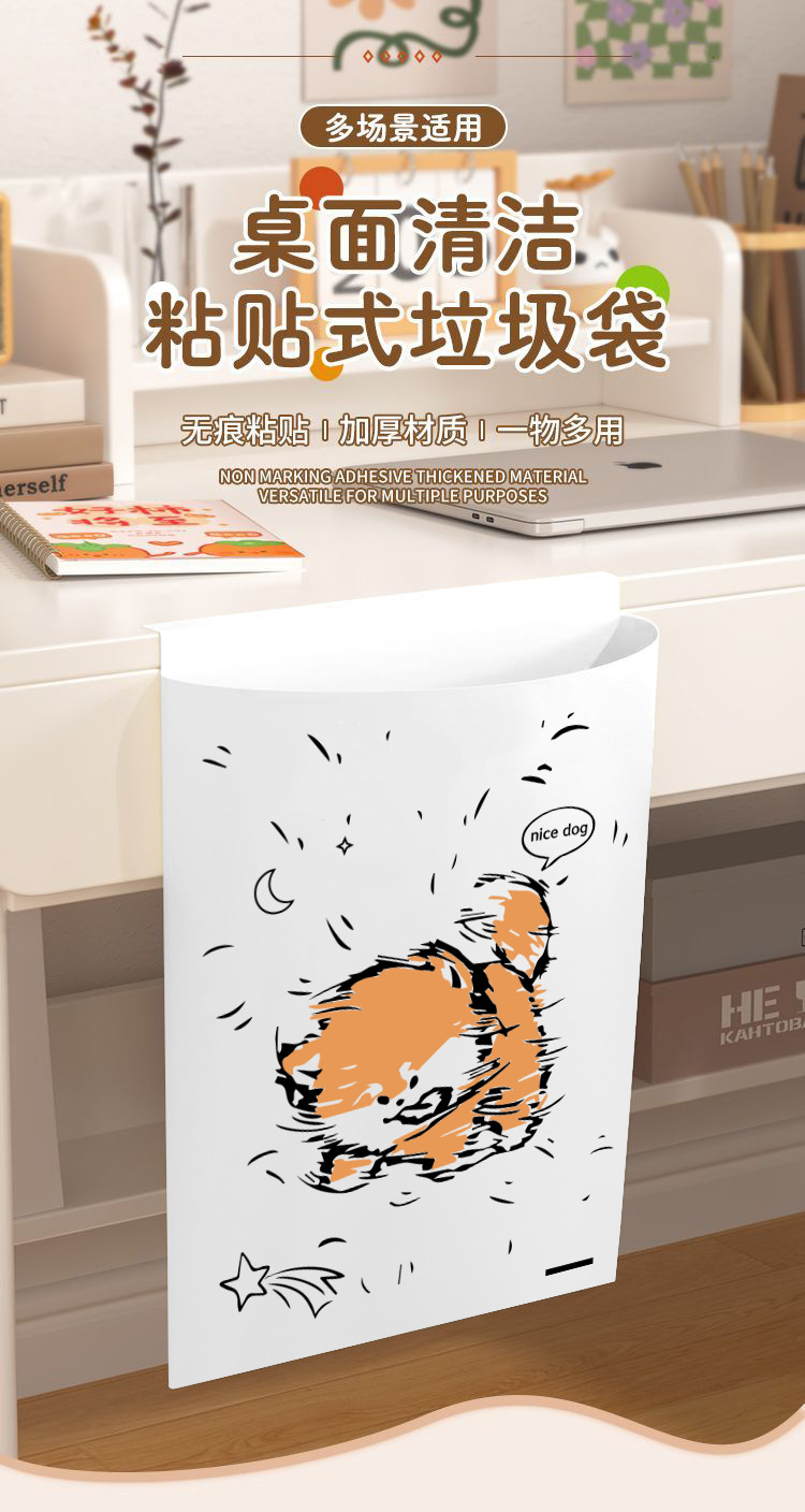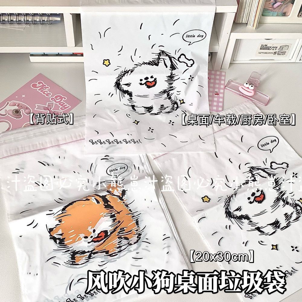 小红书同款潦草小狗车载垃圾袋可爱卡通可粘贴学校课桌垃圾袋