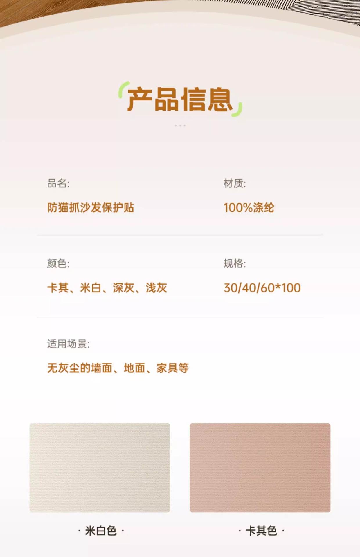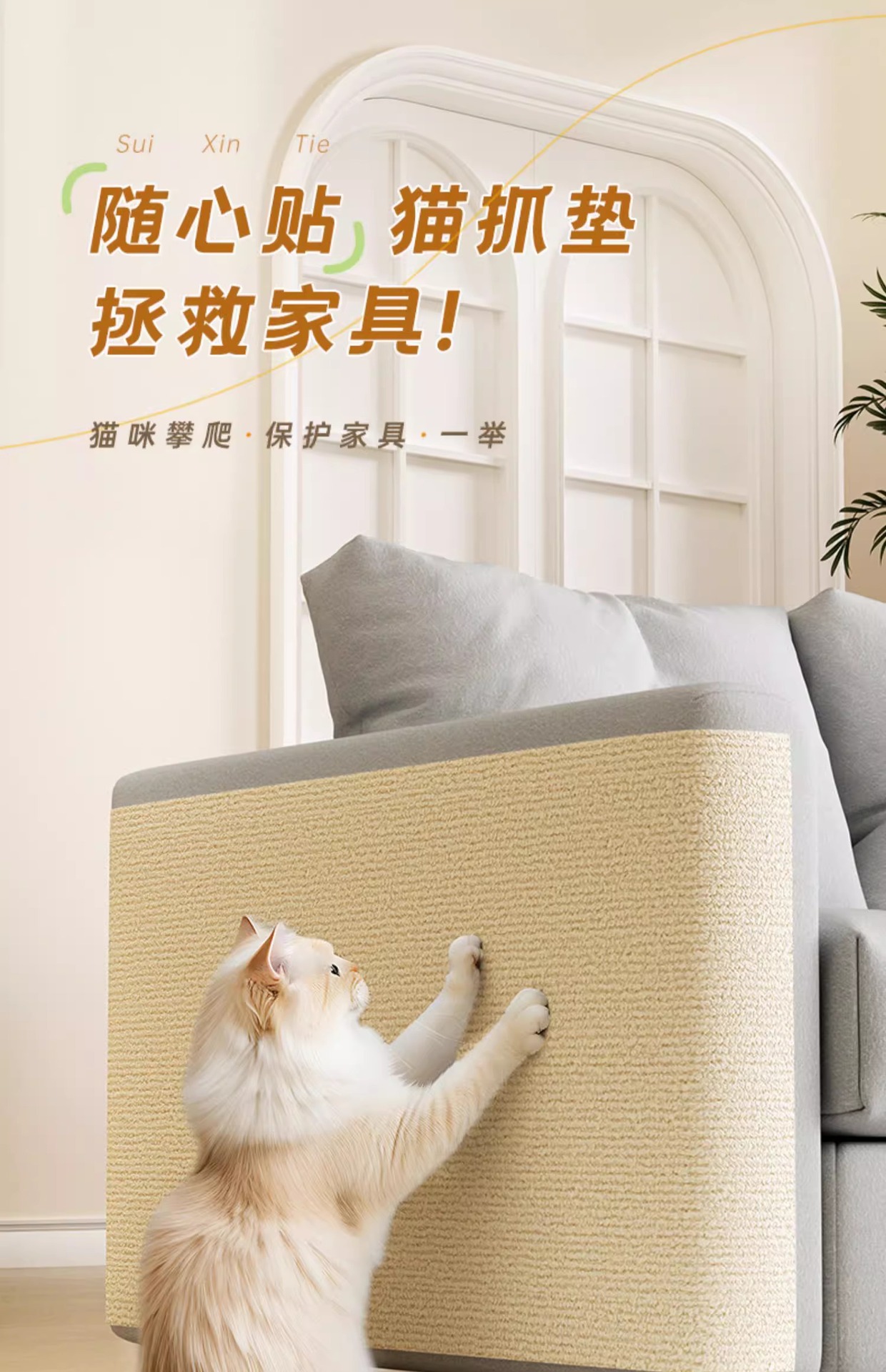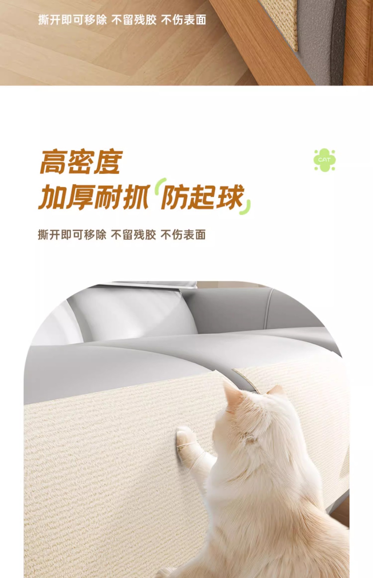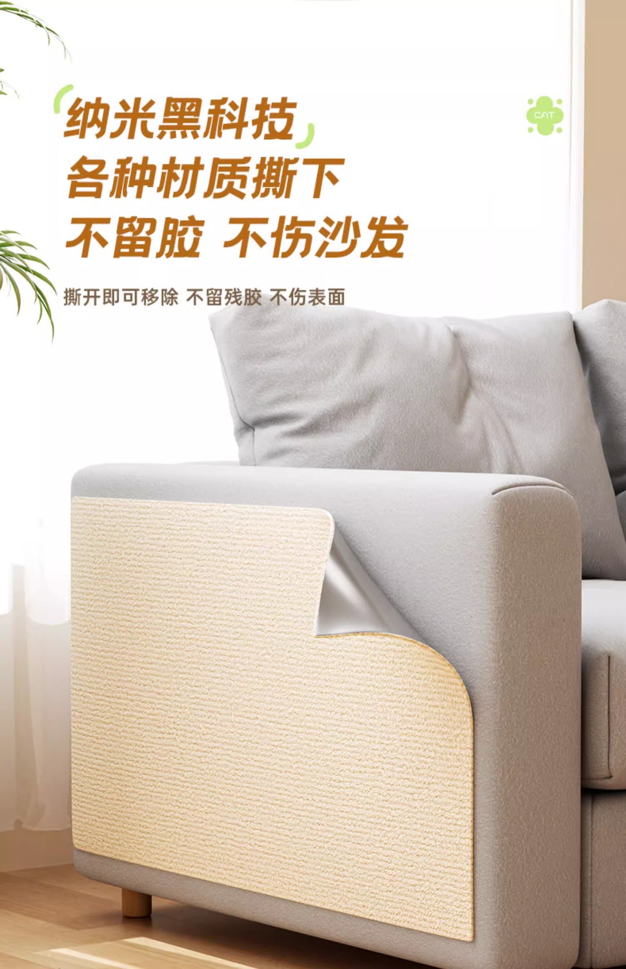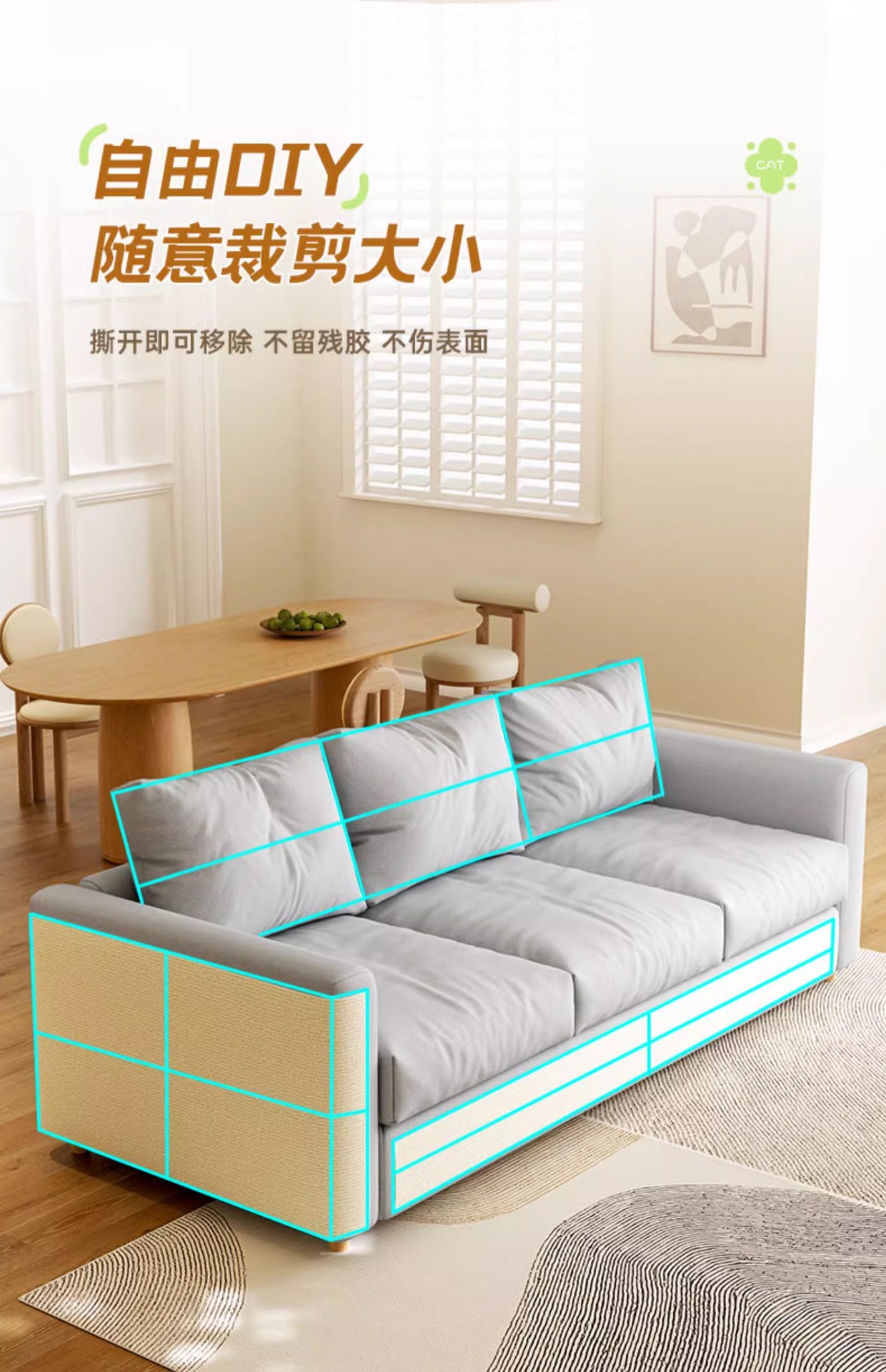 可裁剪防猫抓沙发贴 布艺家具保护垫 自粘式猫抓板墙贴