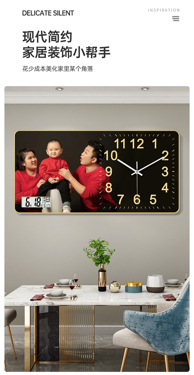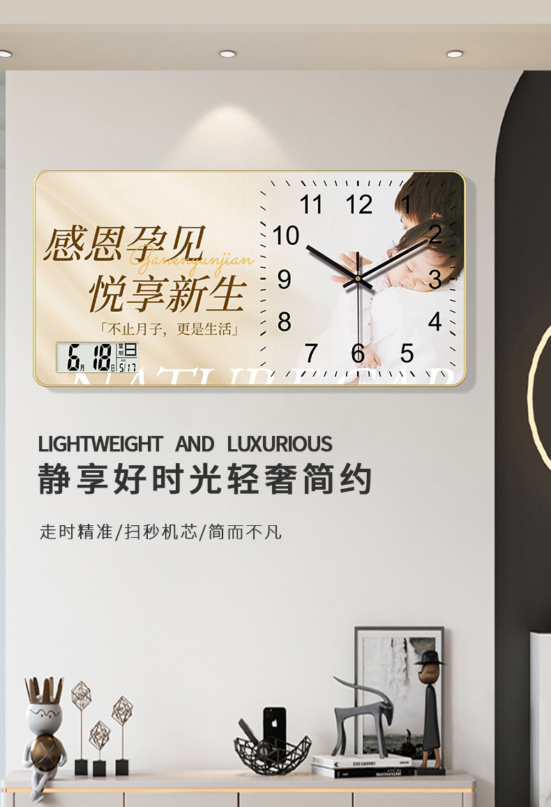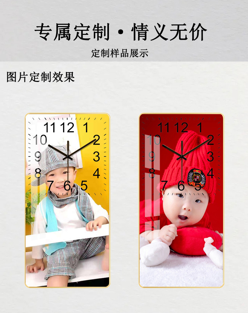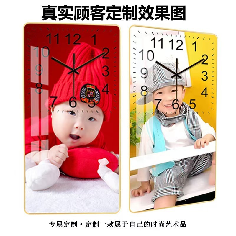 网红客厅晶瓷画挂钟婴儿婚纱艺术照装饰画静音公司宣传挂画时钟表