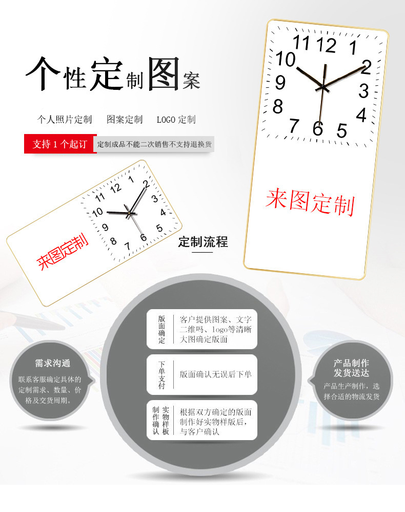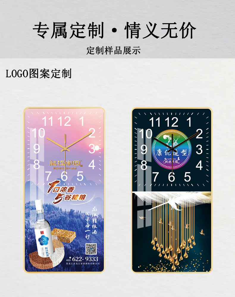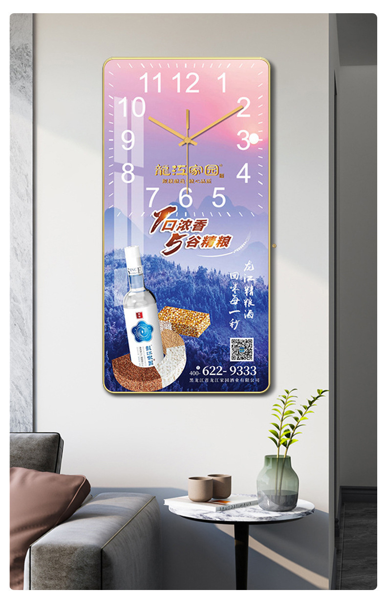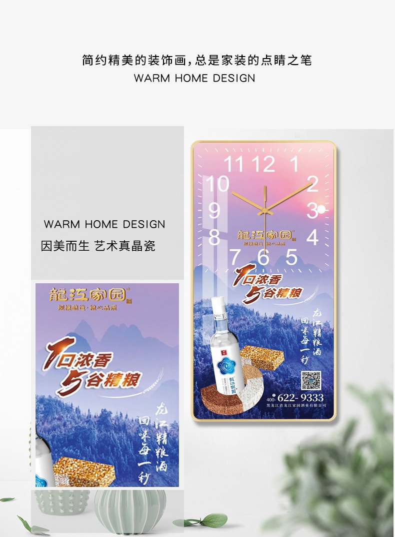 网红客厅晶瓷画挂钟婴儿婚纱艺术照装饰画静音公司宣传挂画时钟表