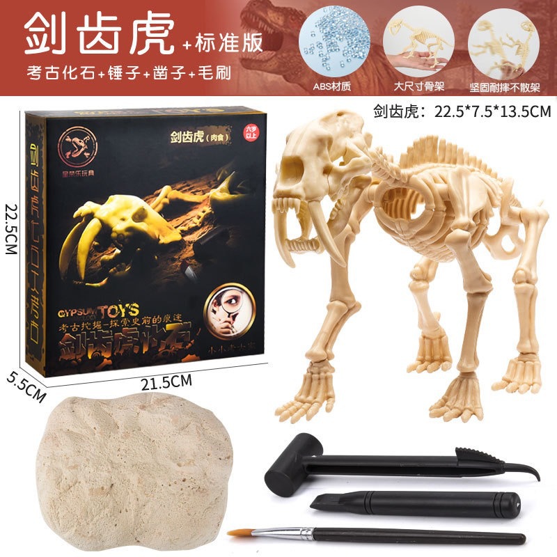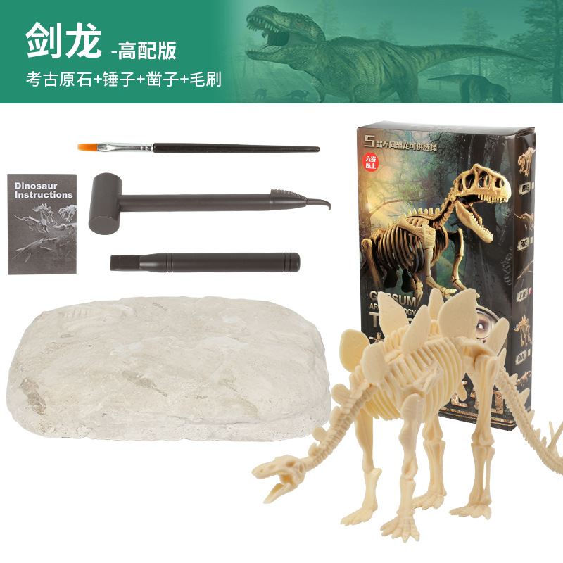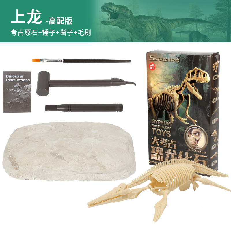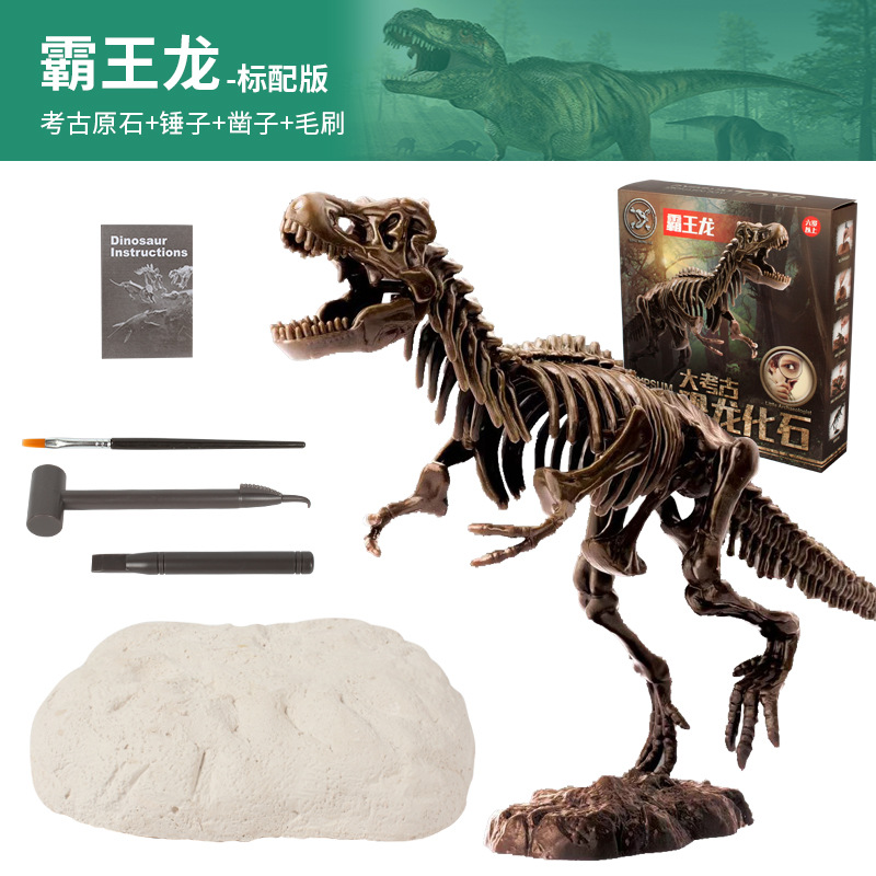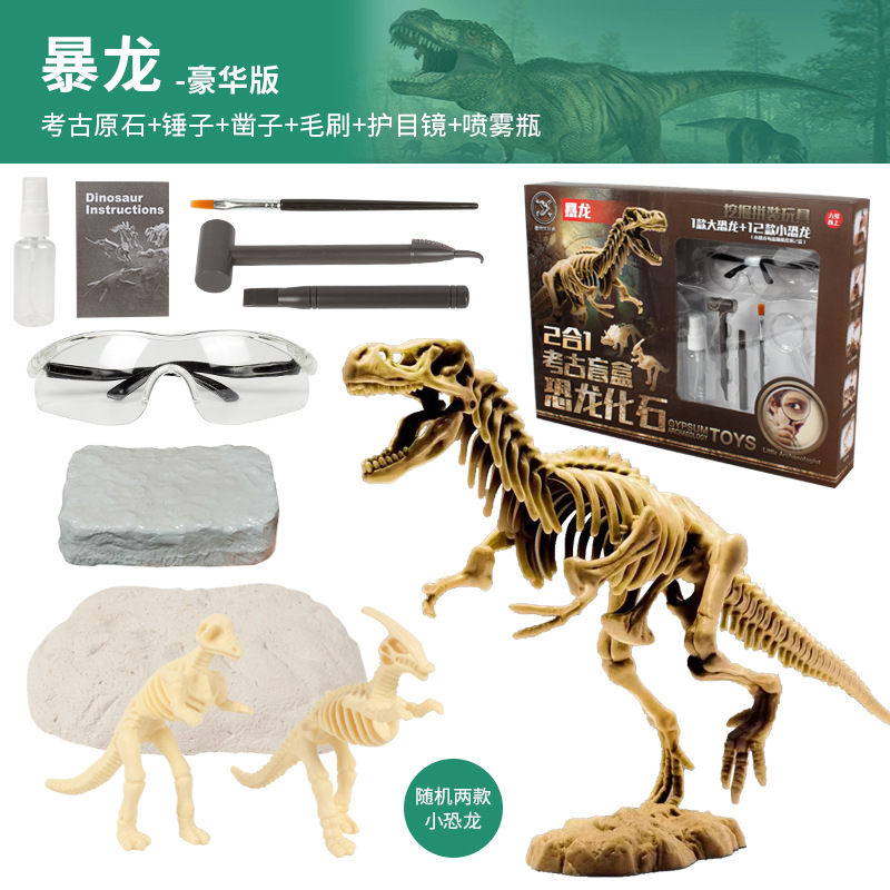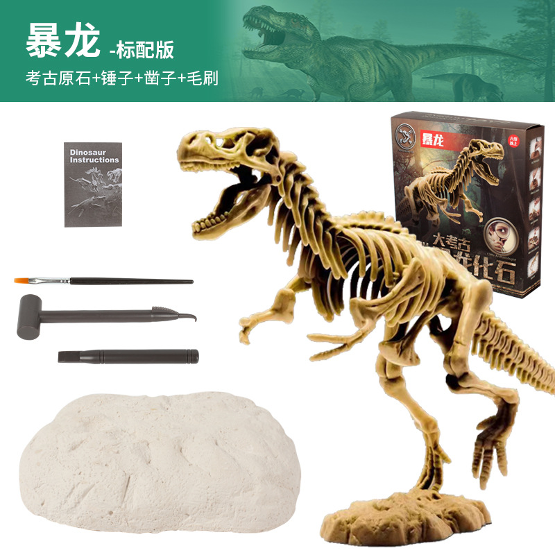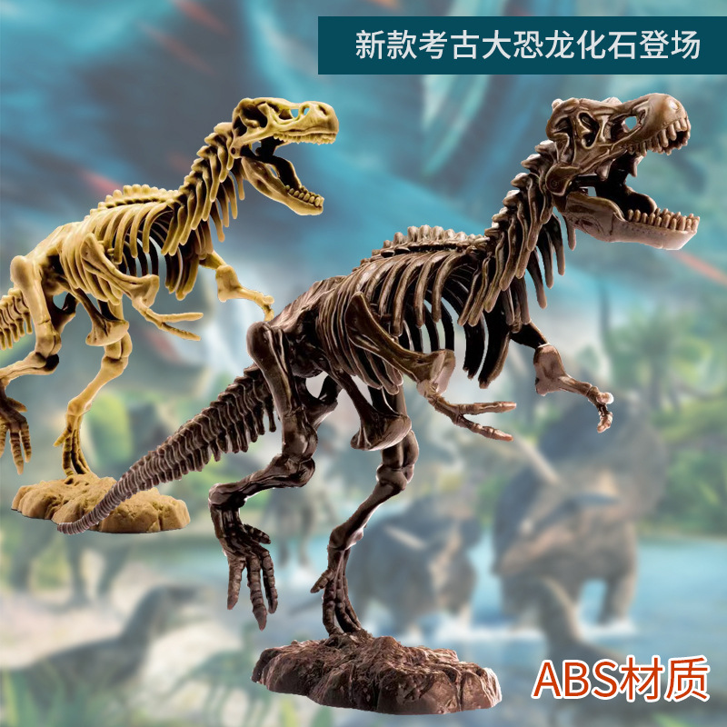 考古玩具批发恐龙化石挖掘霸王龙腕龙模型考古盲盒套装大骨骼ABS