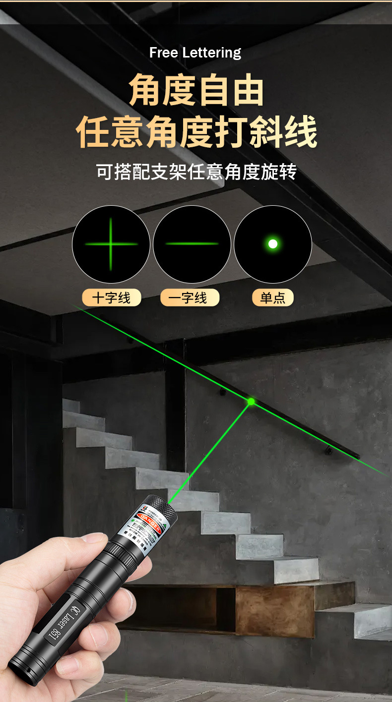 激光笔一字十字线激光灯绿外线远射强光镭射工程定位水平仪手电筒