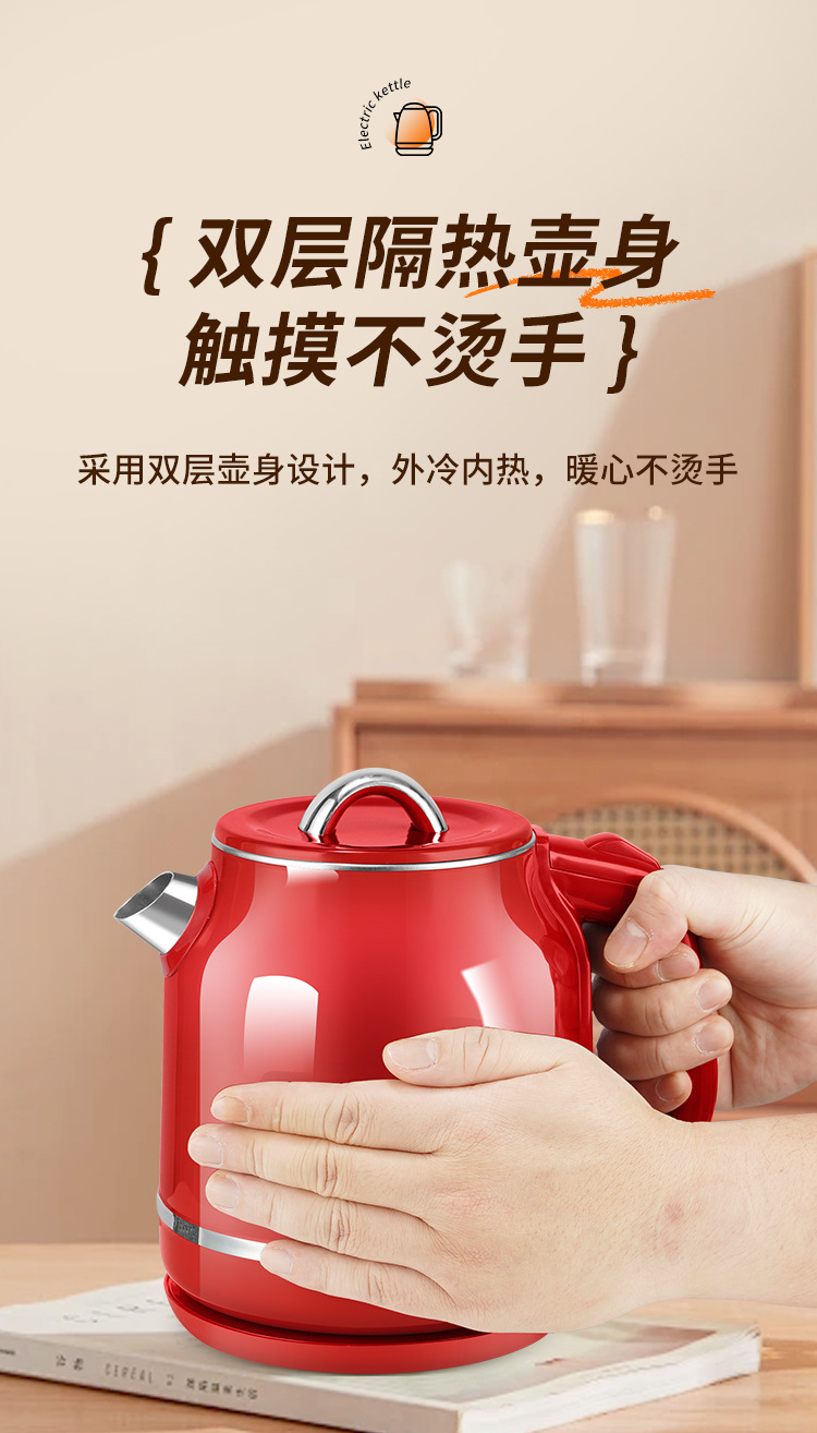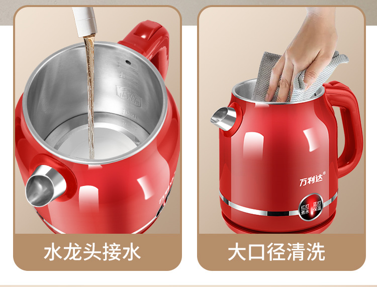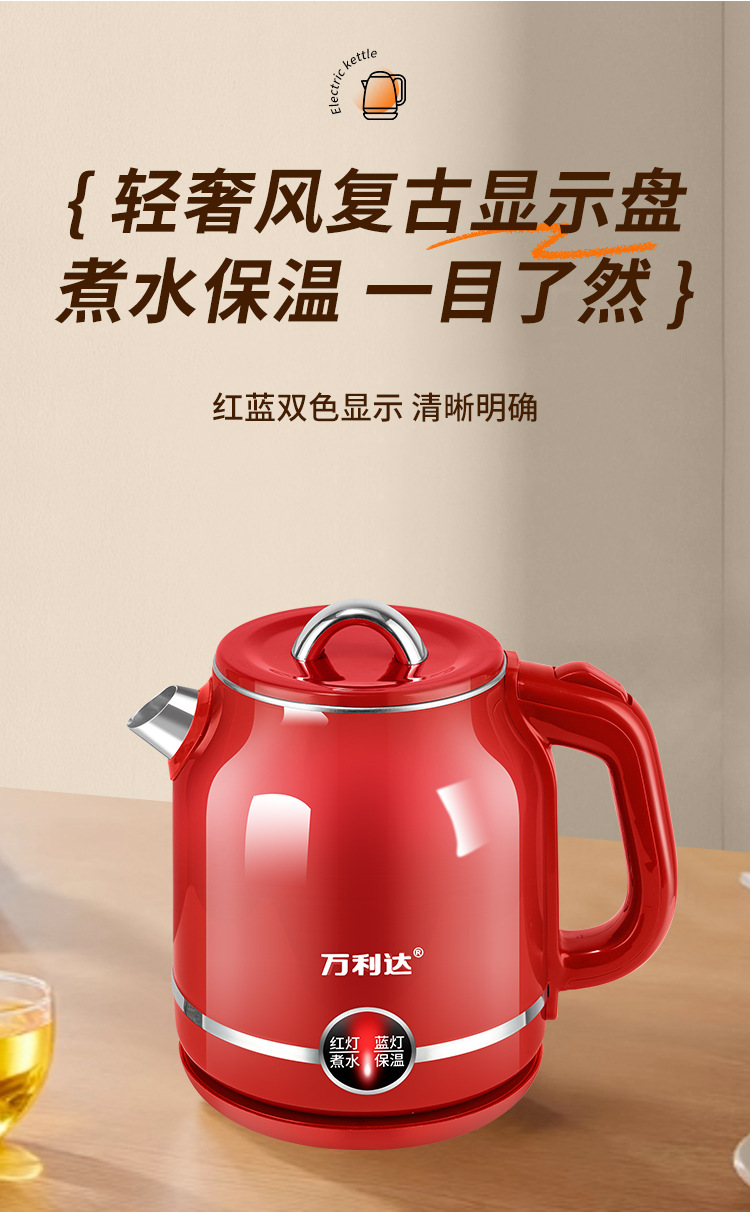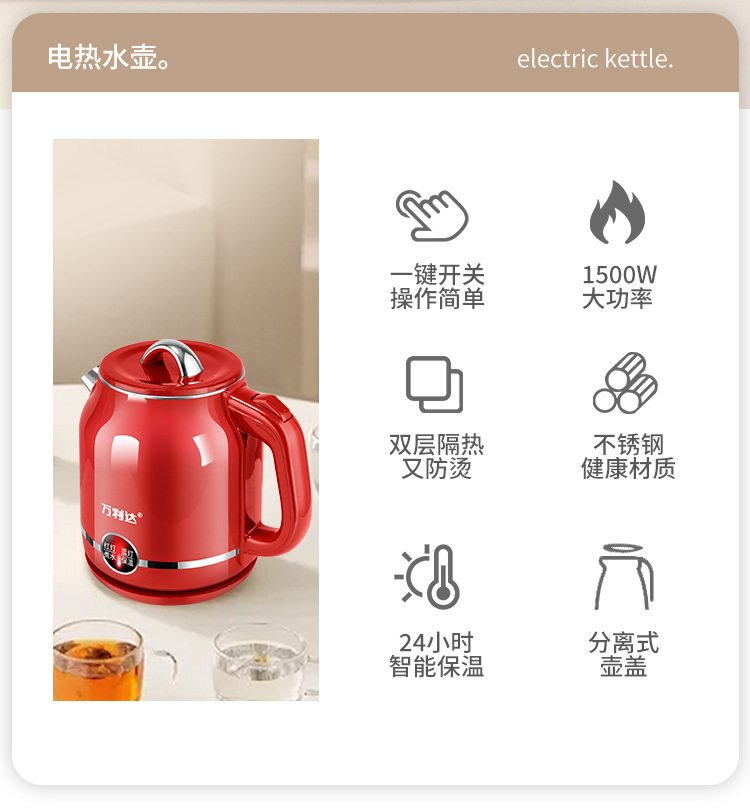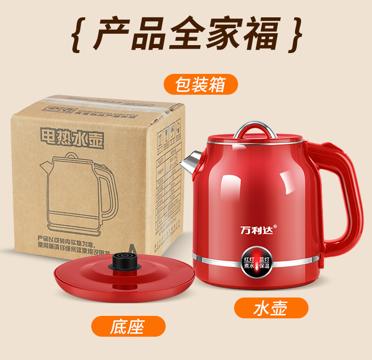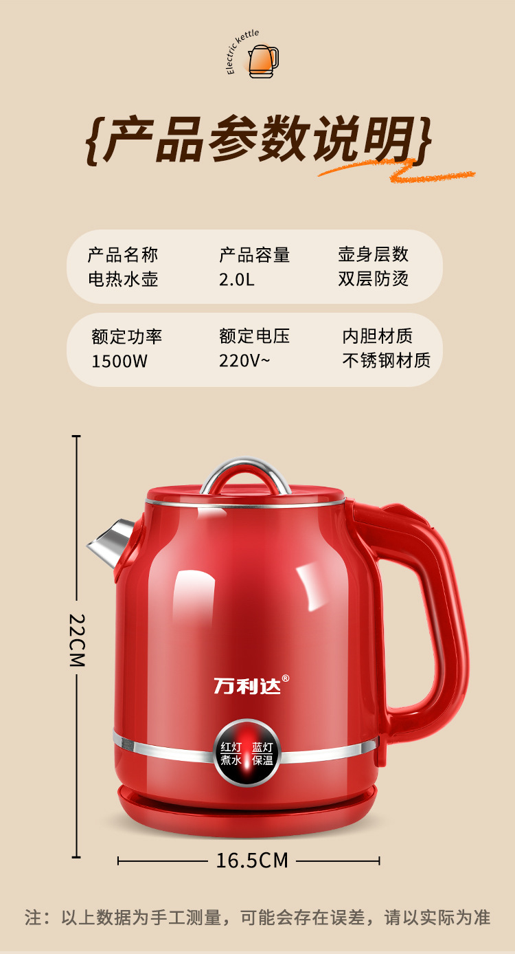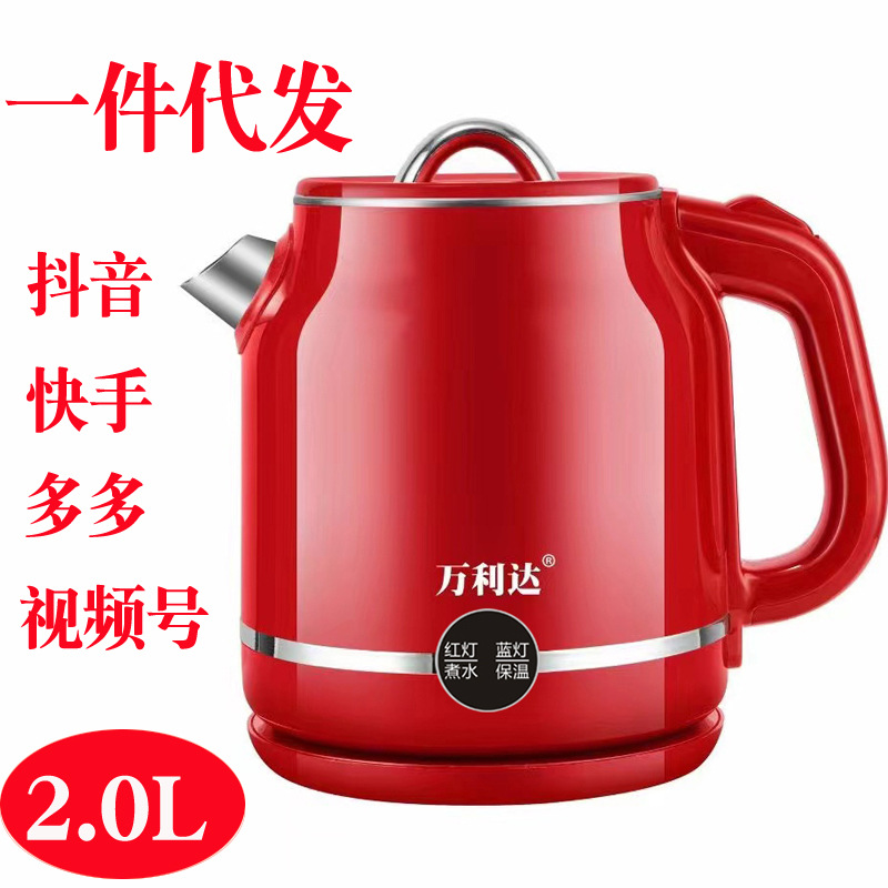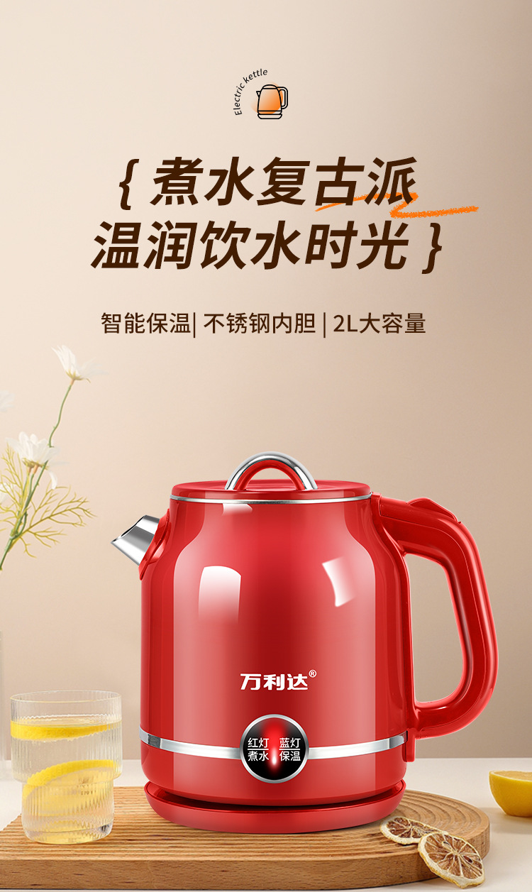 厂家直销2.0升高端电热水壶不锈钢大功率双层保温复古烧水壶保温