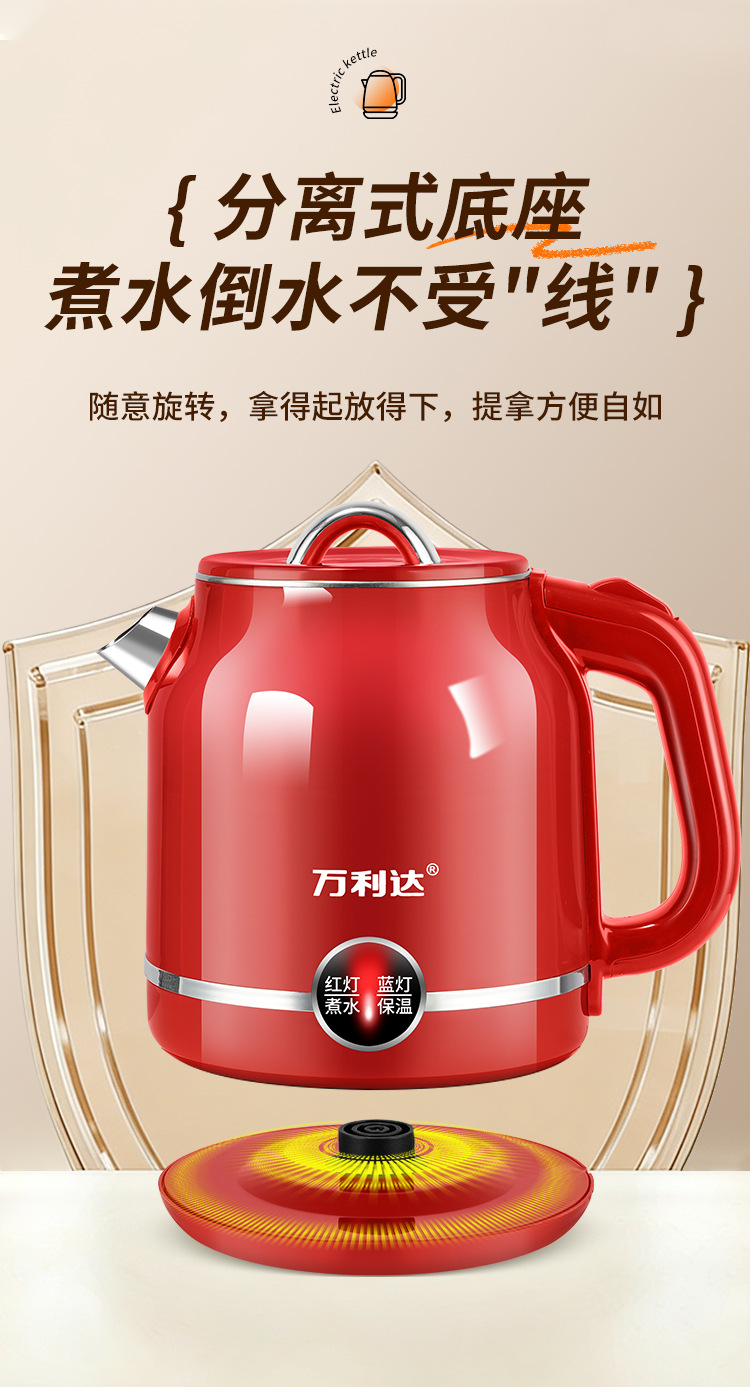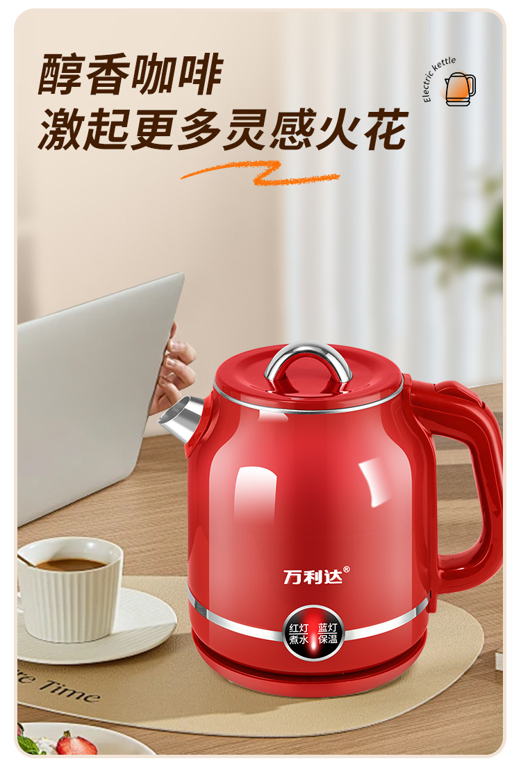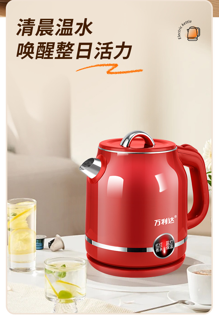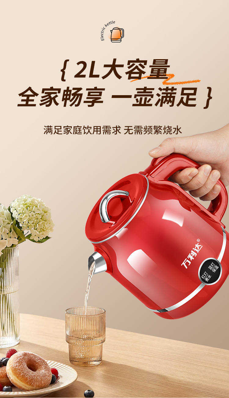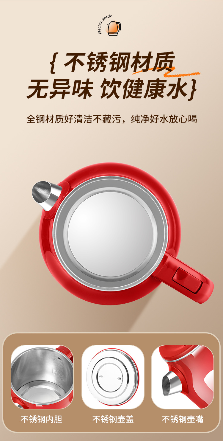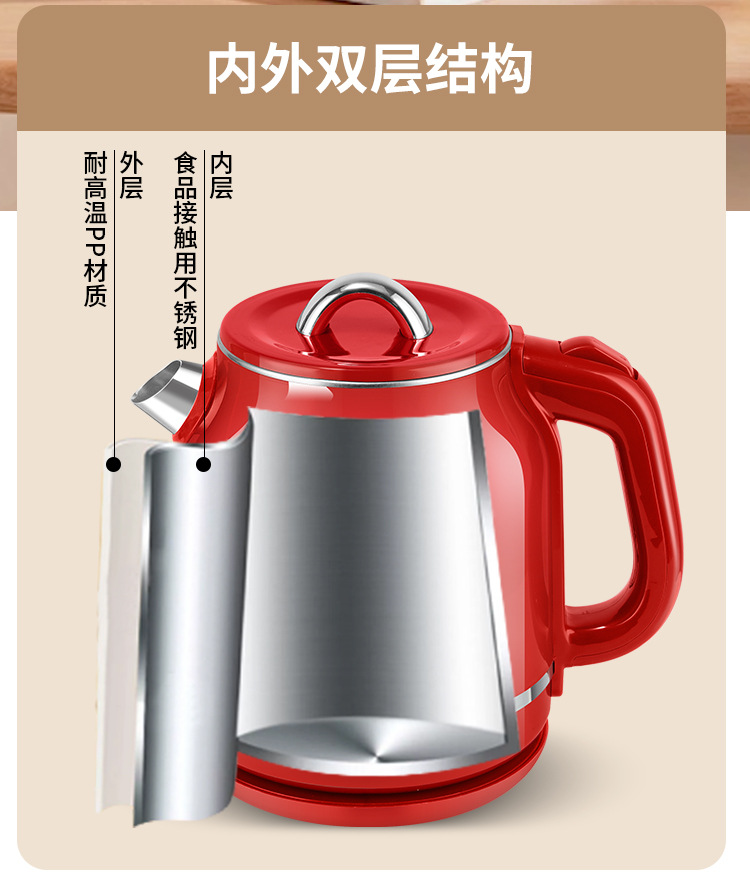 厂家直销2.0升高端电热水壶不锈钢大功率双层保温复古烧水壶保温