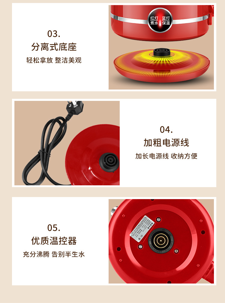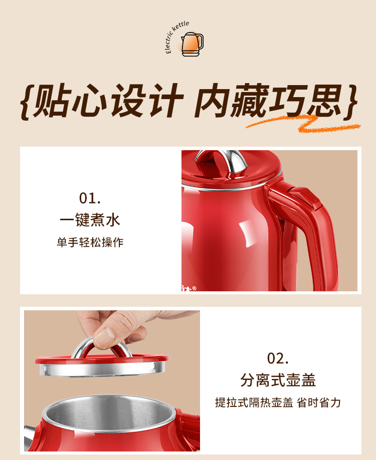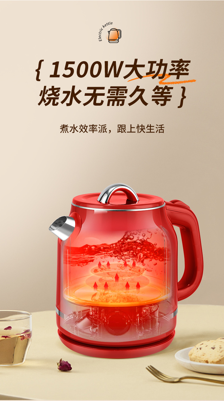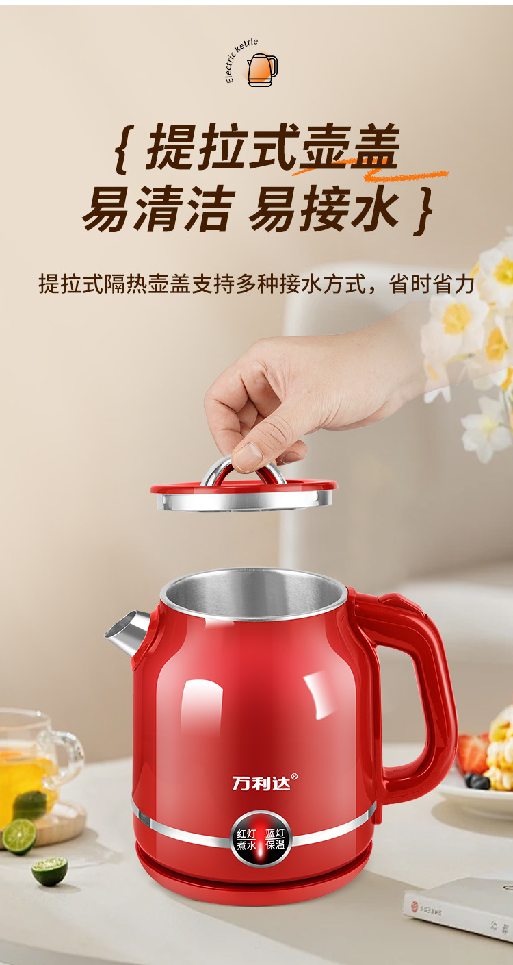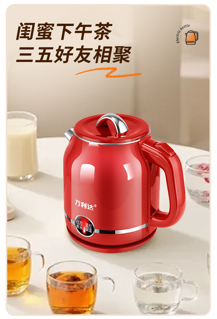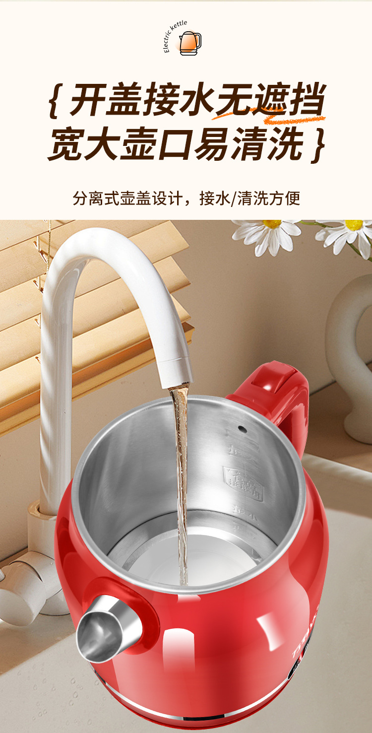厂家直销2.0升高端电热水壶不锈钢大功率双层保温复古烧水壶保温