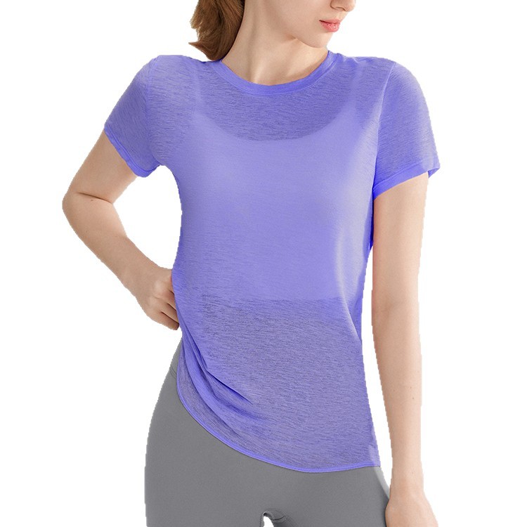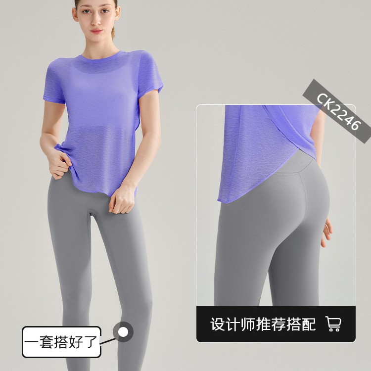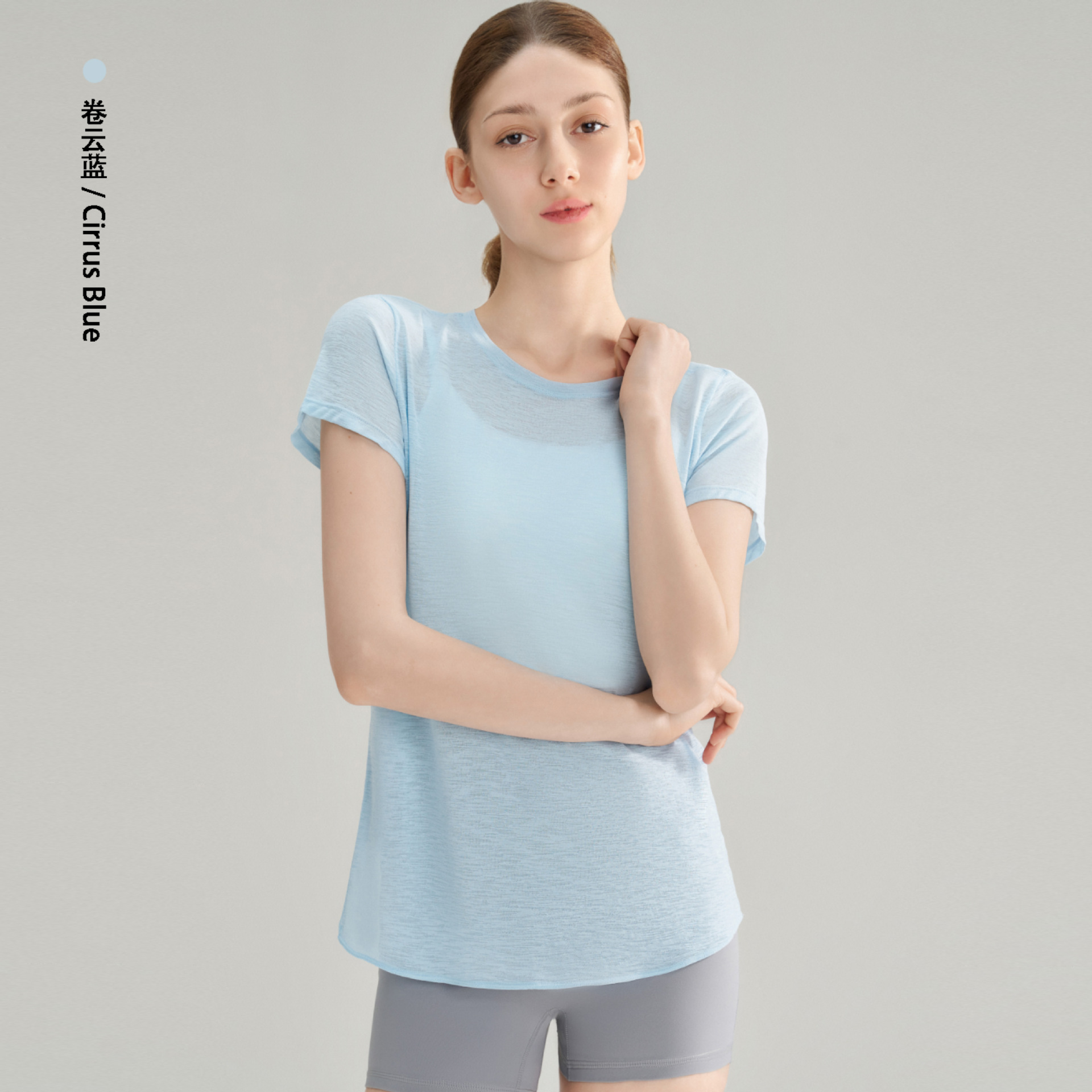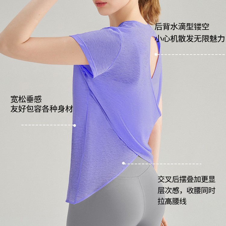竹节纱瑜伽服罩衫女夏训练跑步健身短袖上衣薄款晨跑服运动罩衫