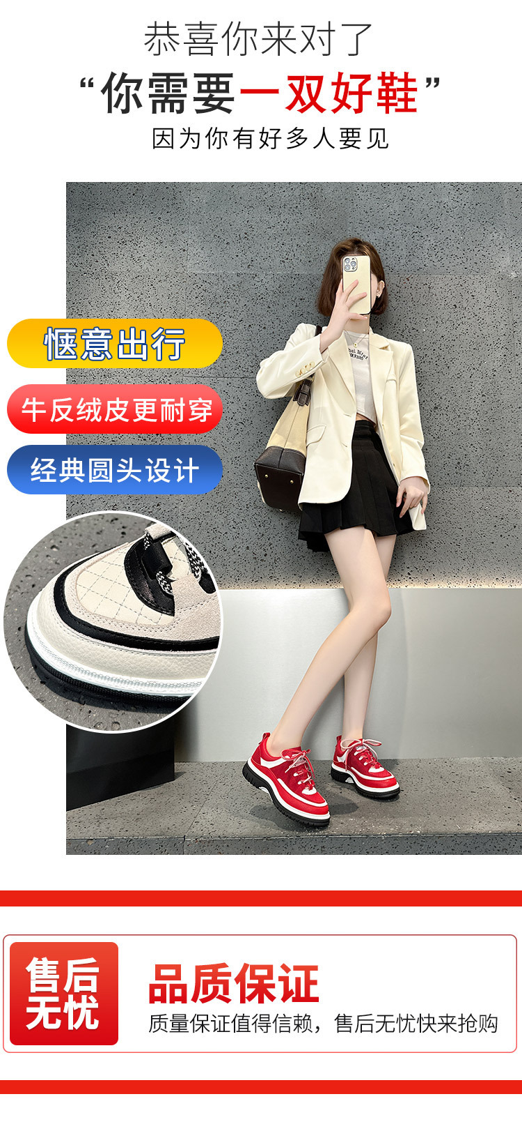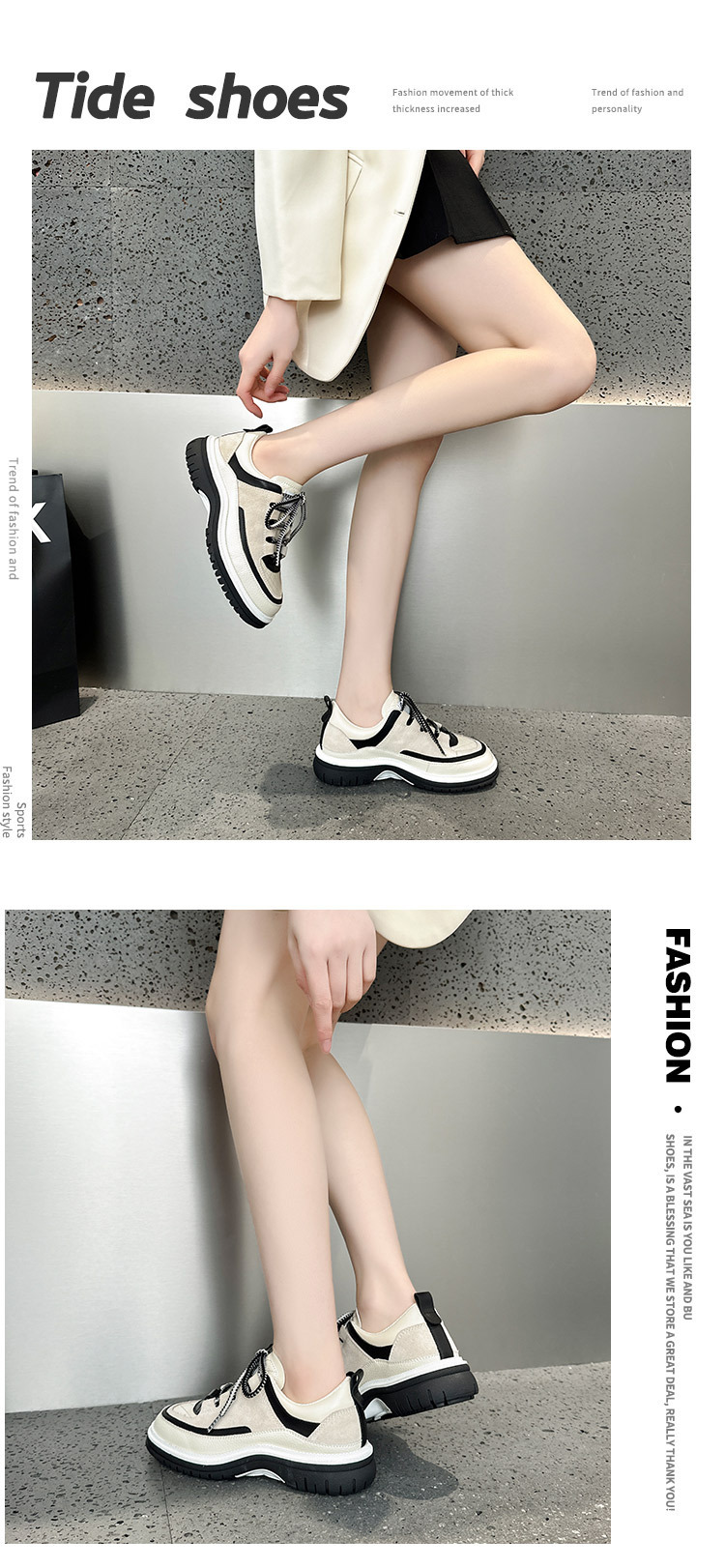 2025新款小香风厚底熊猫厚底运动鞋女时尚内增高休闲鞋学生鞋女