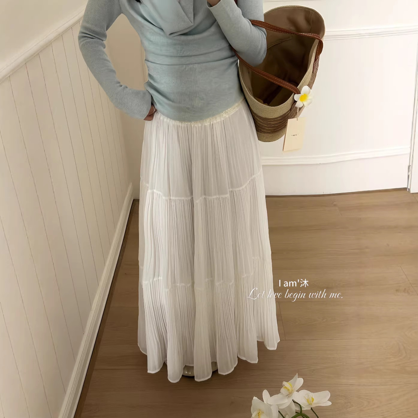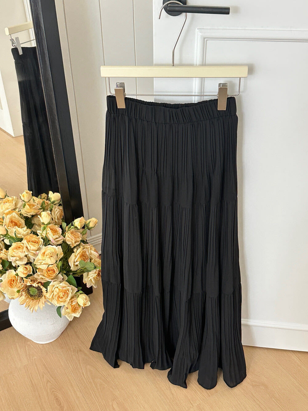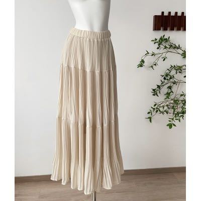 高密雪纺压褶蛋糕裙气质春夏季高腰垂感显瘦百搭温柔风长款半身裙