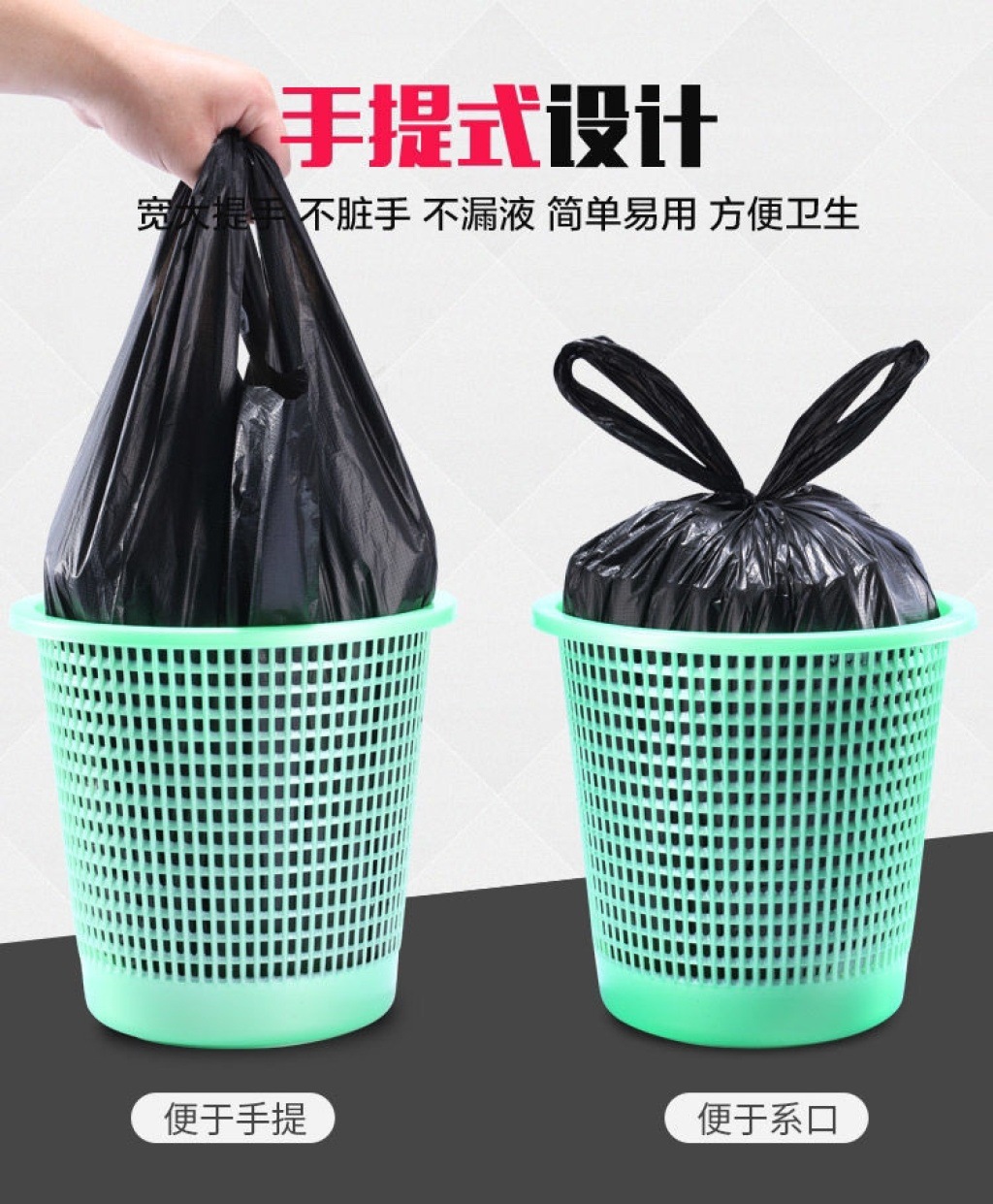 垃圾袋家用手提式大号加厚黑色大容量500只水桶塑料收纳清洁袋子