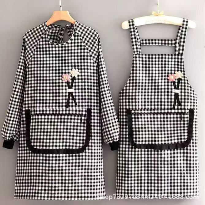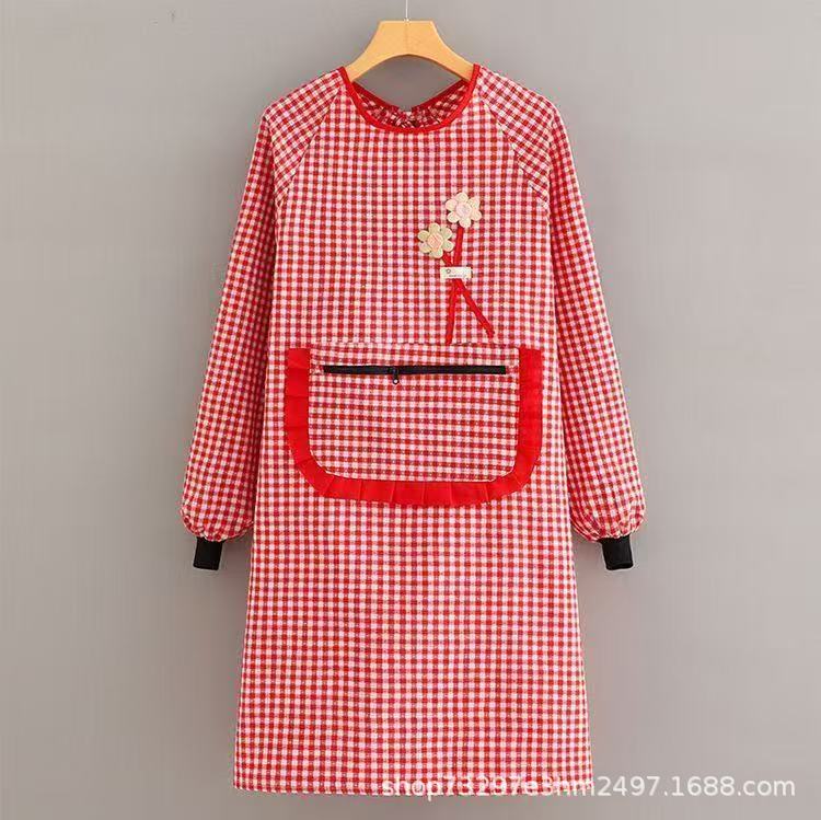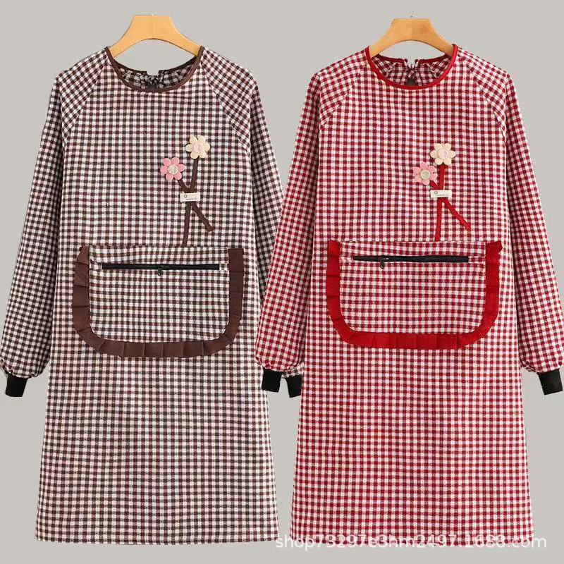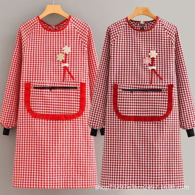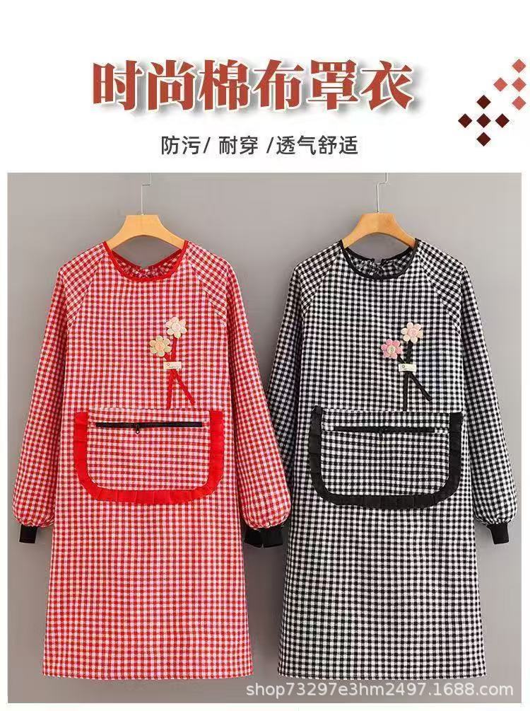 防污透气长袖围裙家用厨房成人做饭耐脏罩衣女外穿工作服餐饮上班
