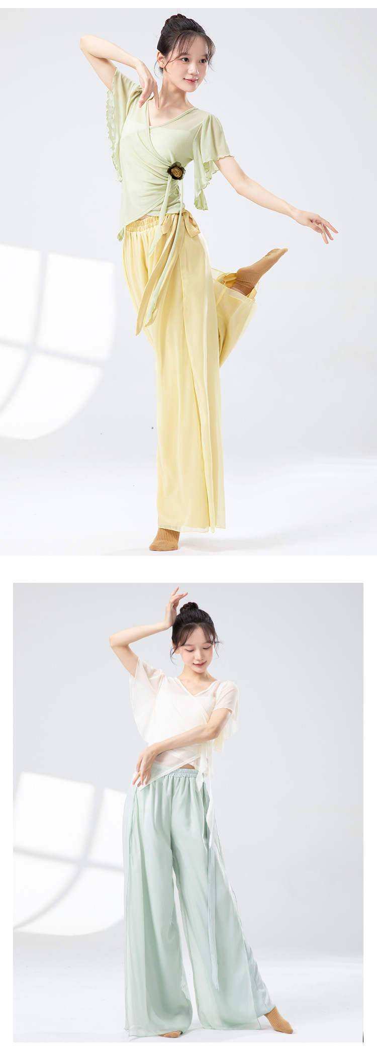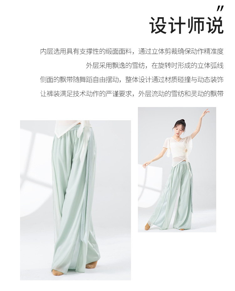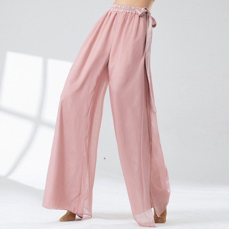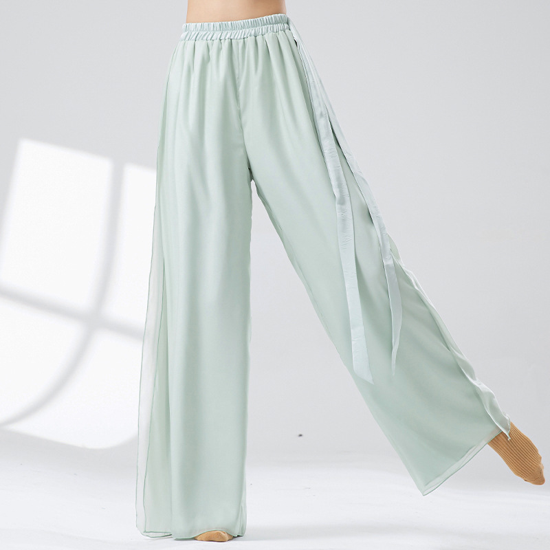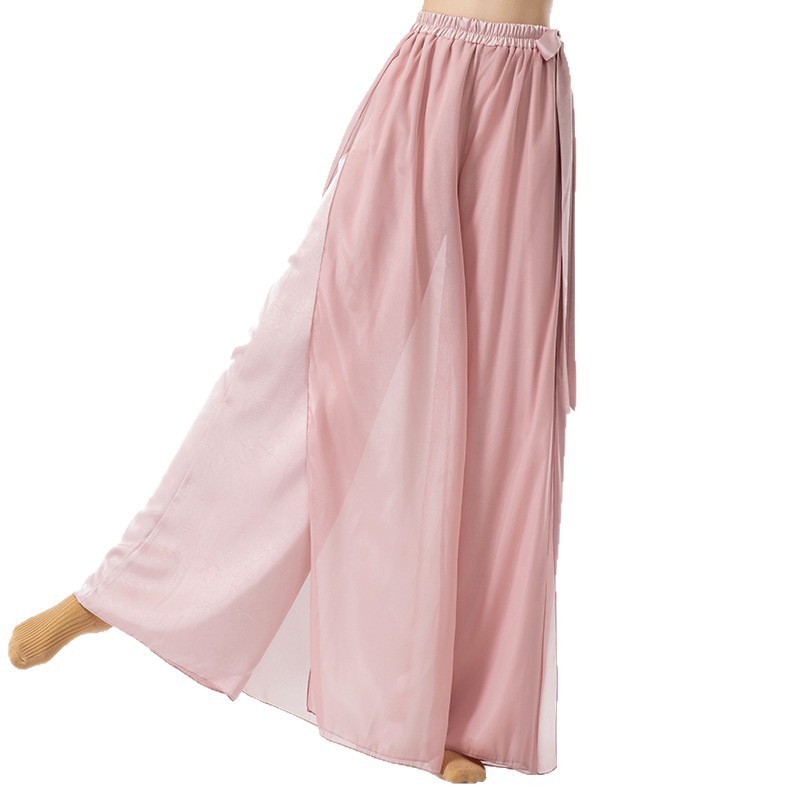 古典舞蹈裤女宽松雪纺裙裤中国风练功服双层拼接仙气飘逸阔腿裤子