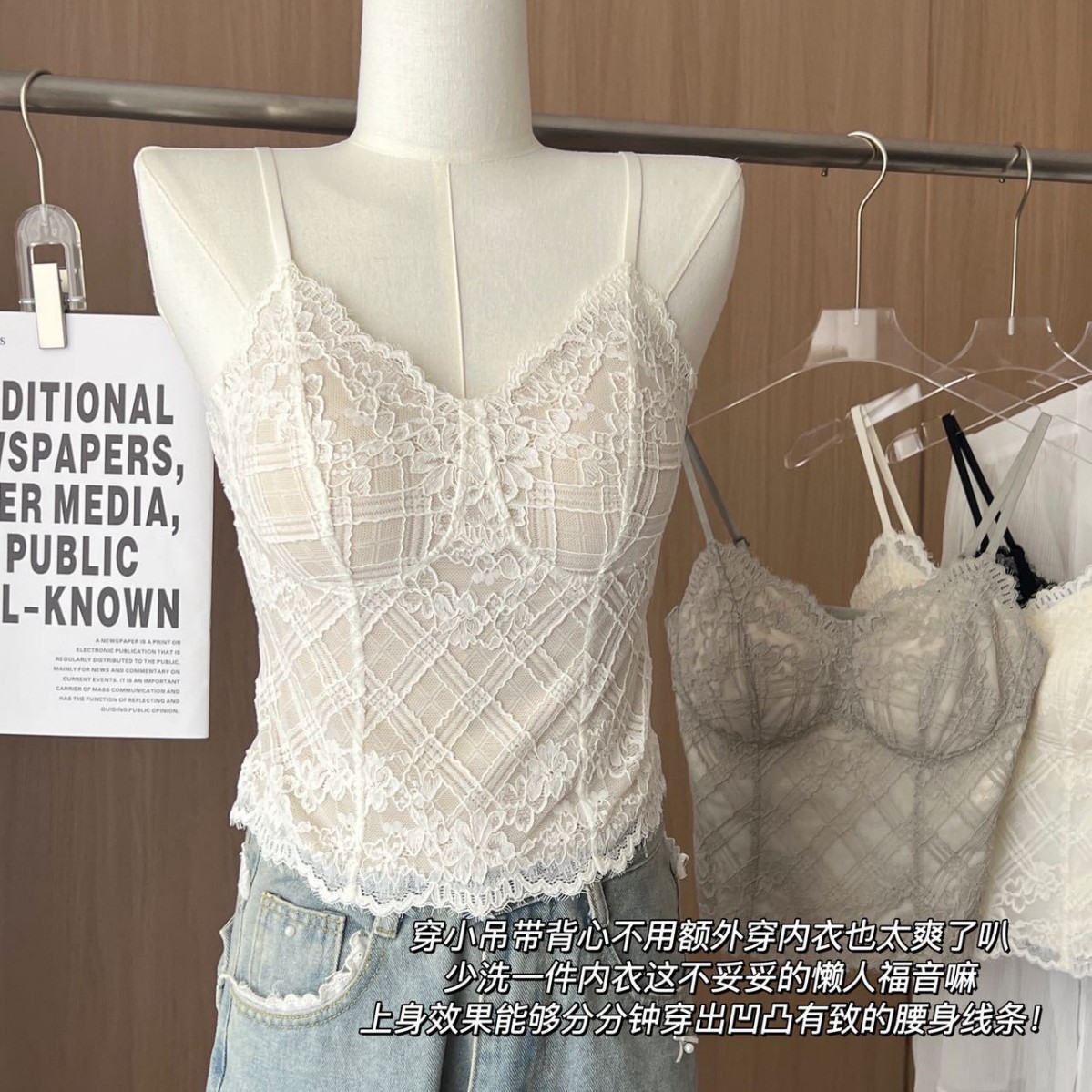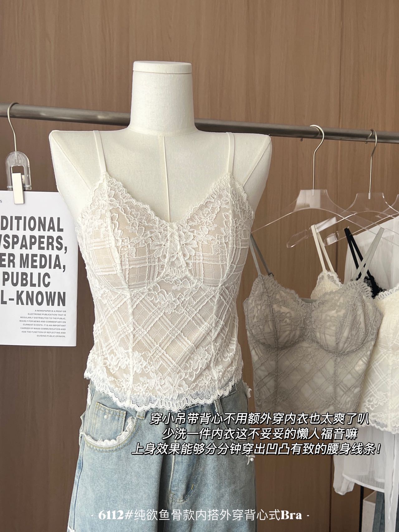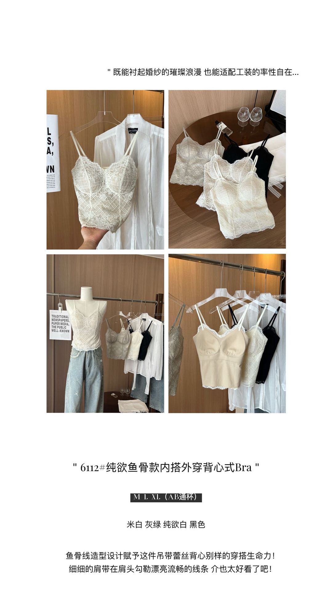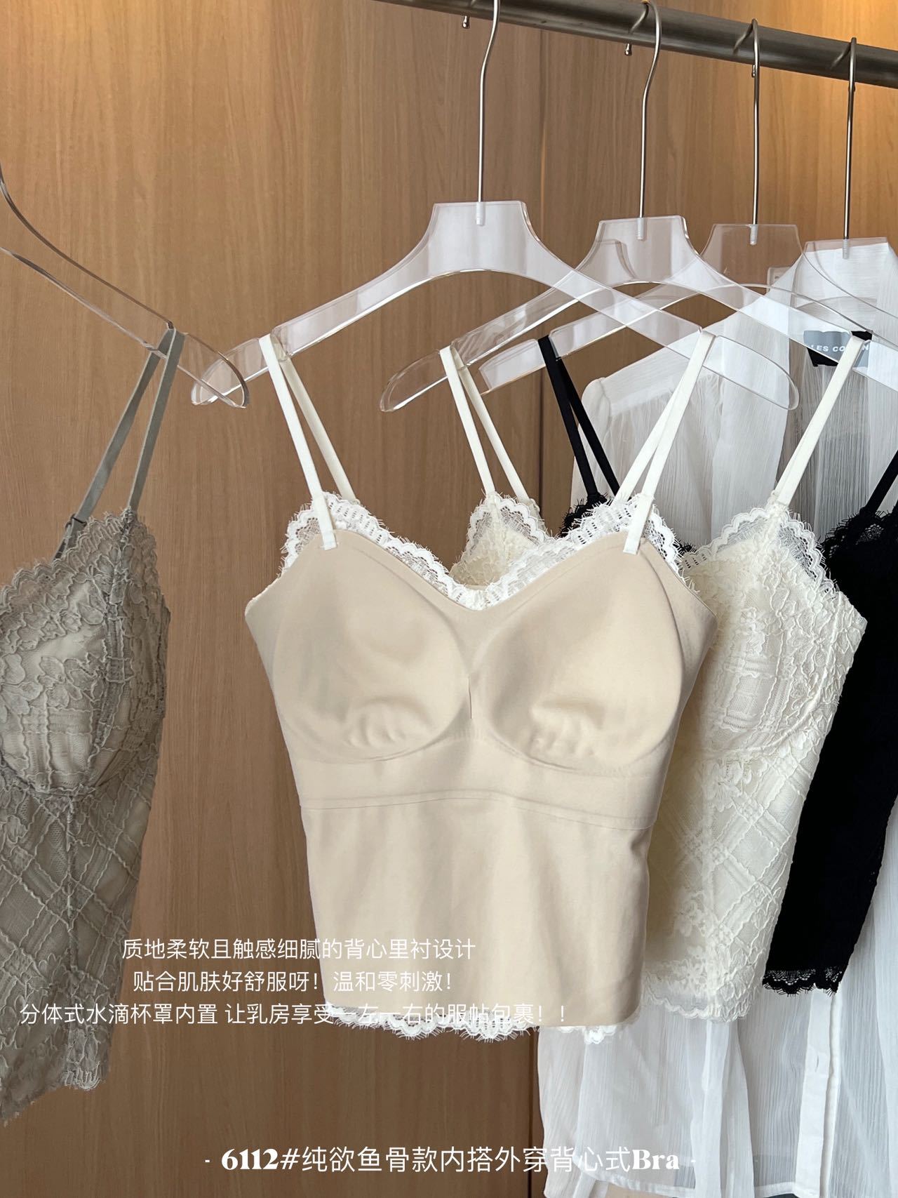 早春新法式纯欲鱼骨款内搭外穿蕾丝吊带胸垫修身显瘦内搭可外穿