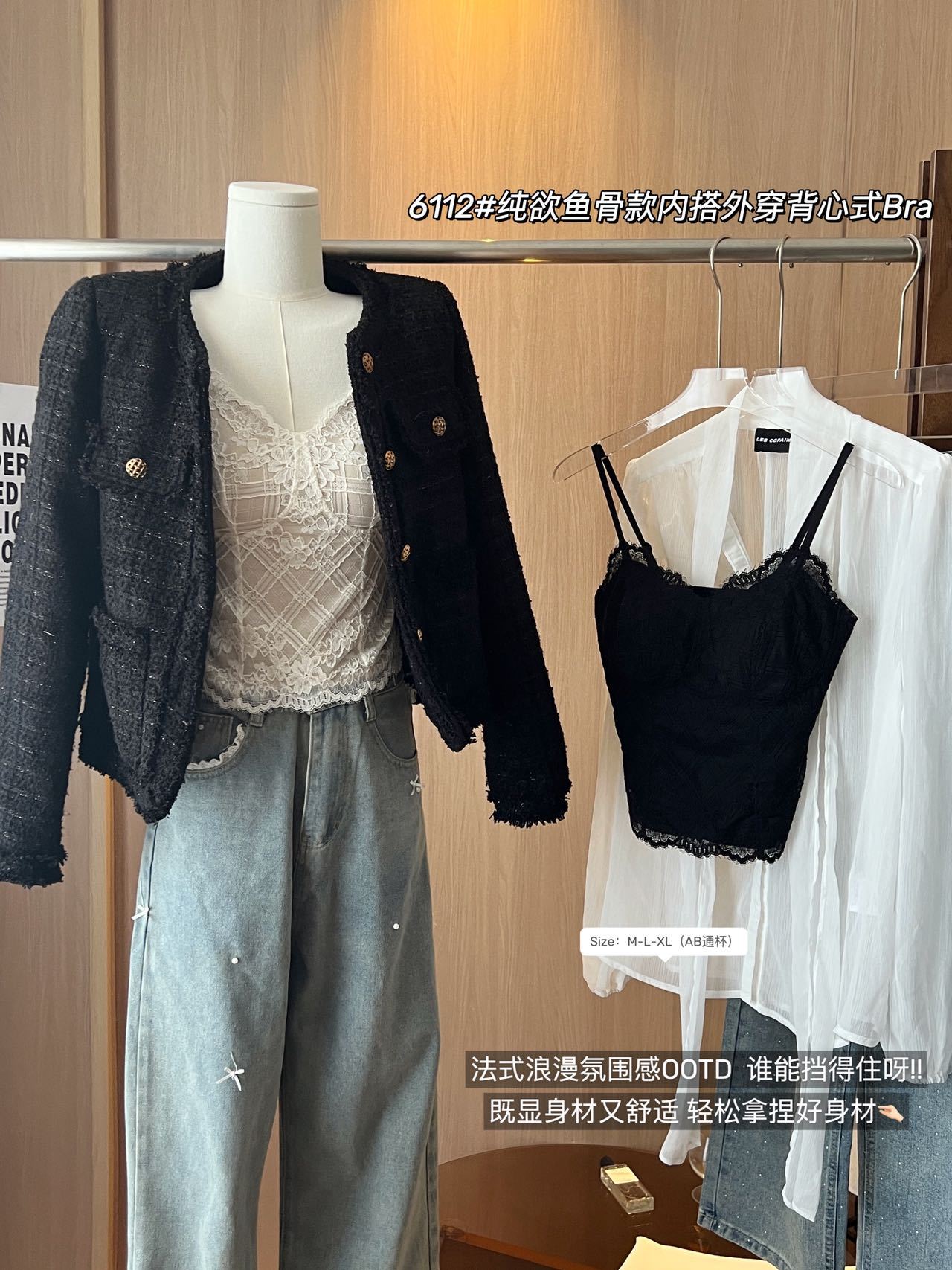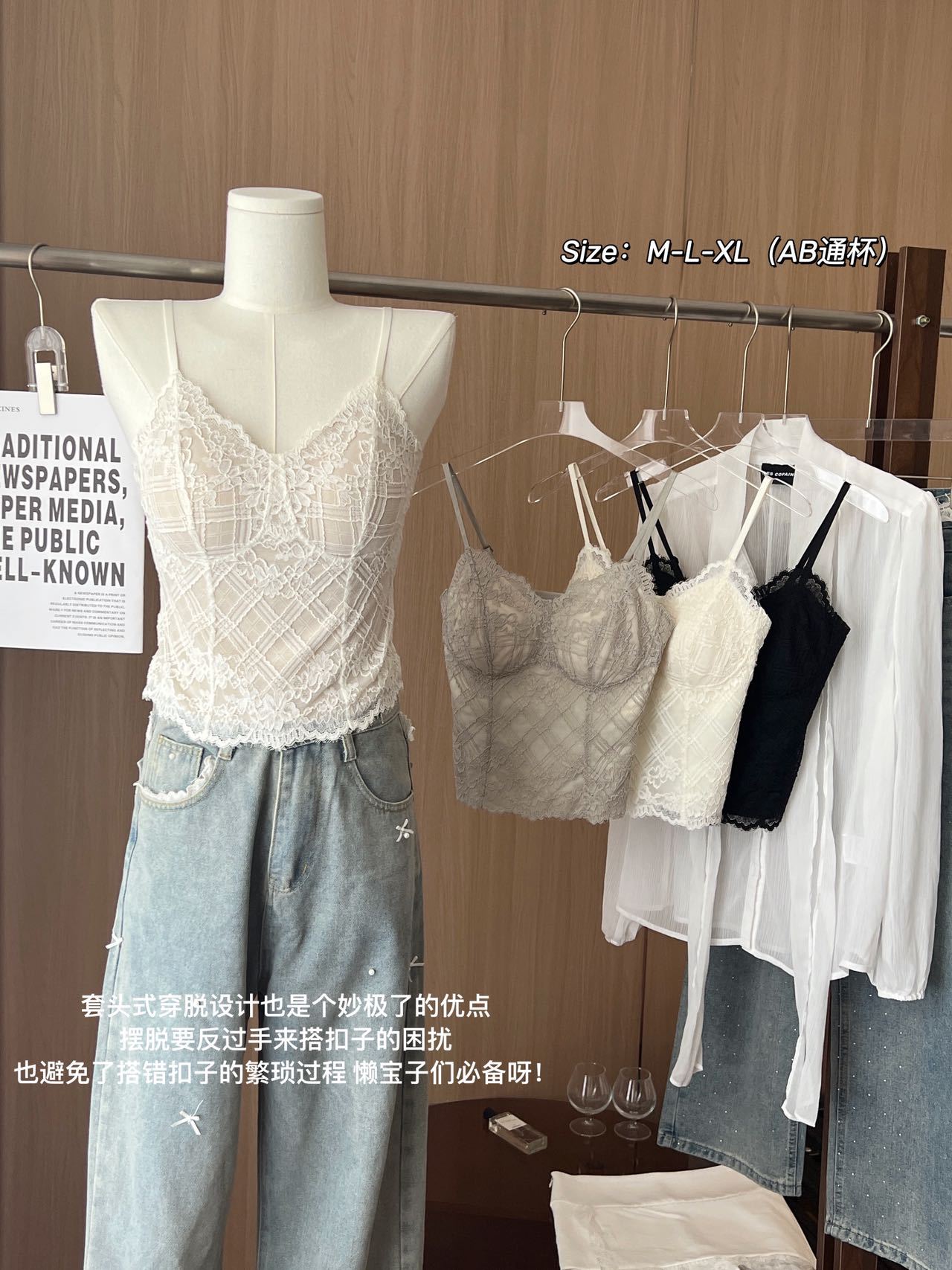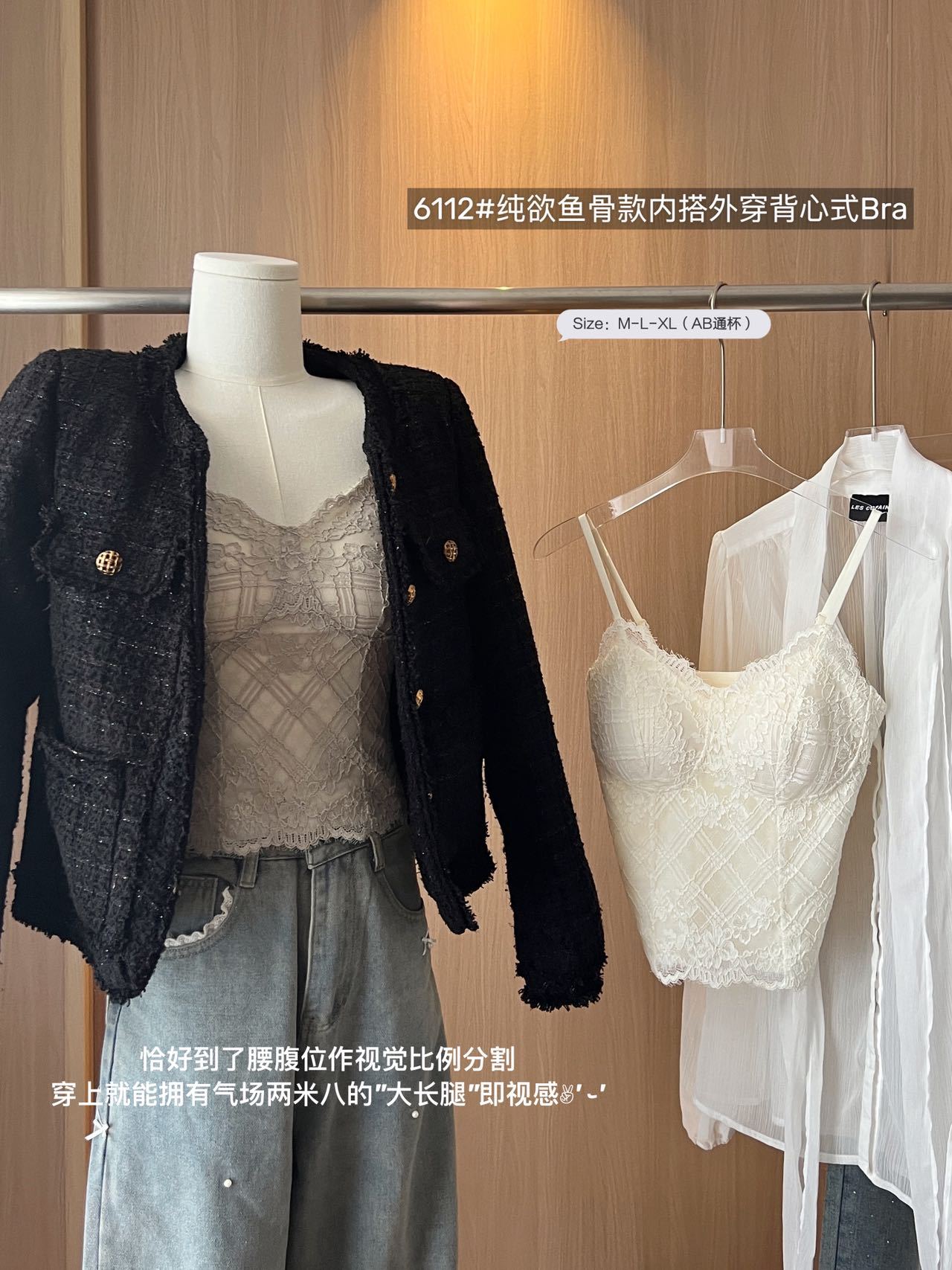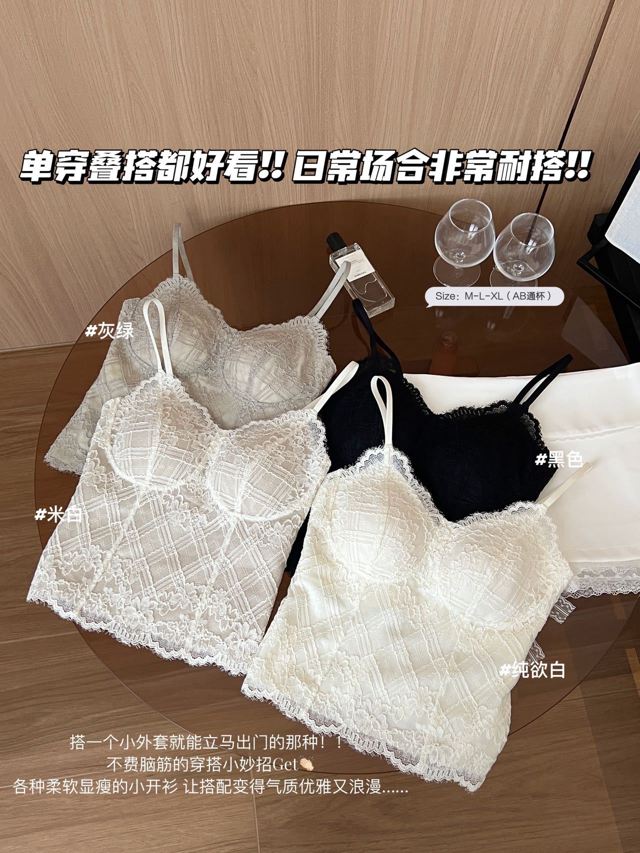 早春新法式纯欲鱼骨款内搭外穿蕾丝吊带胸垫修身显瘦内搭可外穿