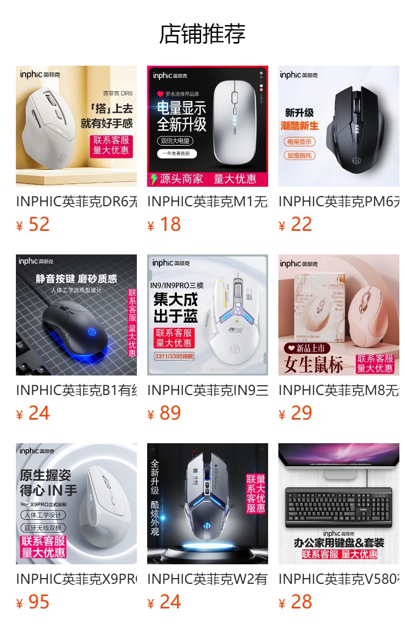 INPHIC英菲克W1静音有线鼠标吃鸡电竞游戏鼠标六键商务办公发光