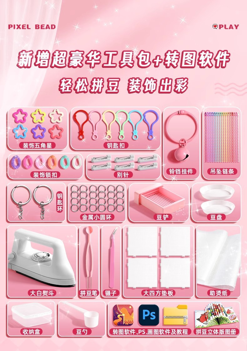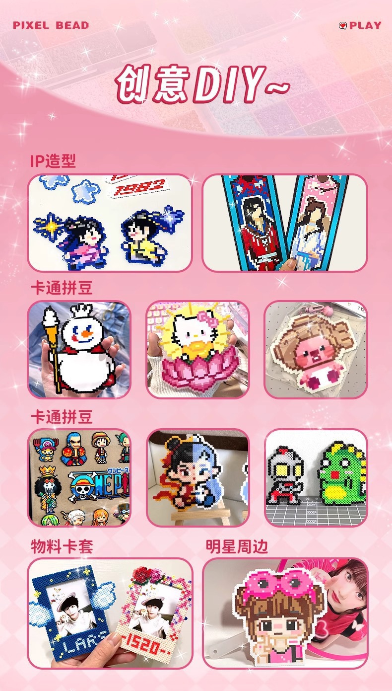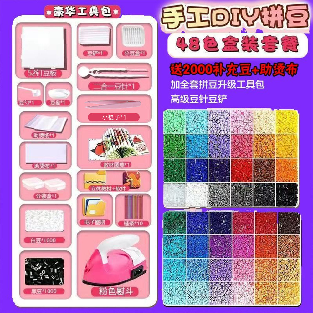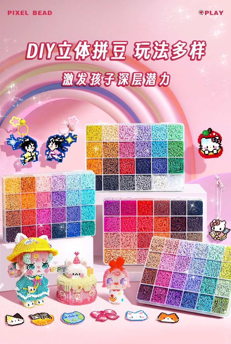 拼豆豆手工diy材料包全套玩具立体融合拼豆mard同款套装儿童益智