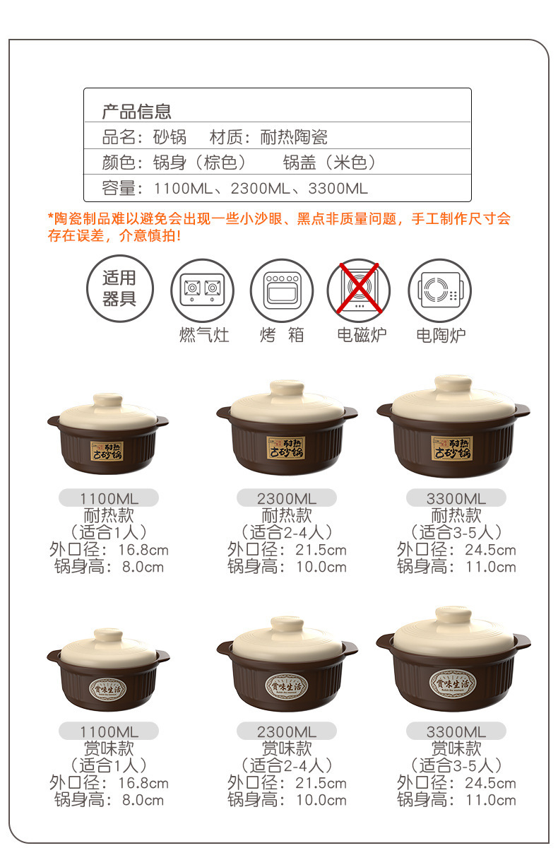 【古砂锅】棕米耐热砂锅大容量炖肉专用锅煲汤煲耐高温炖锅防干烧
