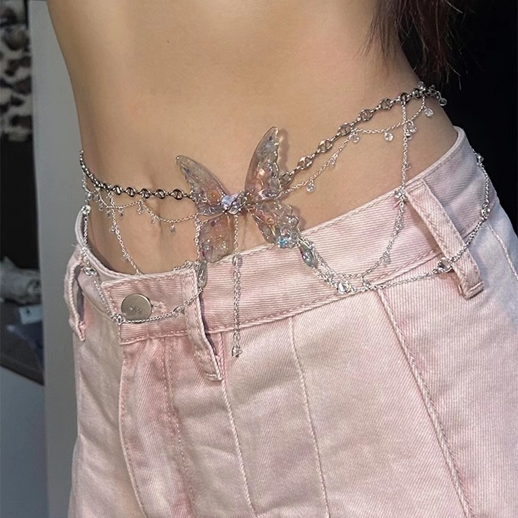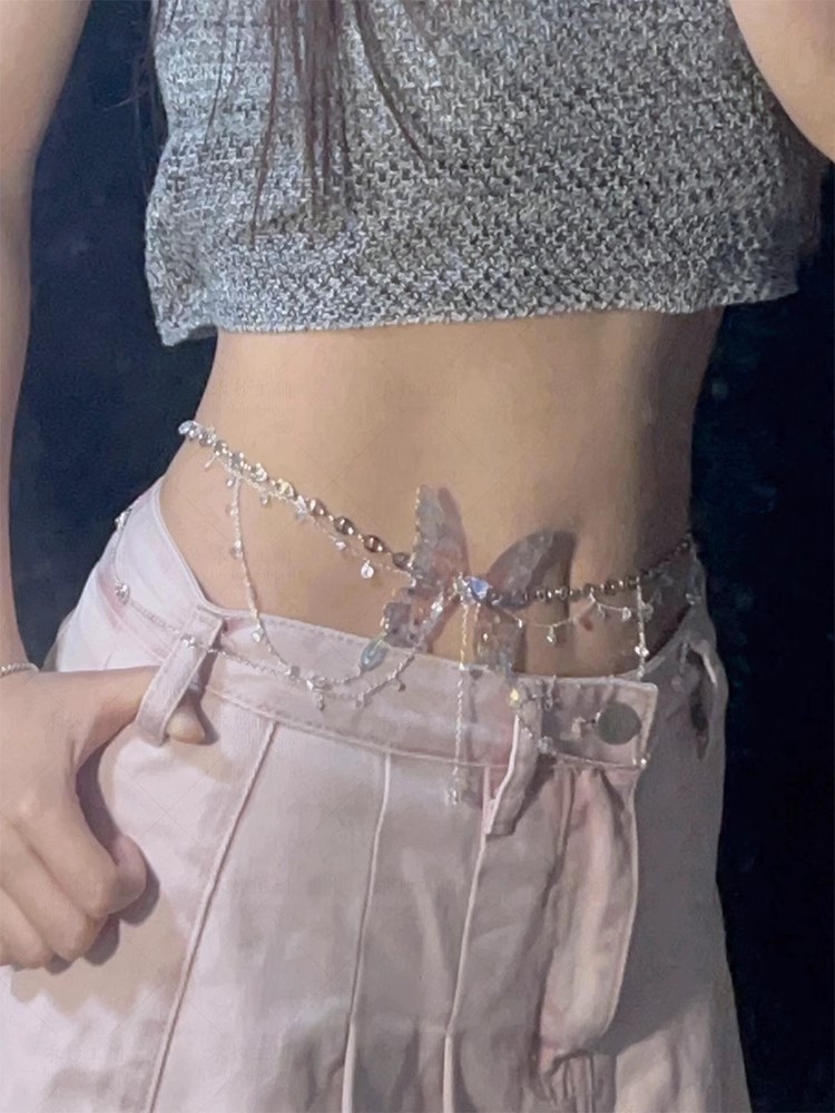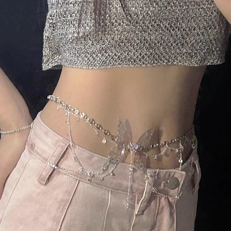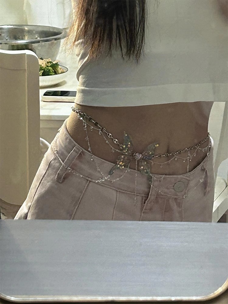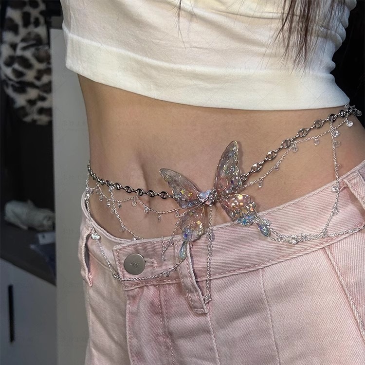 渐变蝴蝶纯欲腰链波西米亚肚脐链配裙子高级感牛仔裤配饰新款饰品