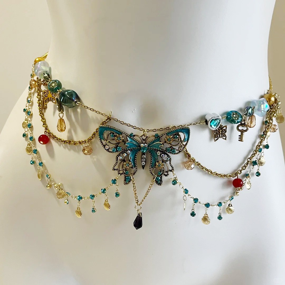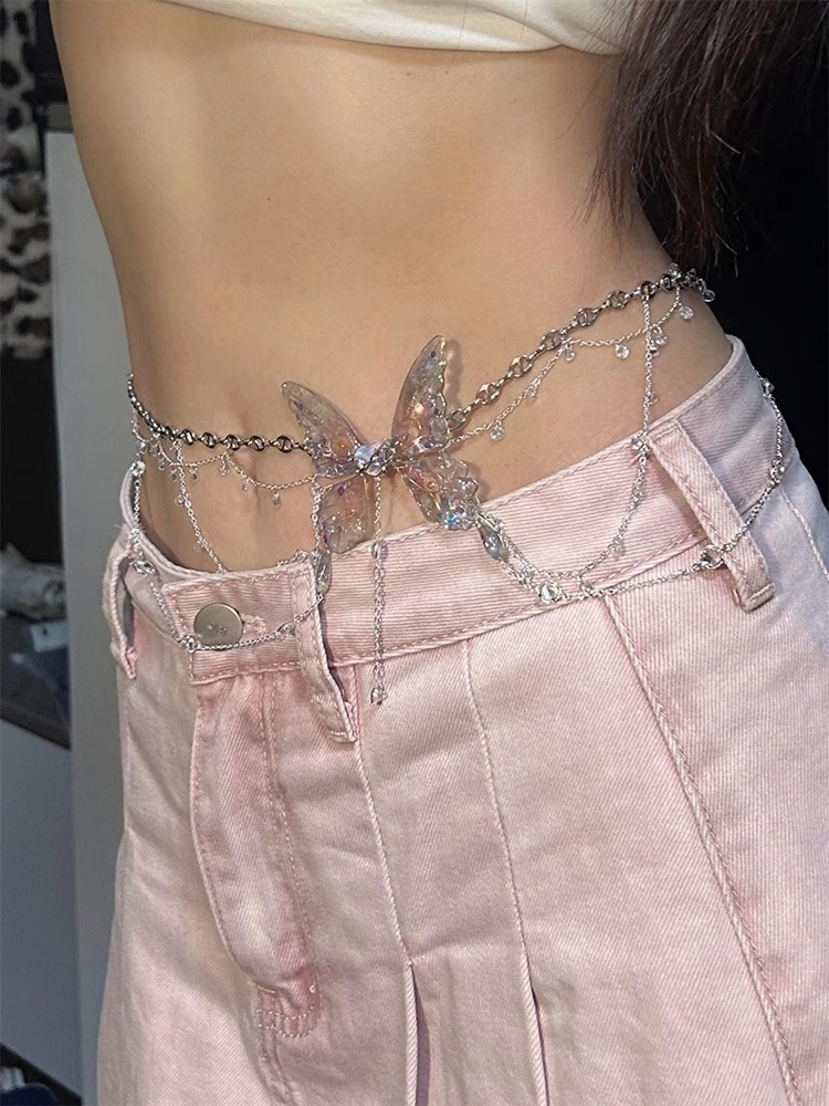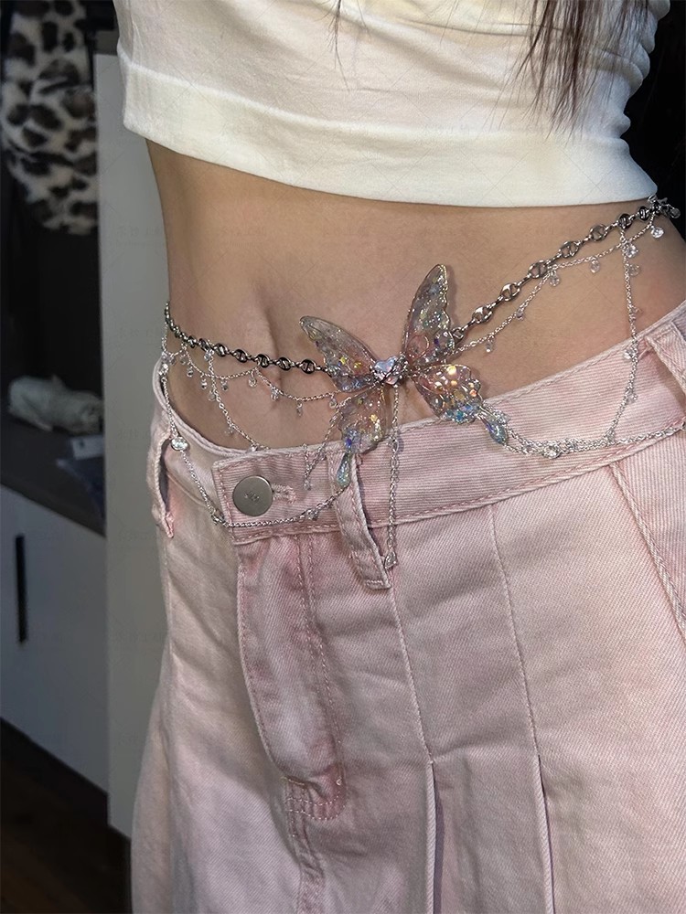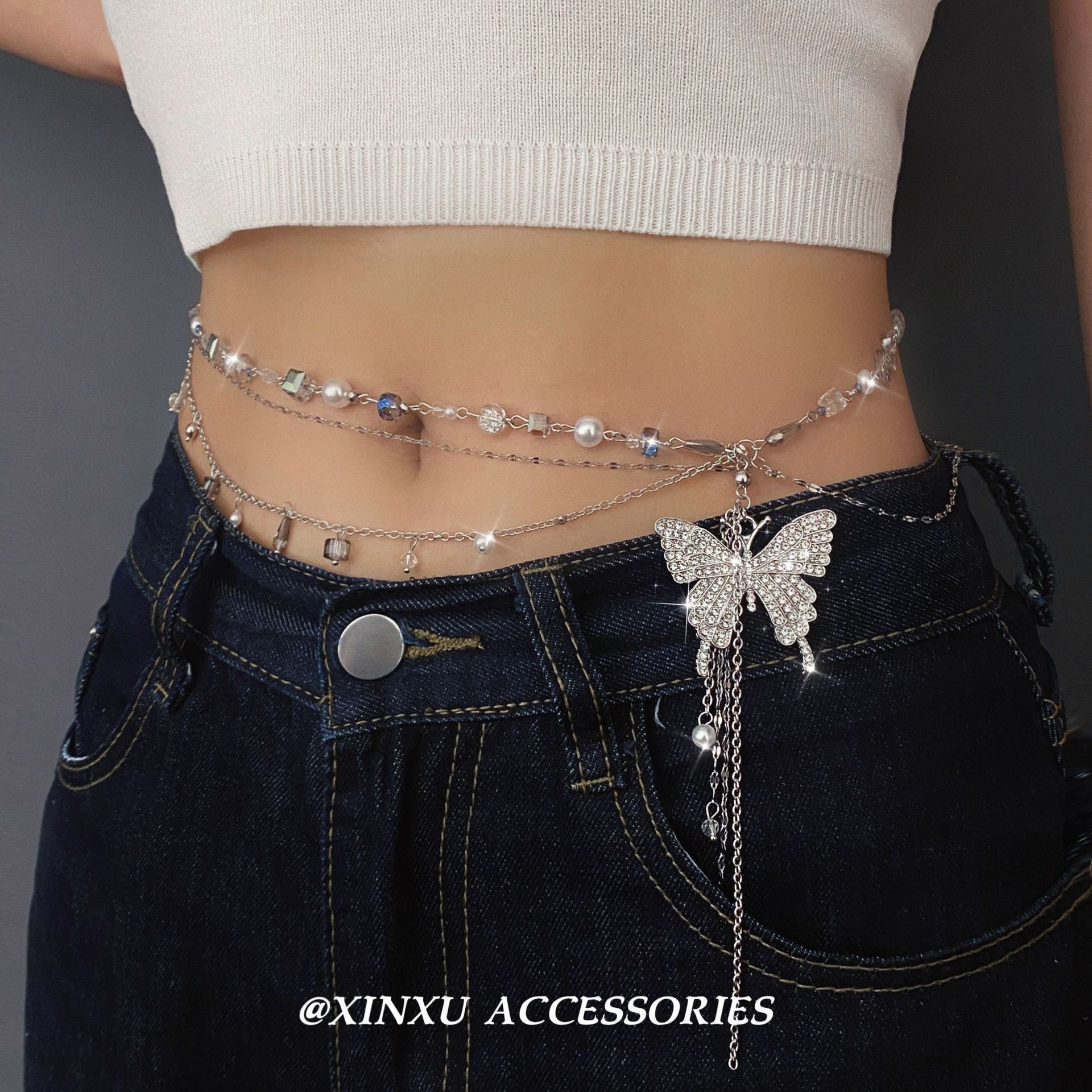 渐变蝴蝶纯欲腰链波西米亚肚脐链配裙子高级感牛仔裤配饰新款饰品