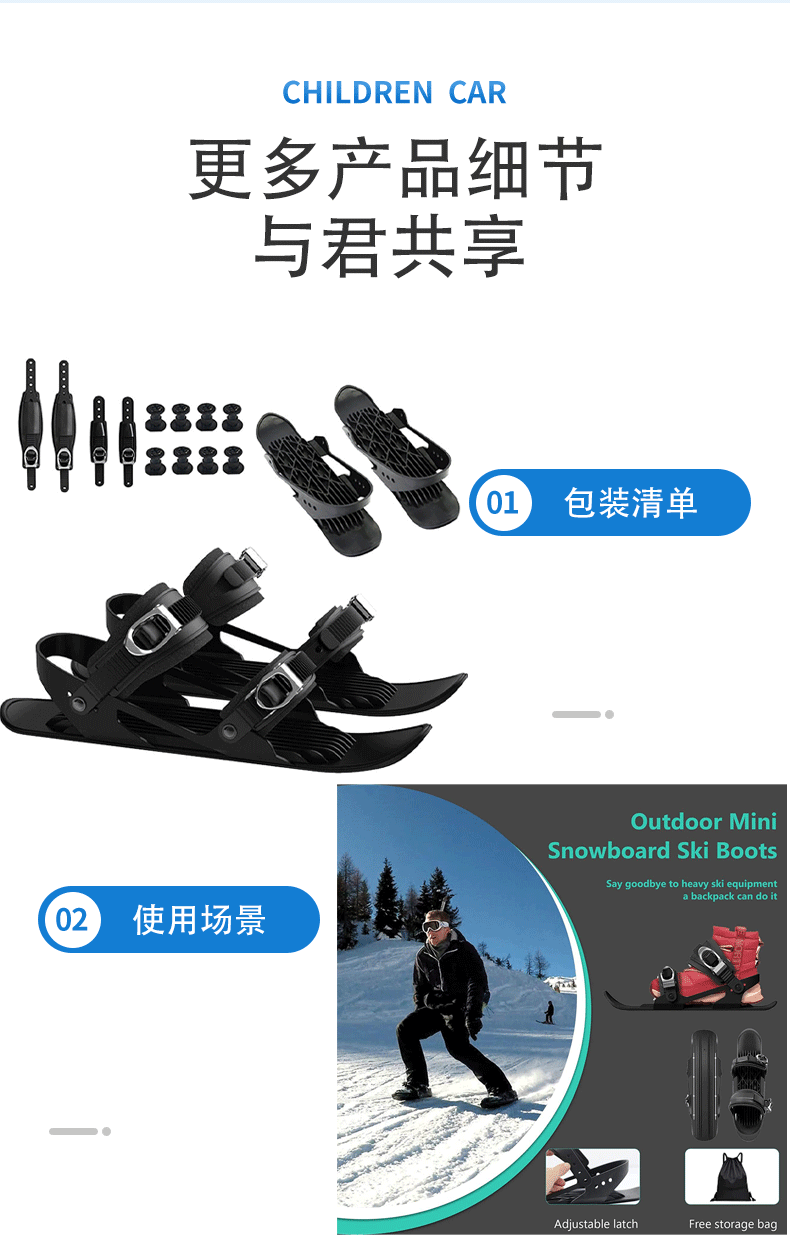 跨境便捷式户外滑雪运动滑雪鞋女滑雪儿童双板固定器玩雪工具