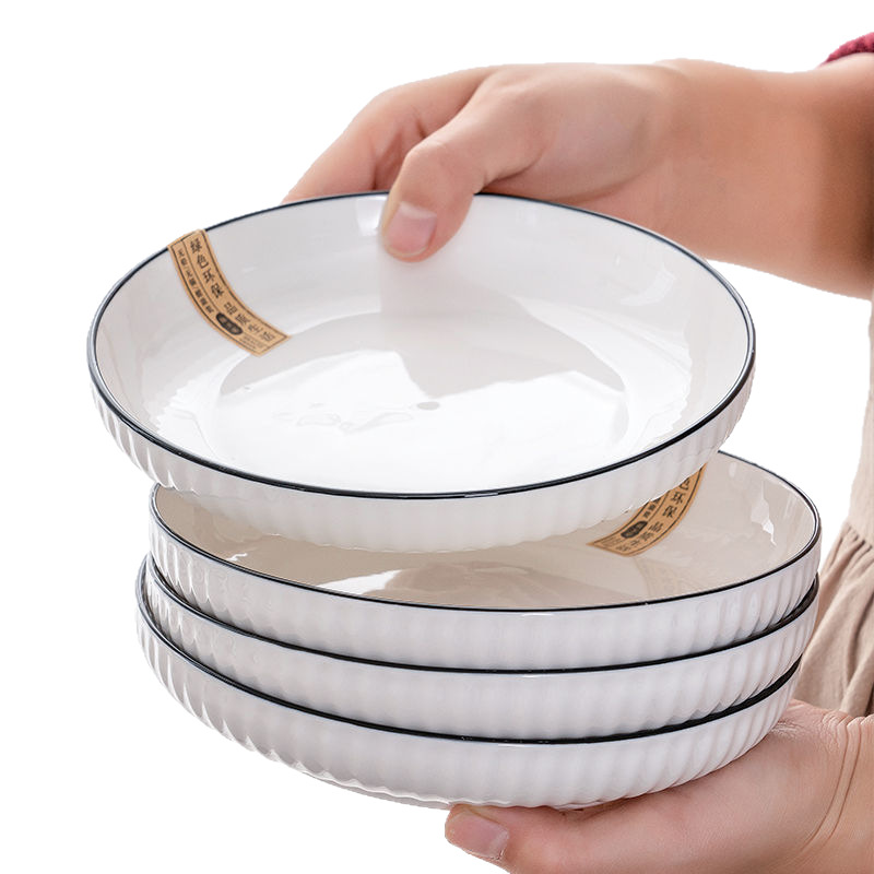 圆形竖纹陶瓷碗碟批发大汤碗景德镇家用碗盘子吃饭碗面碗组合礼品