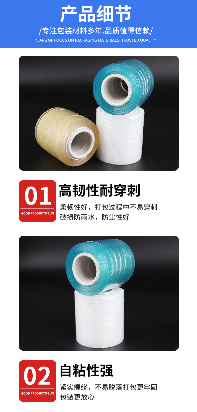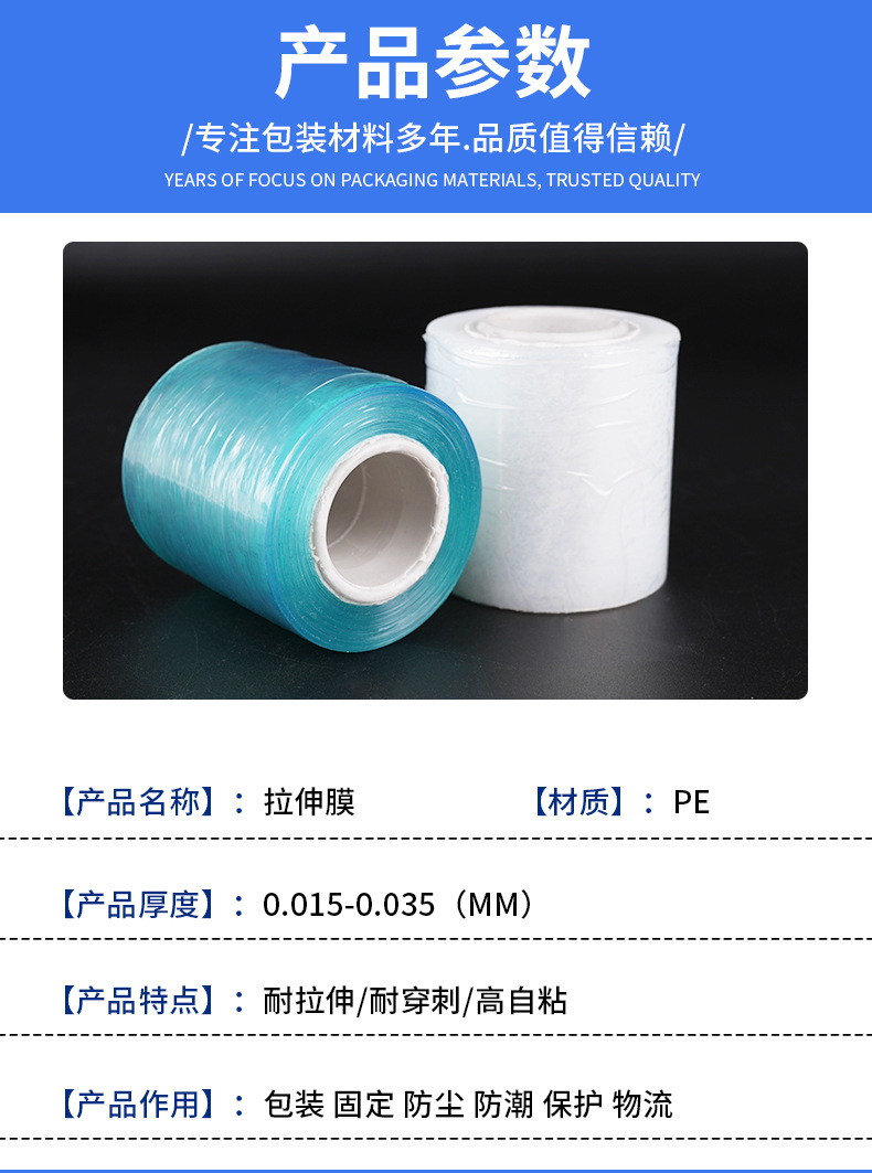 青色透明拉伸膜优质包装PE缠绕膜绿色塑料膜包装膜