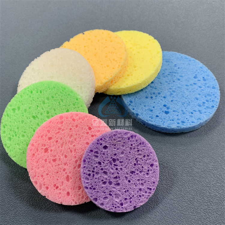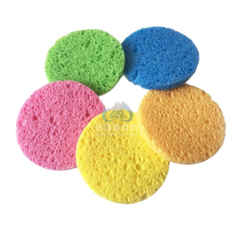 彩色圆形粗孔压缩吸水天然纤维清洁沐浴木浆绵洗脸洁面扑片可订购