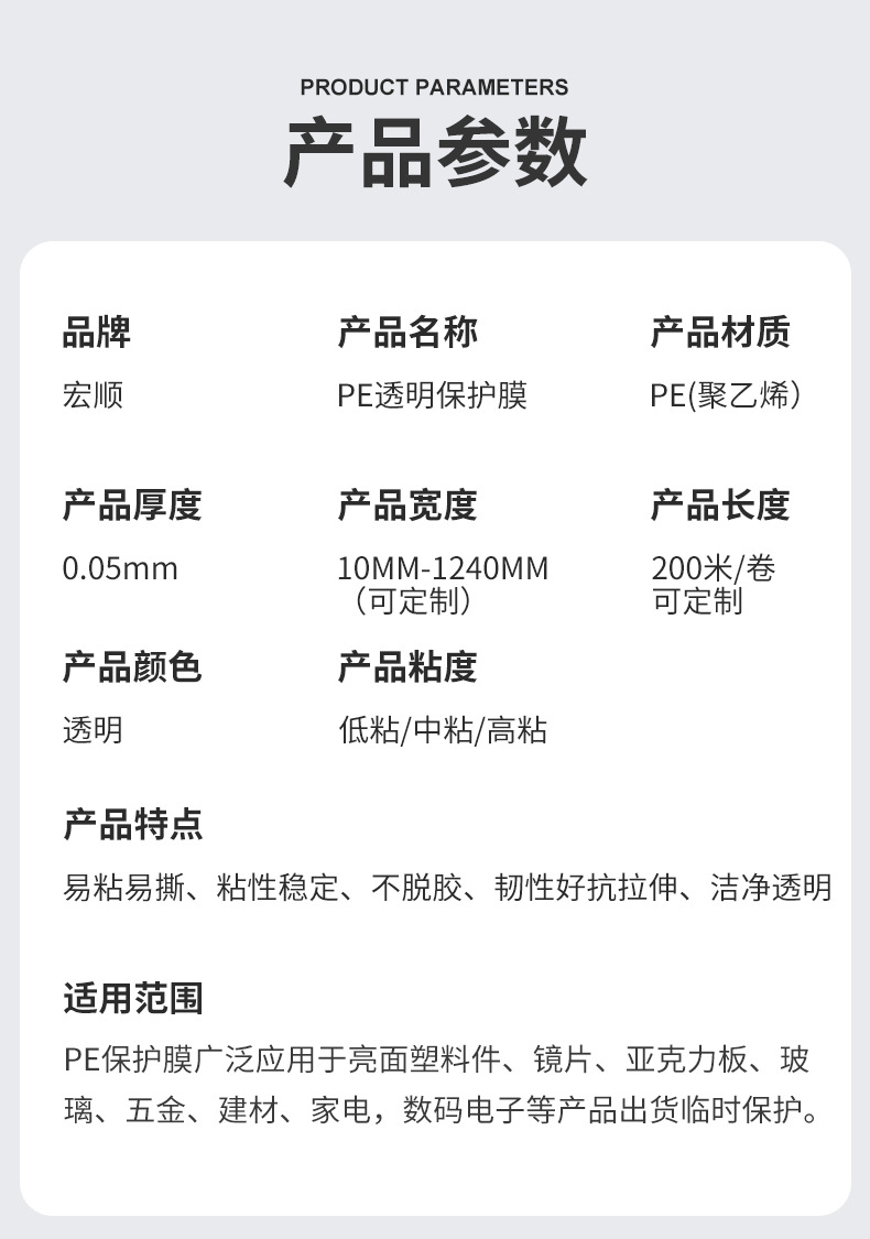 冰箱板材五金高粘透明pe保护膜 亚克力注塑料件自粘膜屏幕保护膜