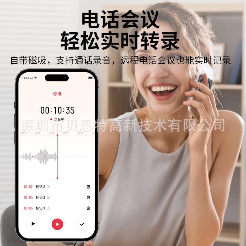 跨境智能ai录音笔蓝牙带磁吸会议纪要同步录音转写总结翻译录音机