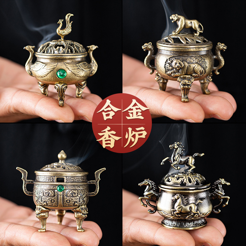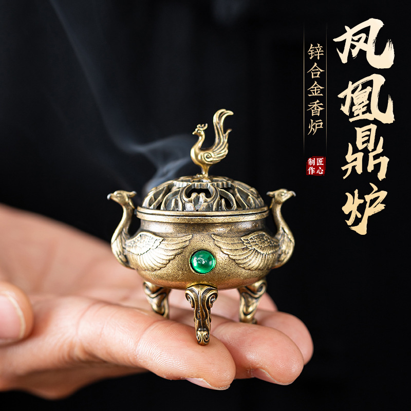 新品凤凰麒麟三足炉天元鼎炉小祥云无粘粉檀香香薰炉合金香炉摆件