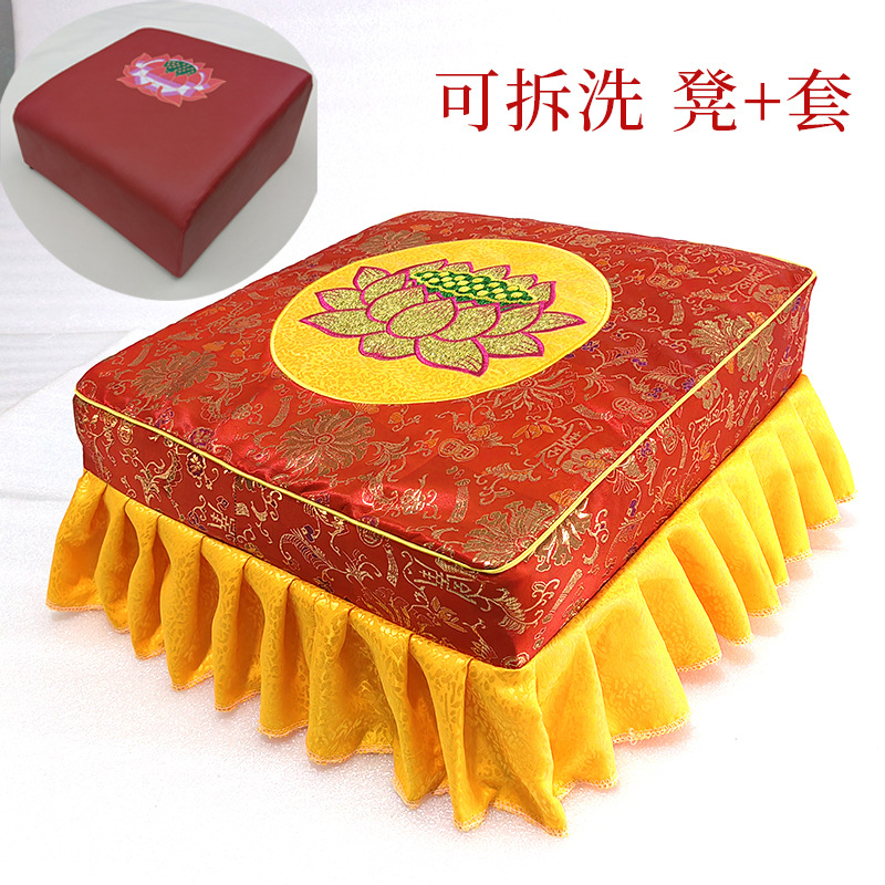寺庙拜佛用的拜垫套拜凳套跪垫套家用铜版花布料跪垫拜佛凳套道家