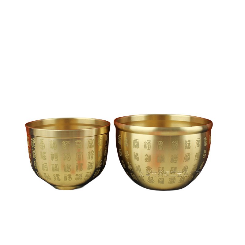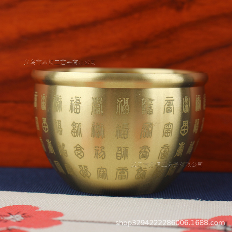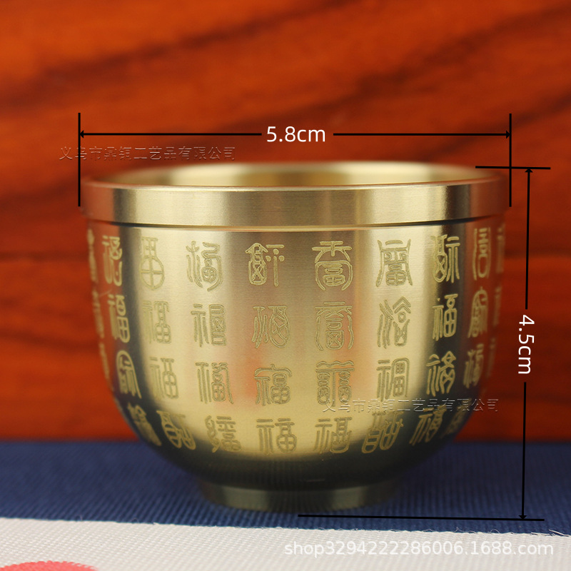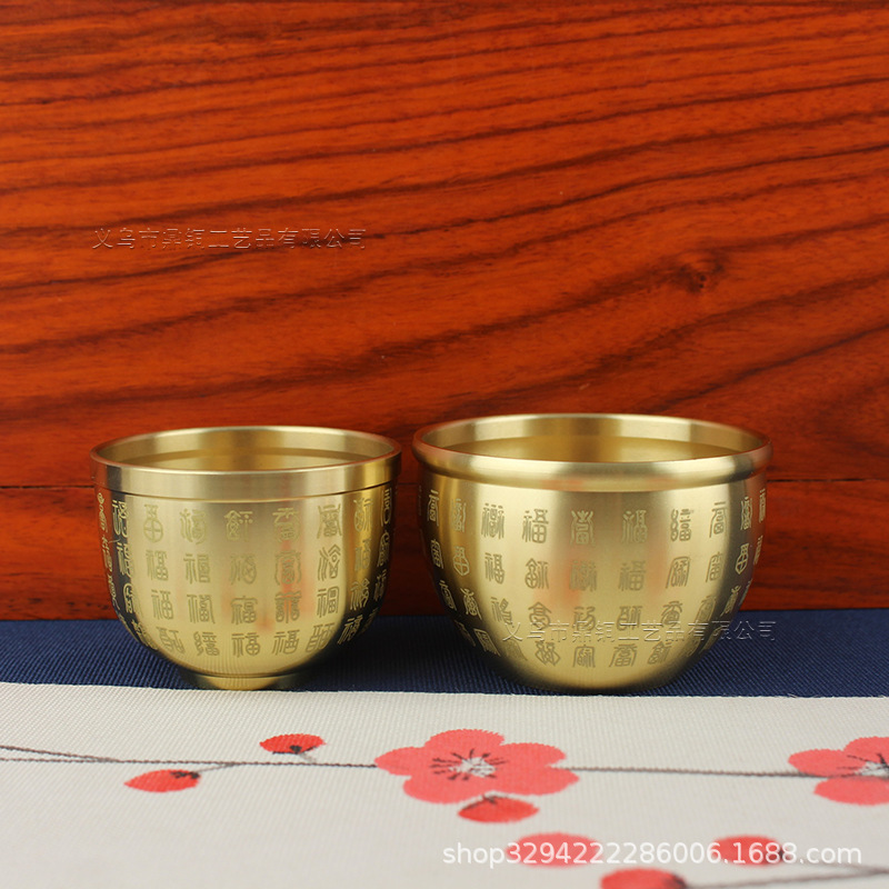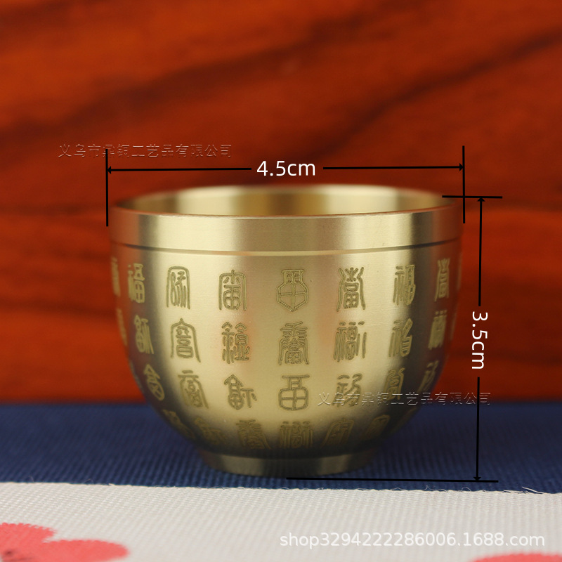 黄铜百福杯小号纯铜摆件办公室茶道茶具铜工艺品供佛祭祀茶杯酒杯
