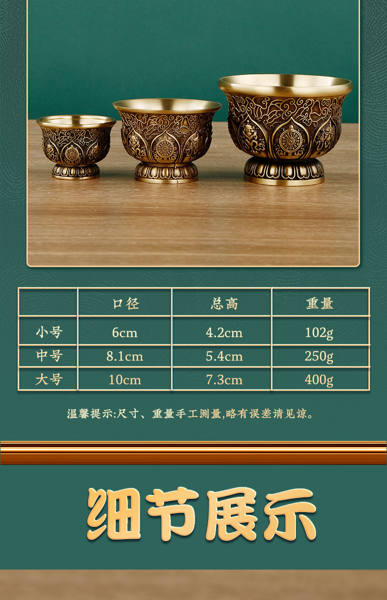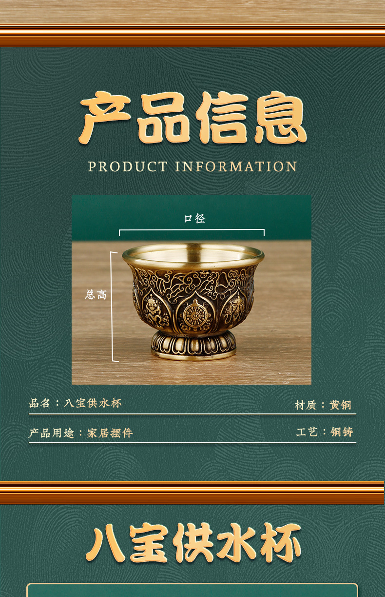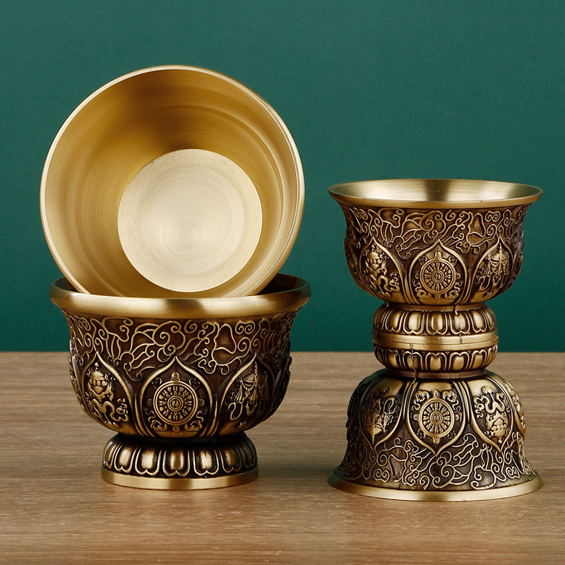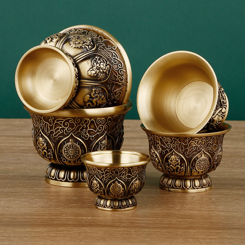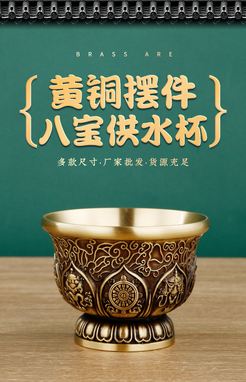 黄铜八宝贡水杯八供杯吉祥净水杯供碗观音家用摆件批发