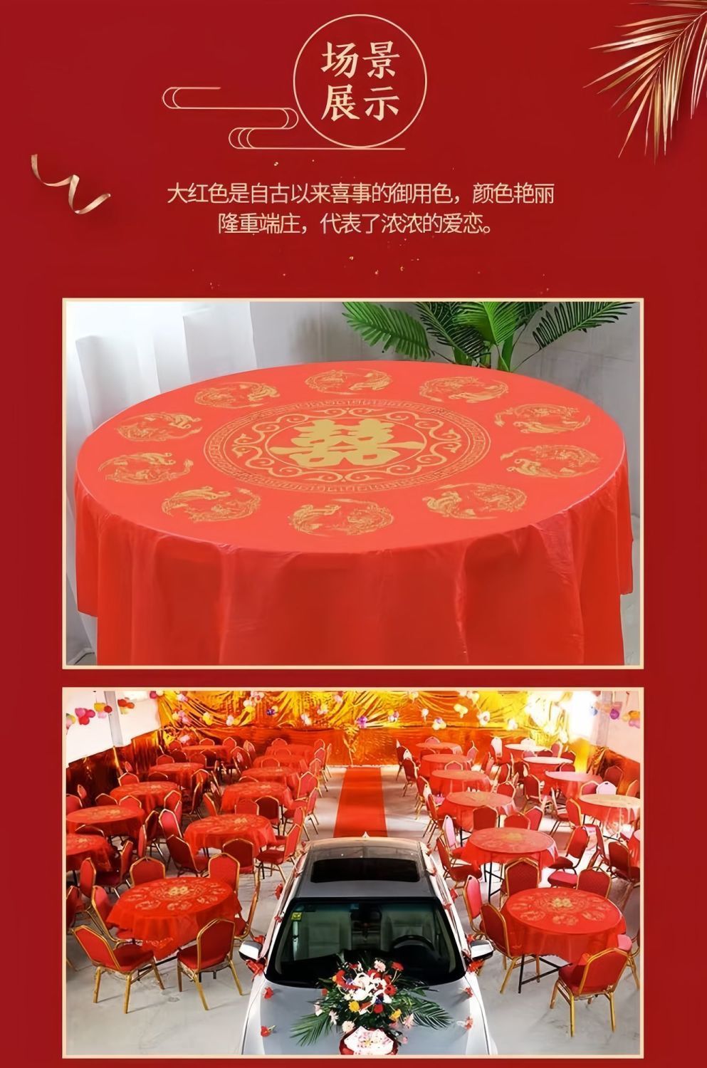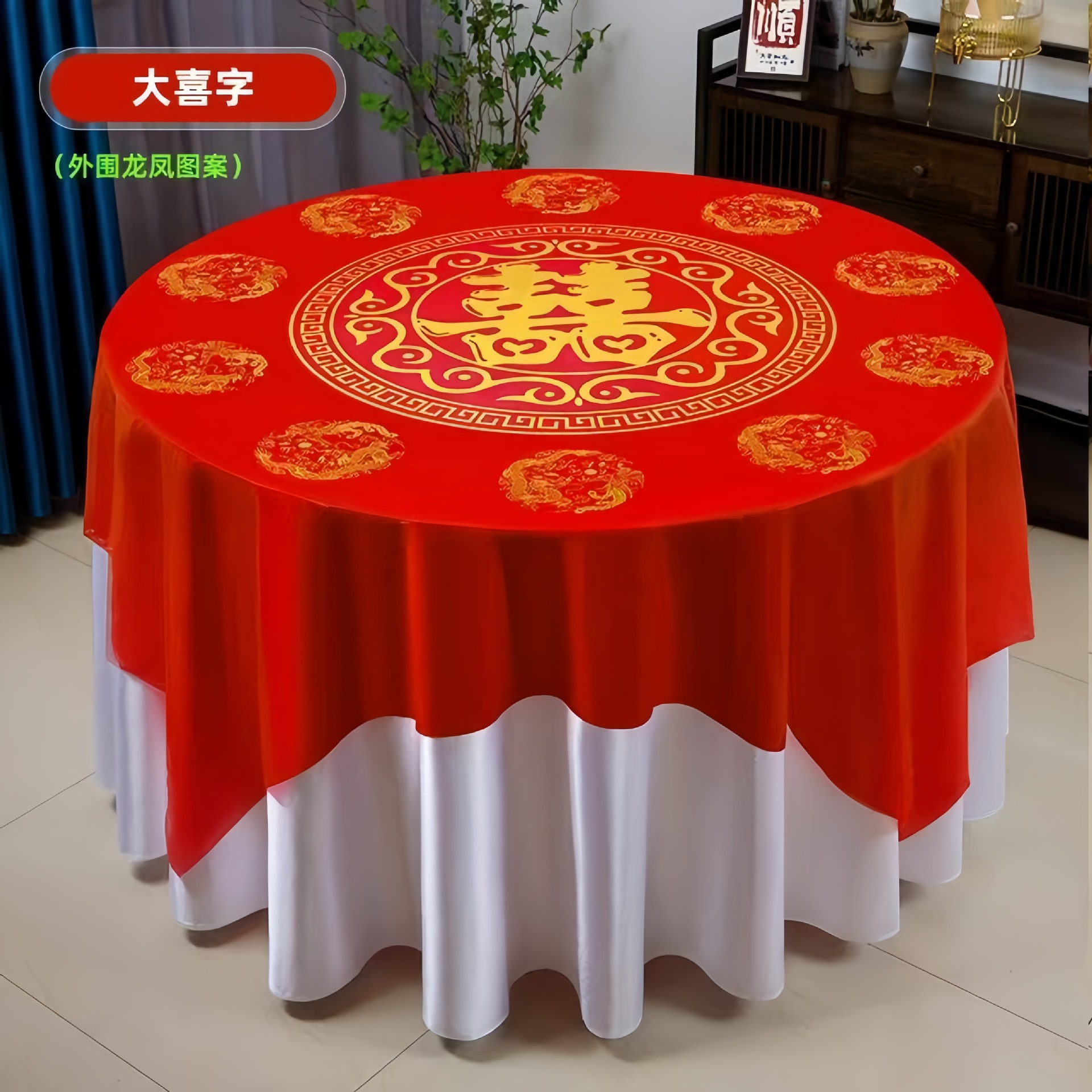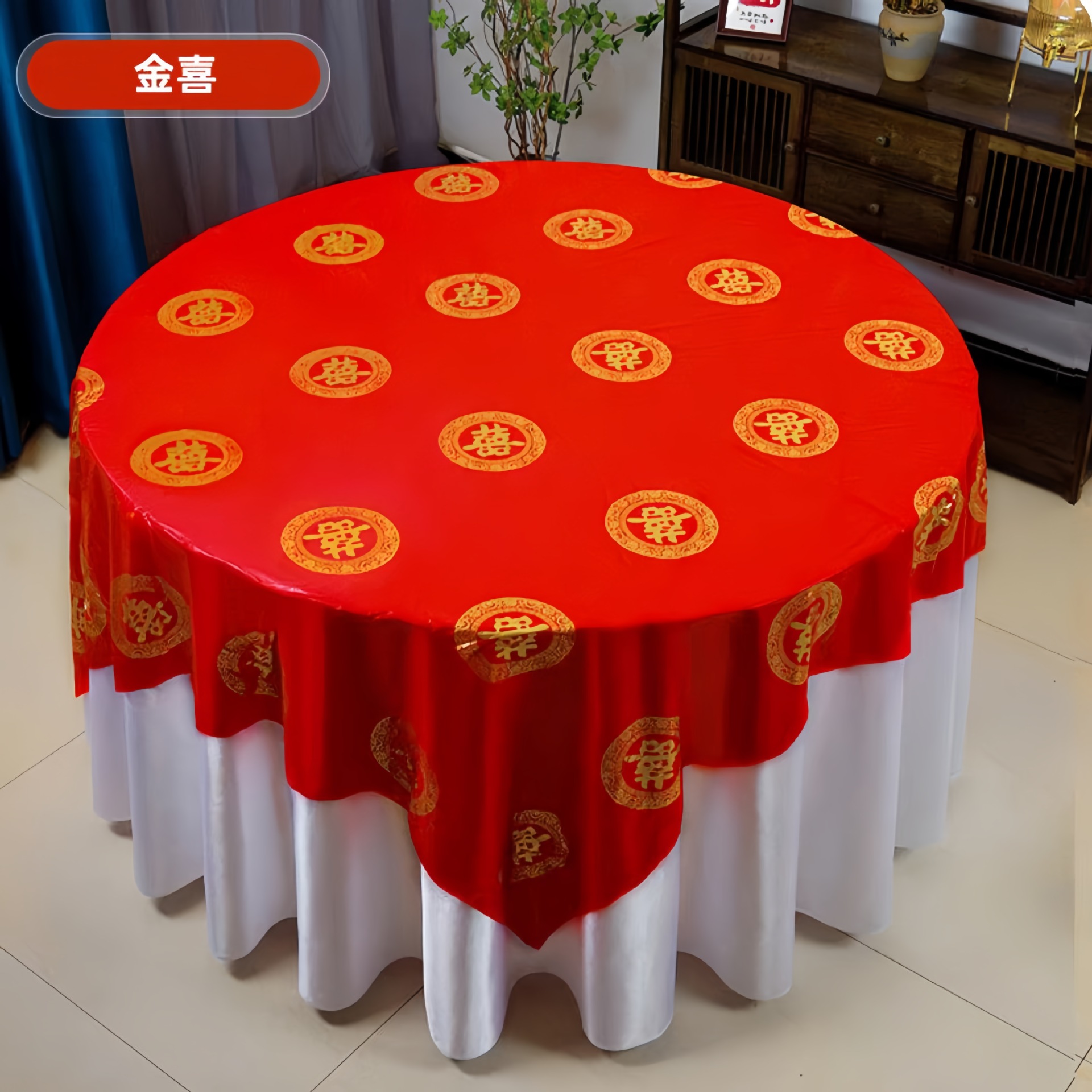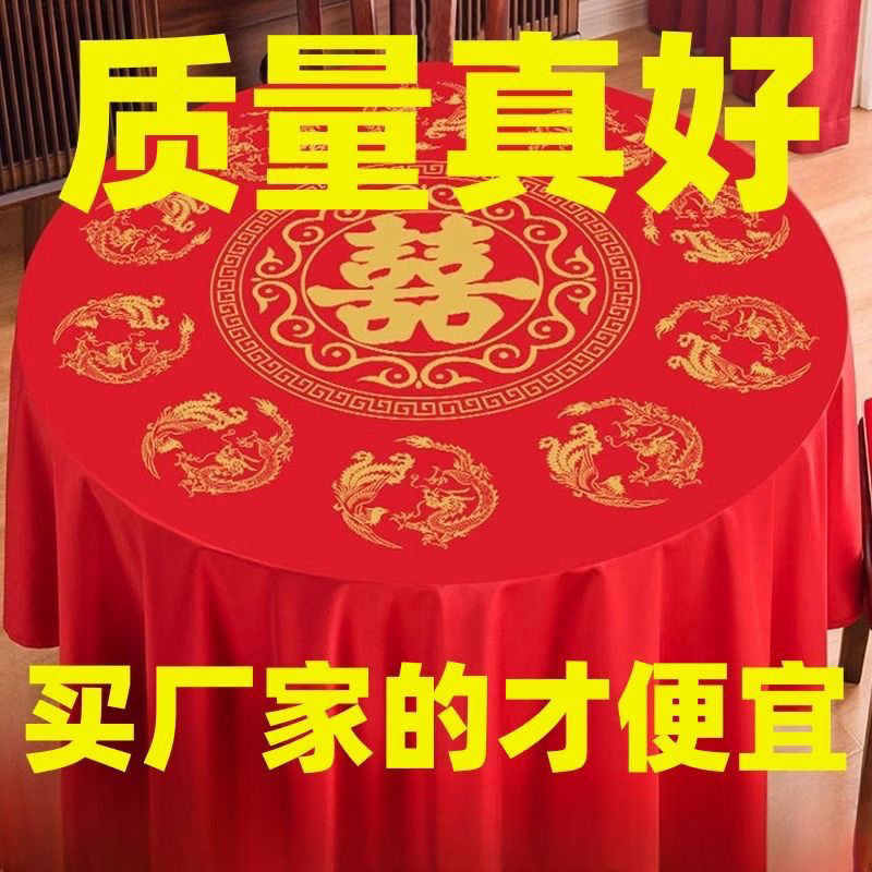 结婚塑料加厚一次性桌布婚宴圆桌家用喜字红色防水四方台布餐具