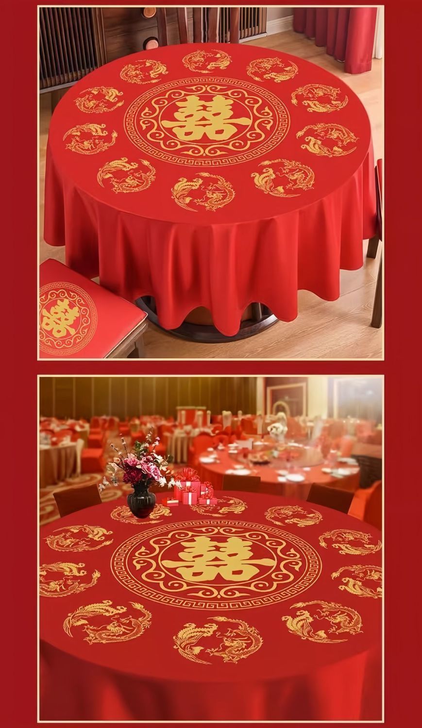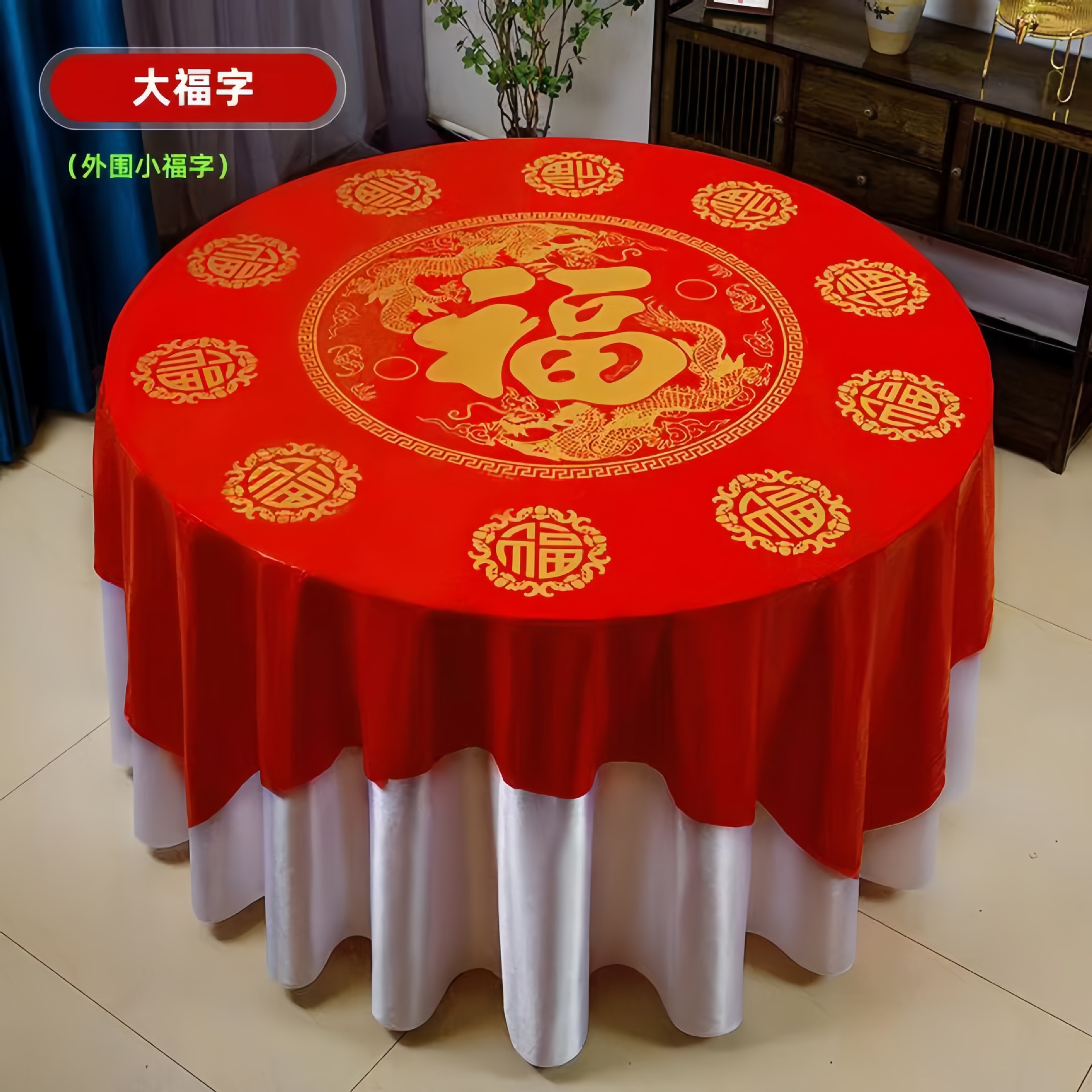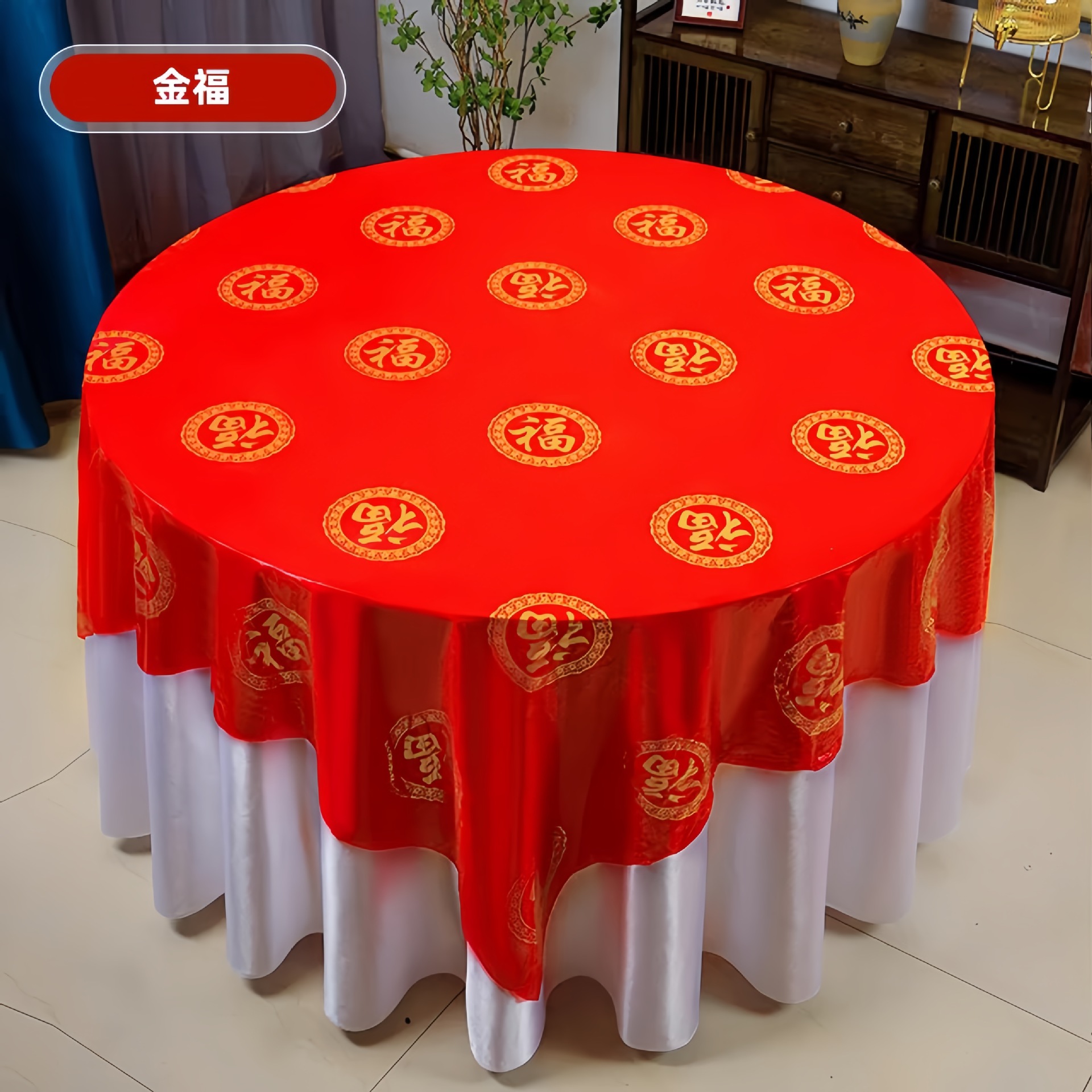结婚塑料加厚一次性桌布婚宴圆桌家用喜字红色防水四方台布餐具
