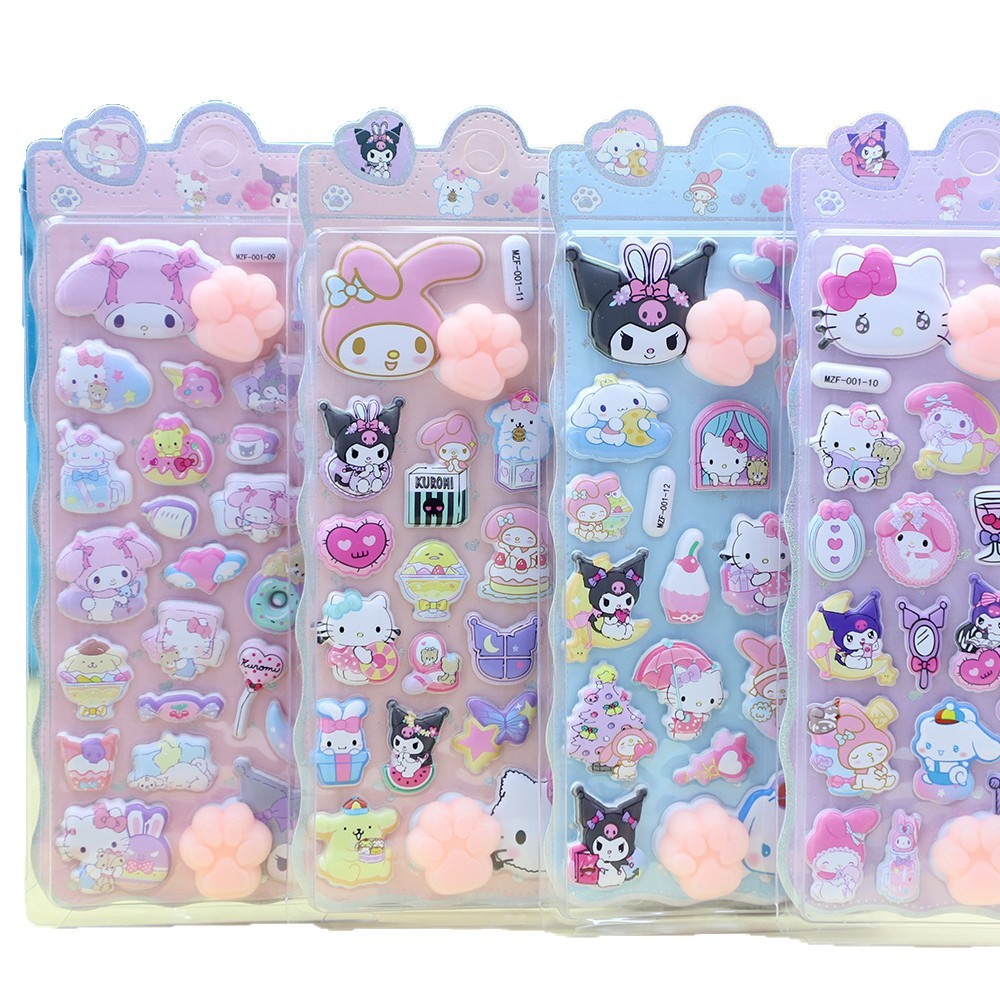 跨境立体卡通泡泡贴纸三丽鸥贴史努比解压5D捏捏乐手机装饰猫爪贴