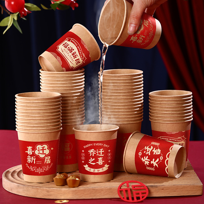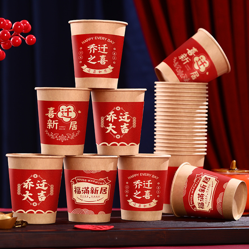 乔迁之喜2026通用纸杯一次性杯子搬家新款加厚牛皮纸新家家用水杯