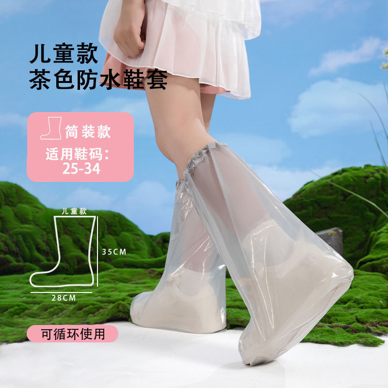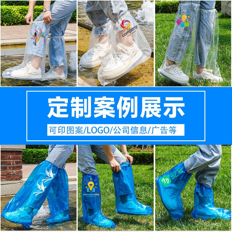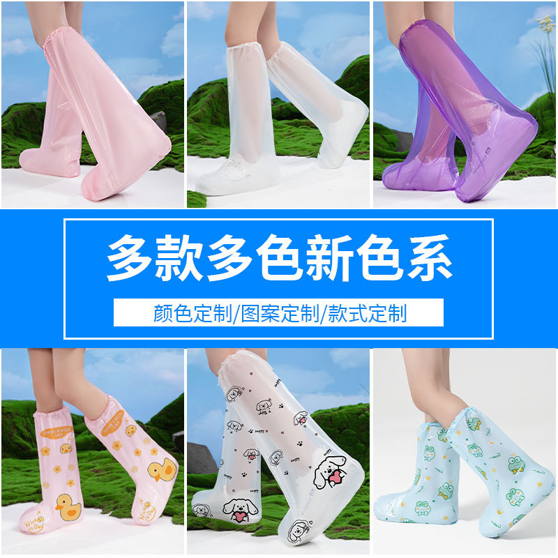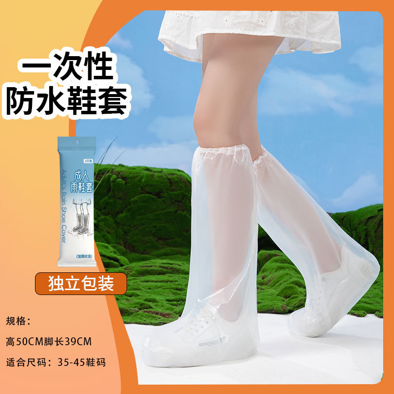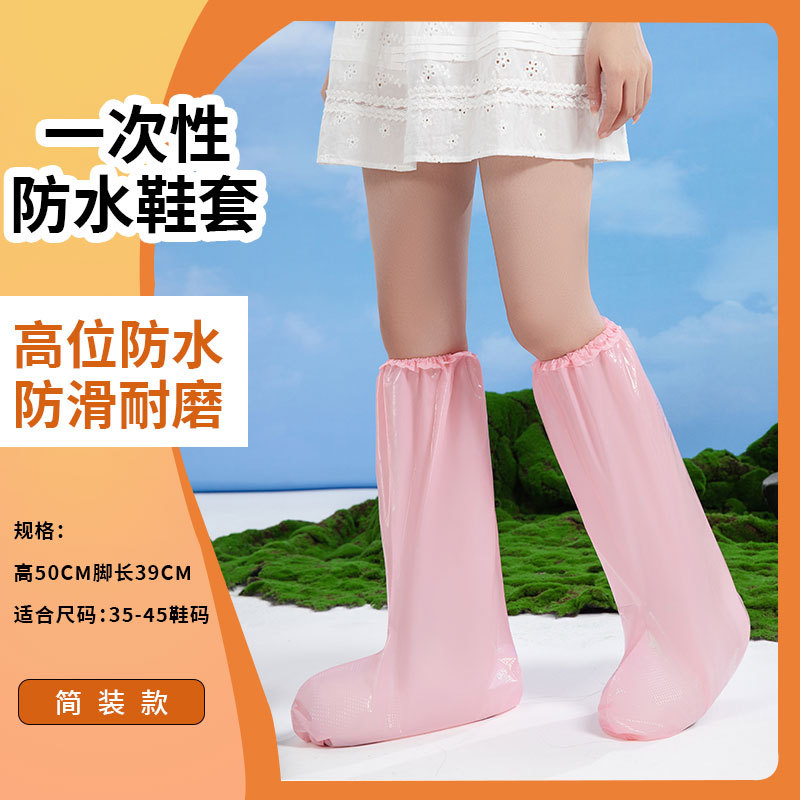 新款灰色雨鞋套塑料一次性防水耐用鞋套pe加厚雨天加长防滑脚套