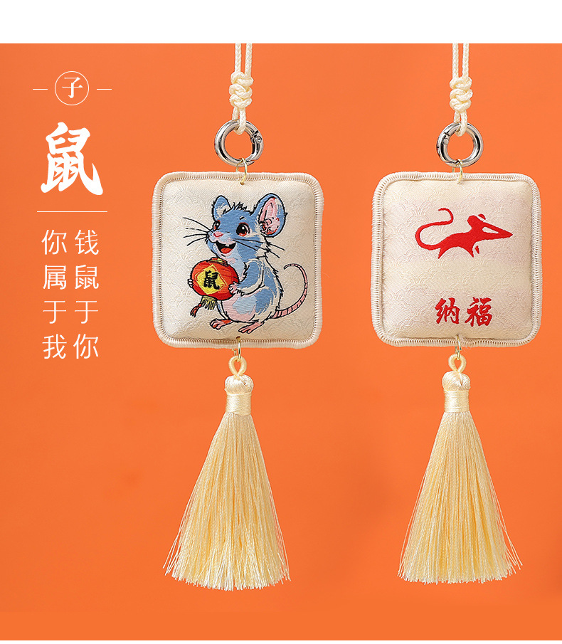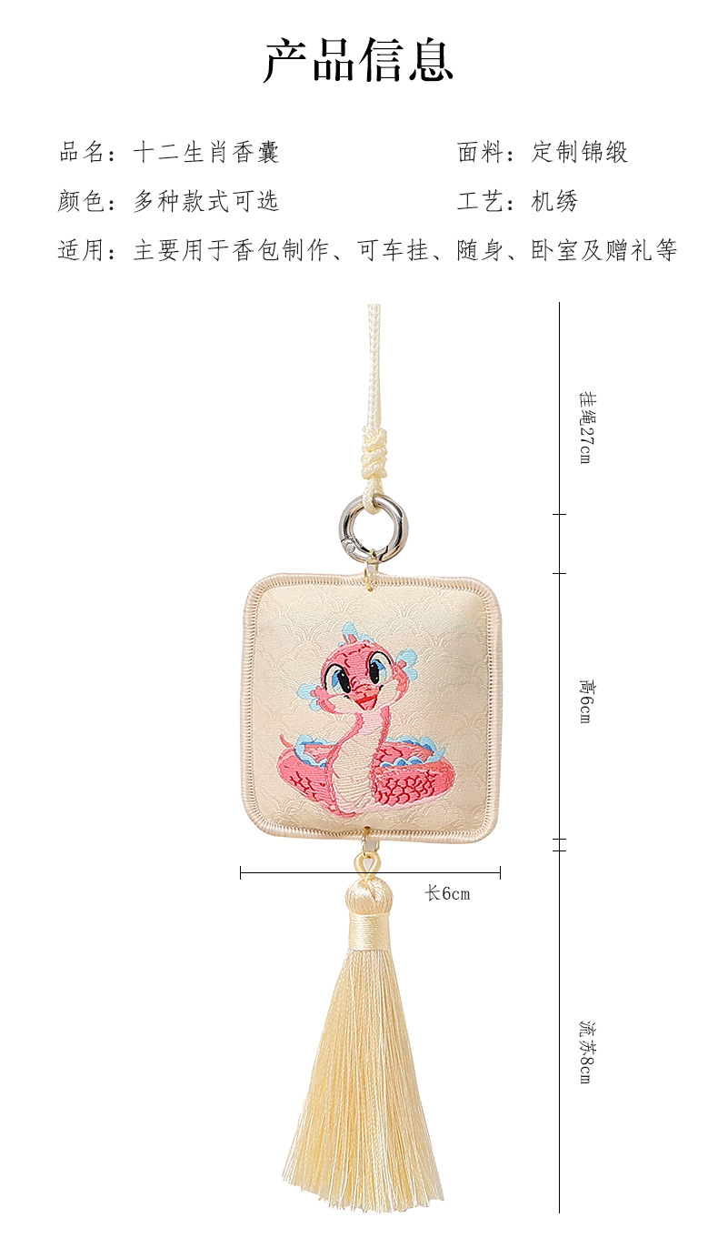 新款十二生肖香包挂件刺绣卡通生肖香囊车载挂件景区纪念品福袋