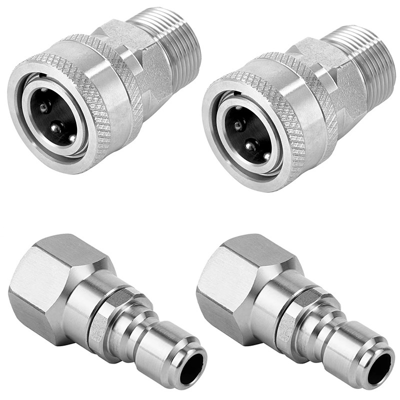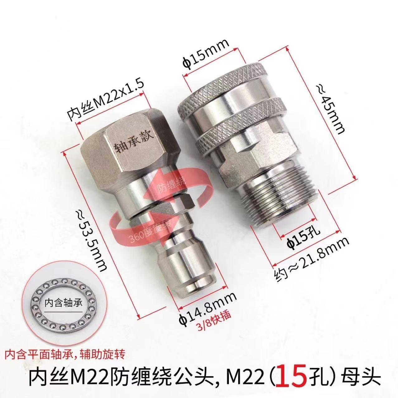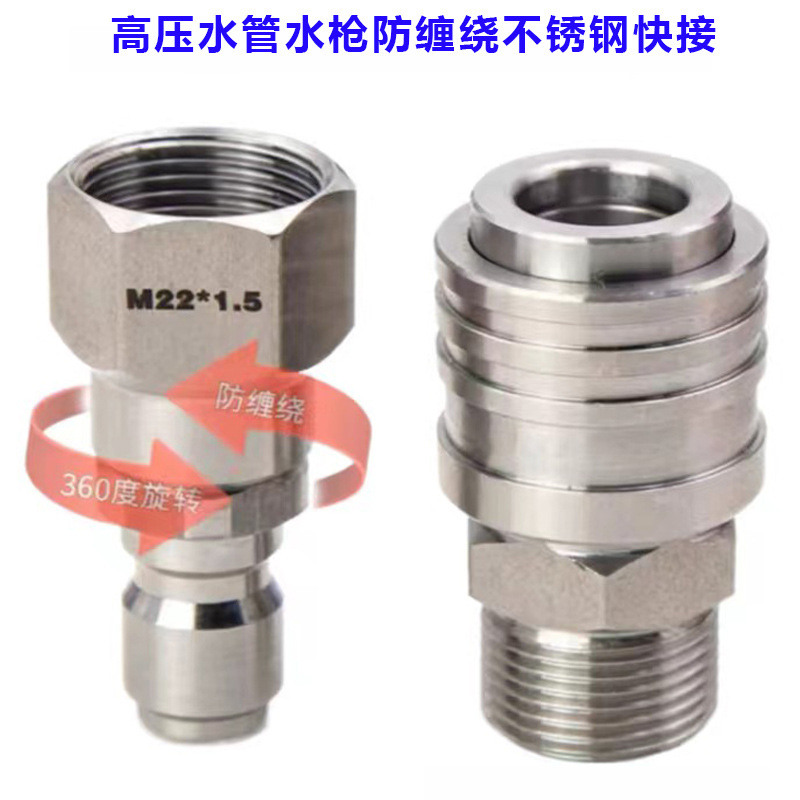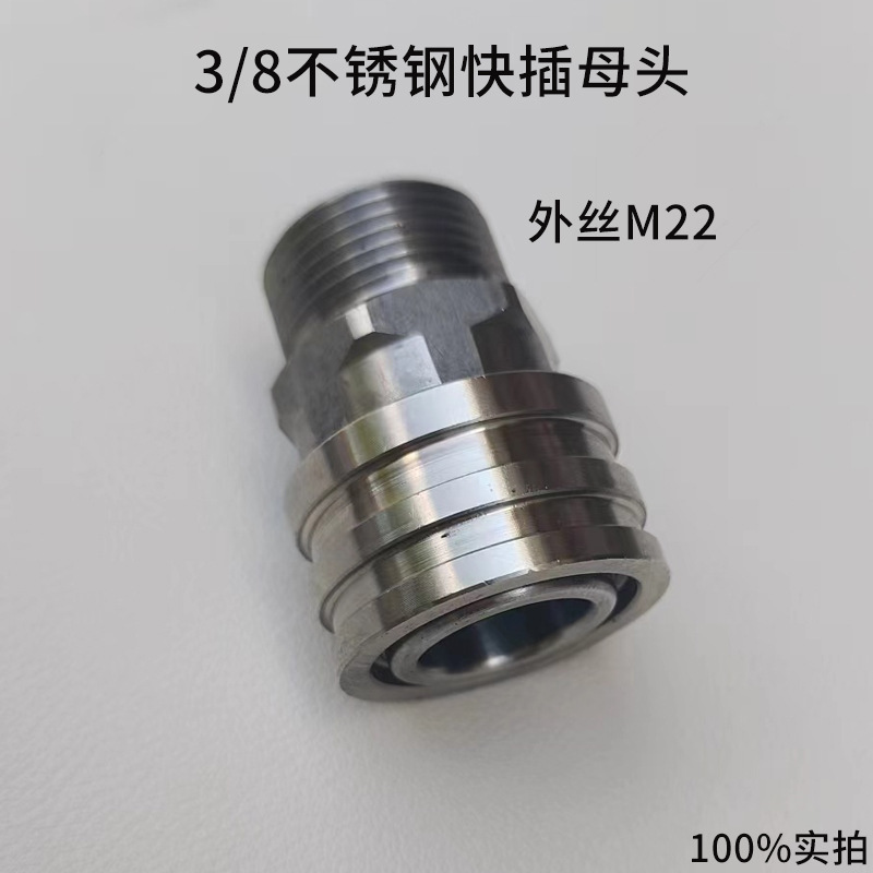 优惠高压洗车机水枪M22孔14/15mm3/8快接不锈钢360旋转水管接头