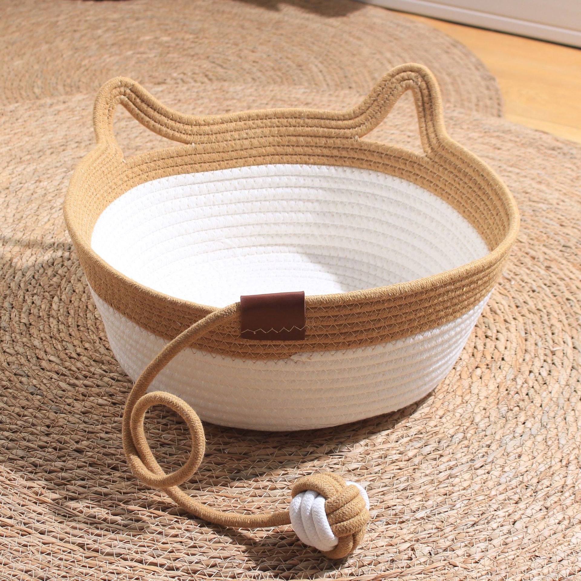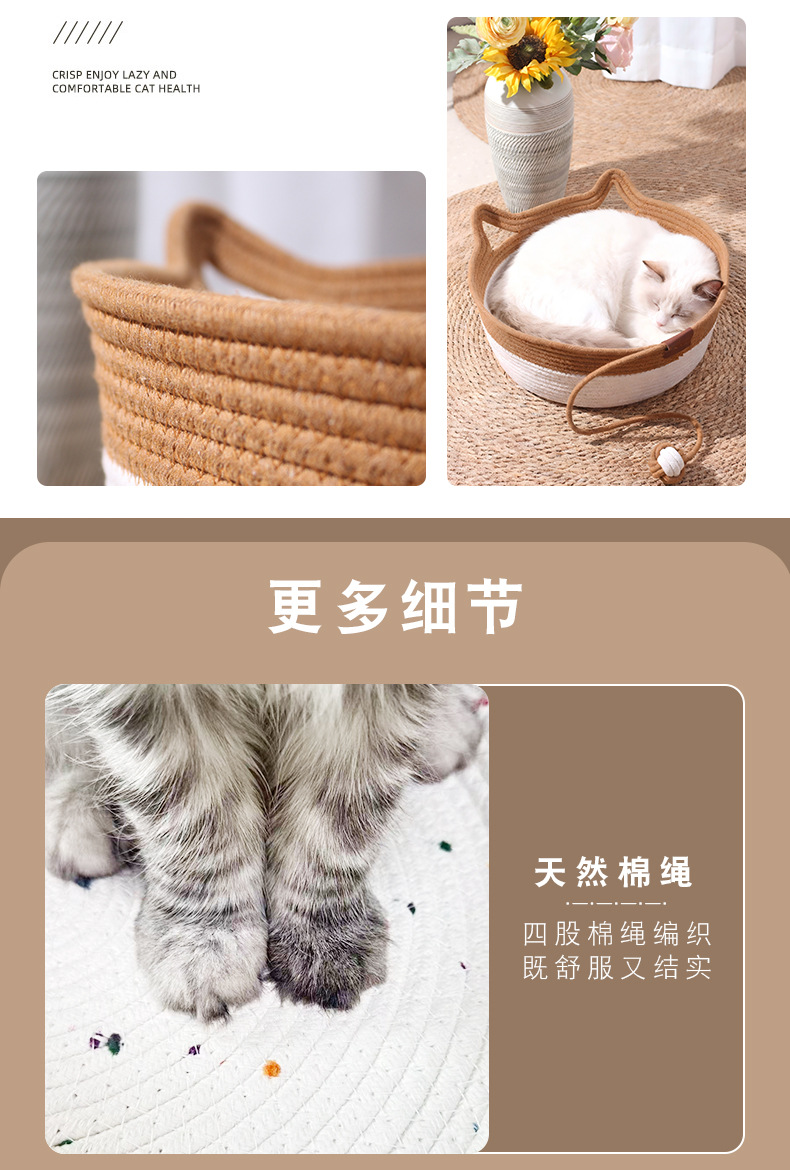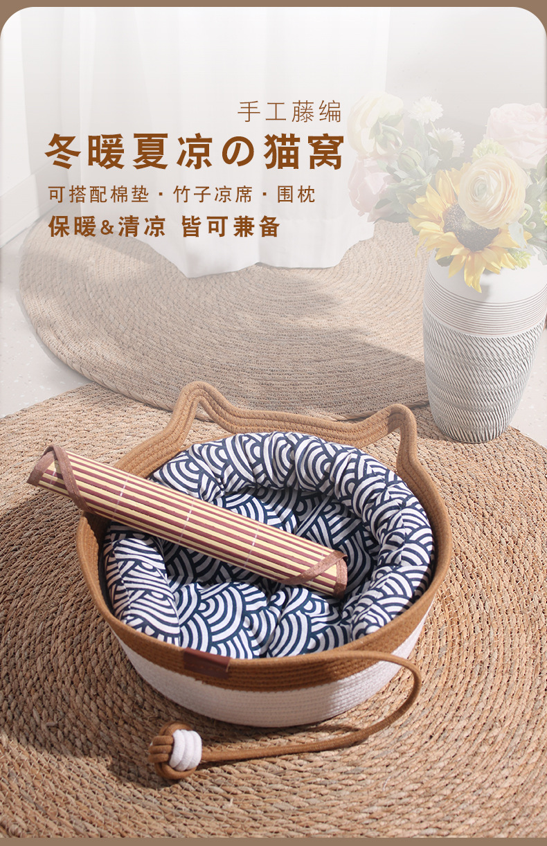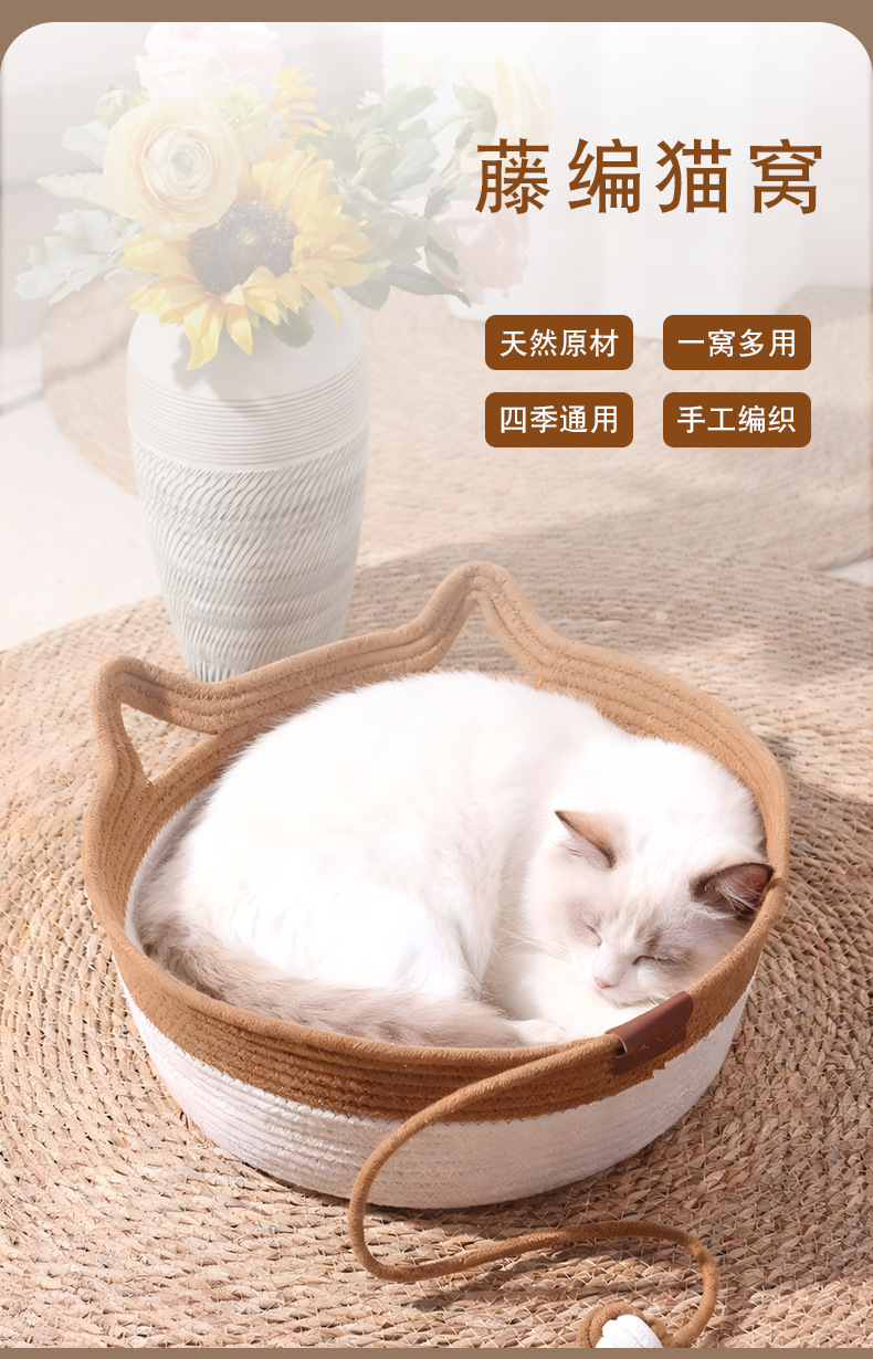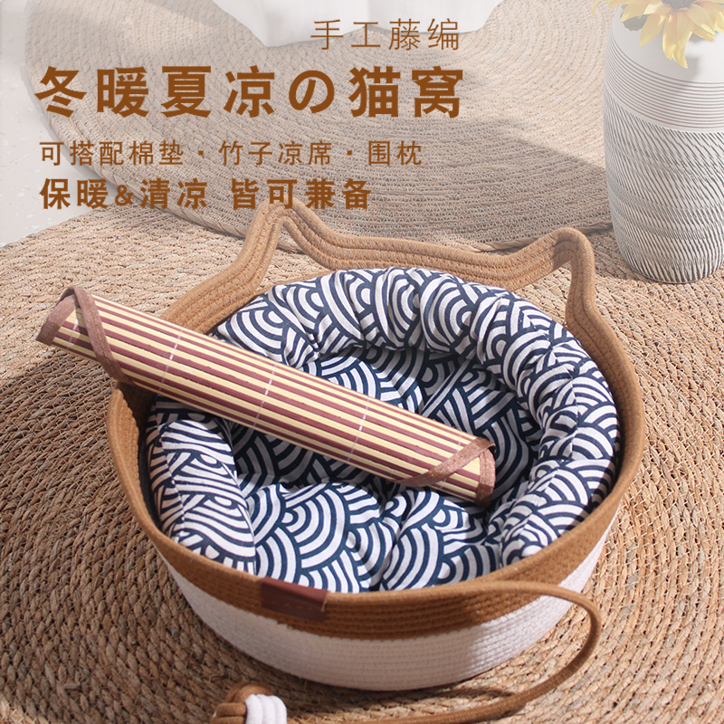 跨境藤编猫窝四季通用猫咪窝垫子狗窝夏季宠物用品猫抓板猫窝一体