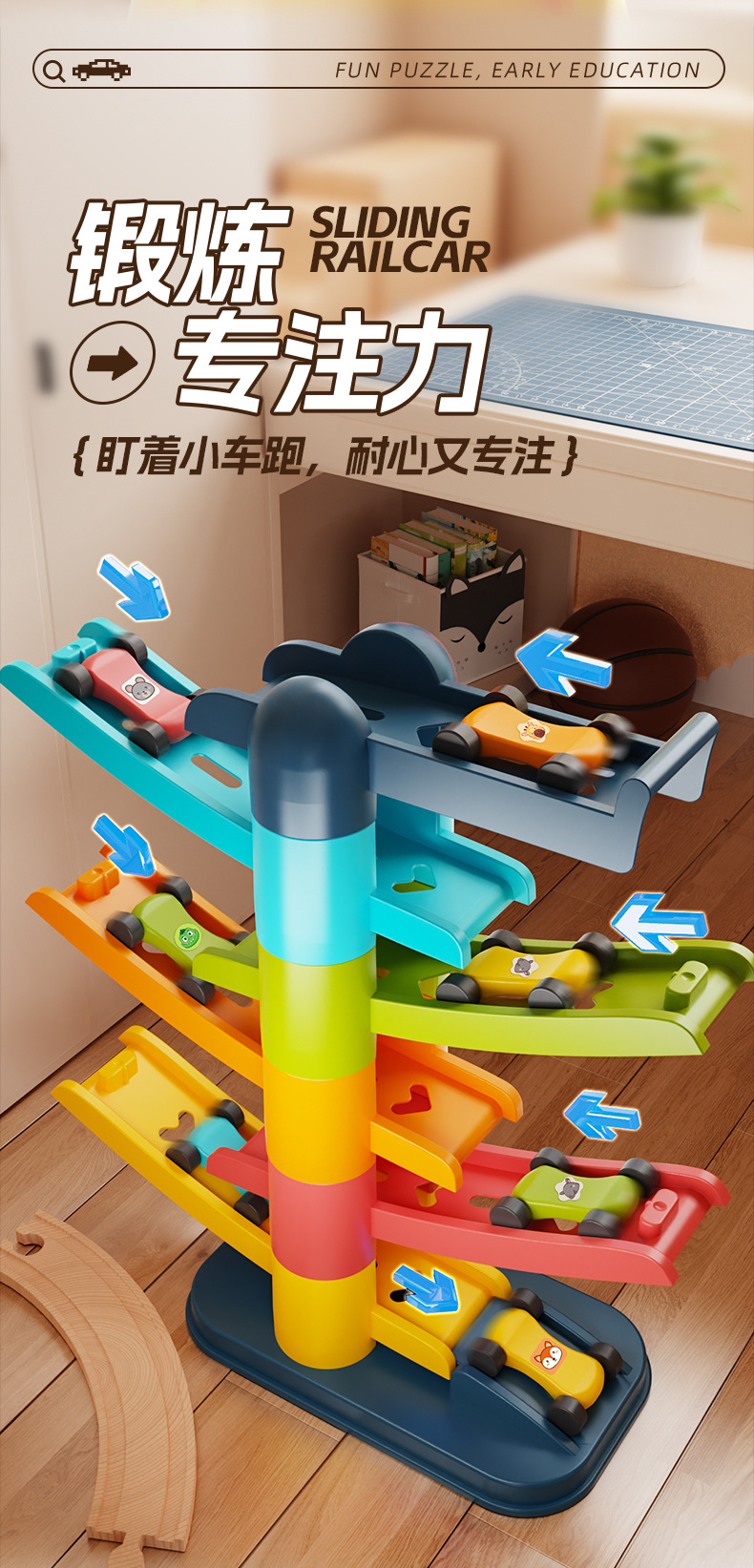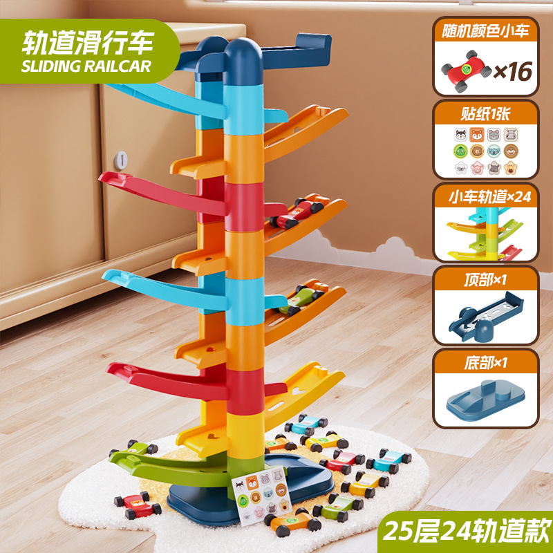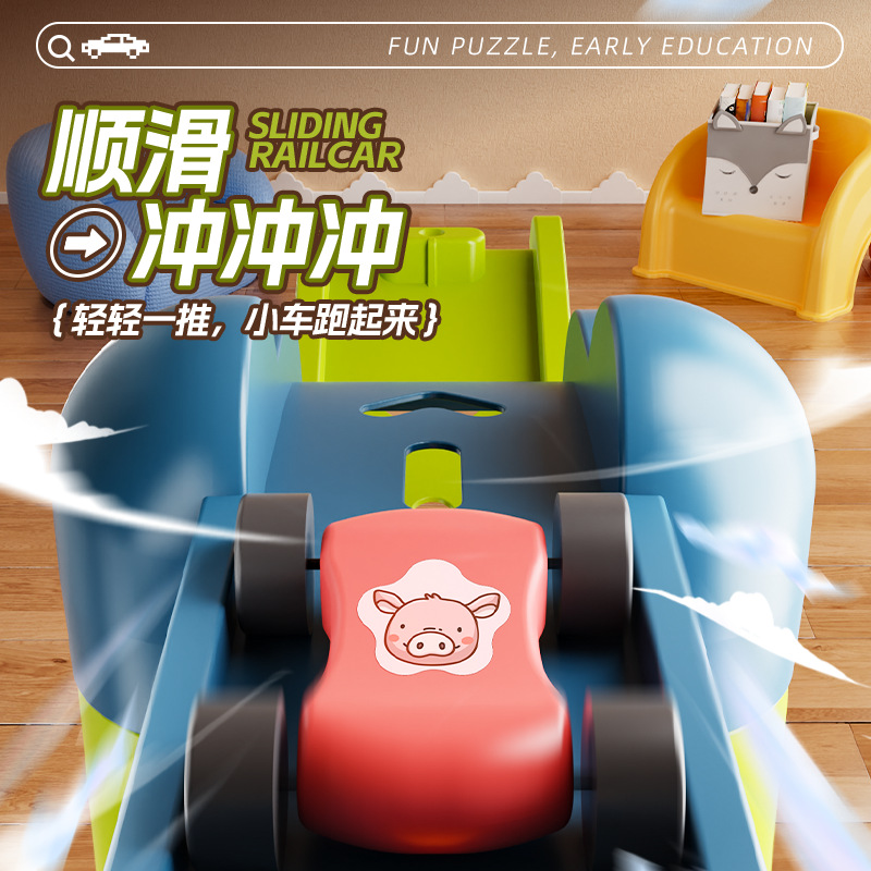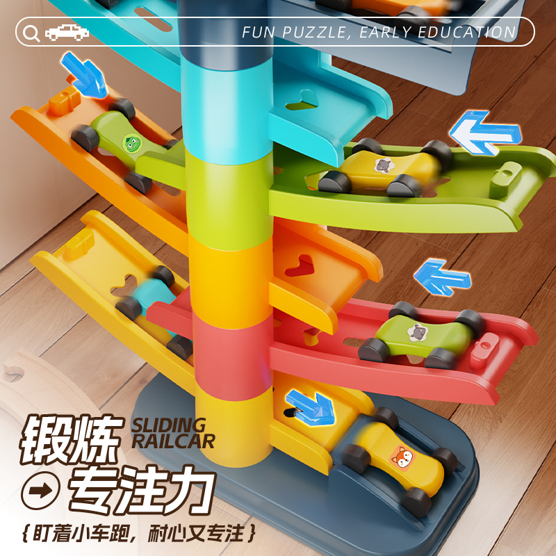 跨境儿童滑翔滑行轨道车小汽车益智玩具男孩女孩停车场套装玩具